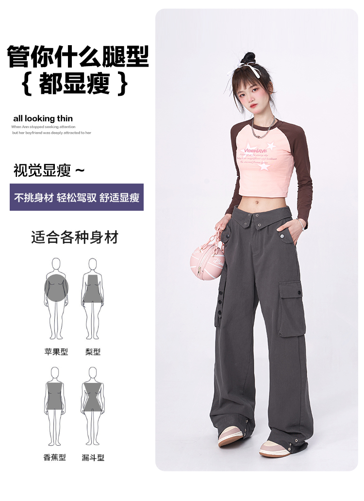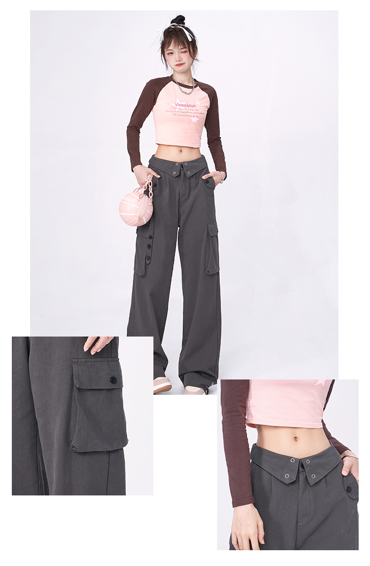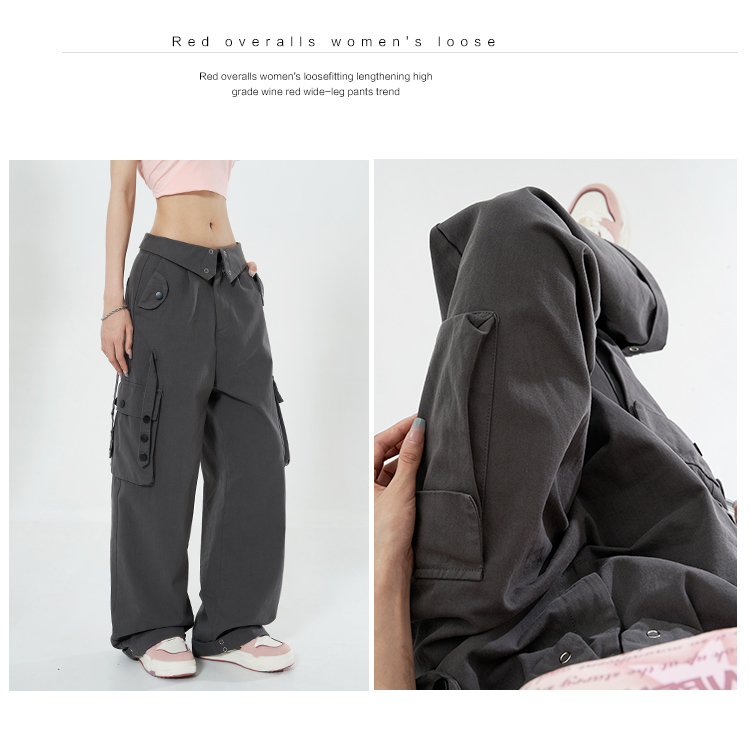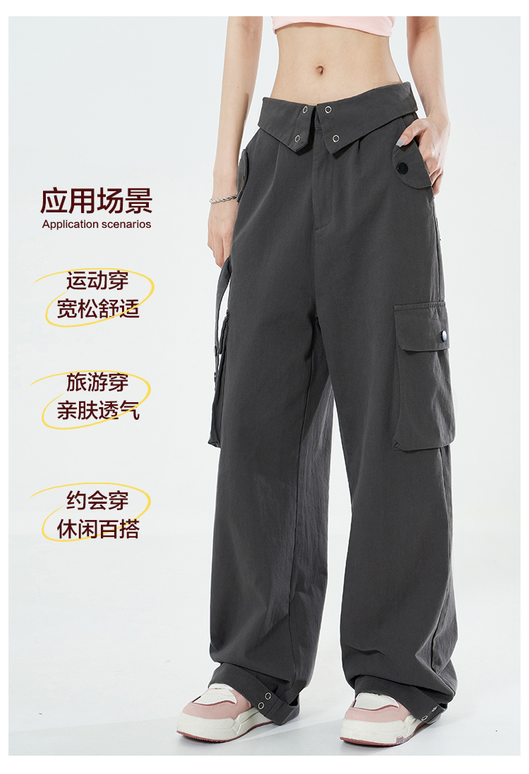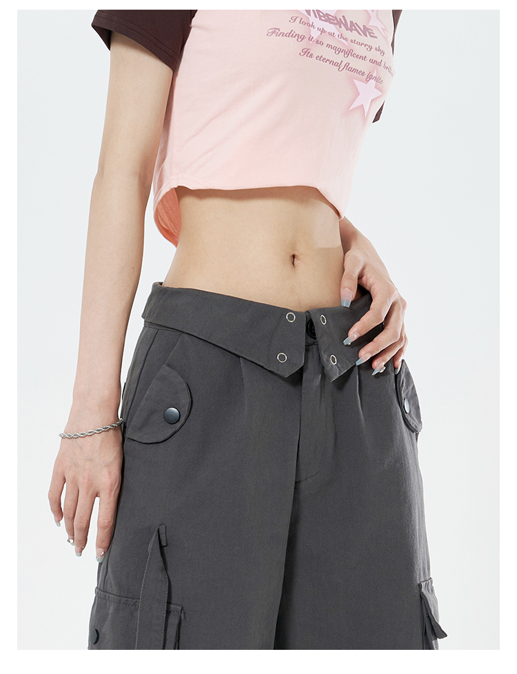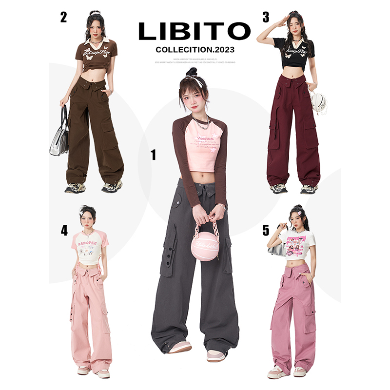 Libito秋季美式高腰工裝褲女辣妹休閒寬褲2023新款灰色褲子夏天