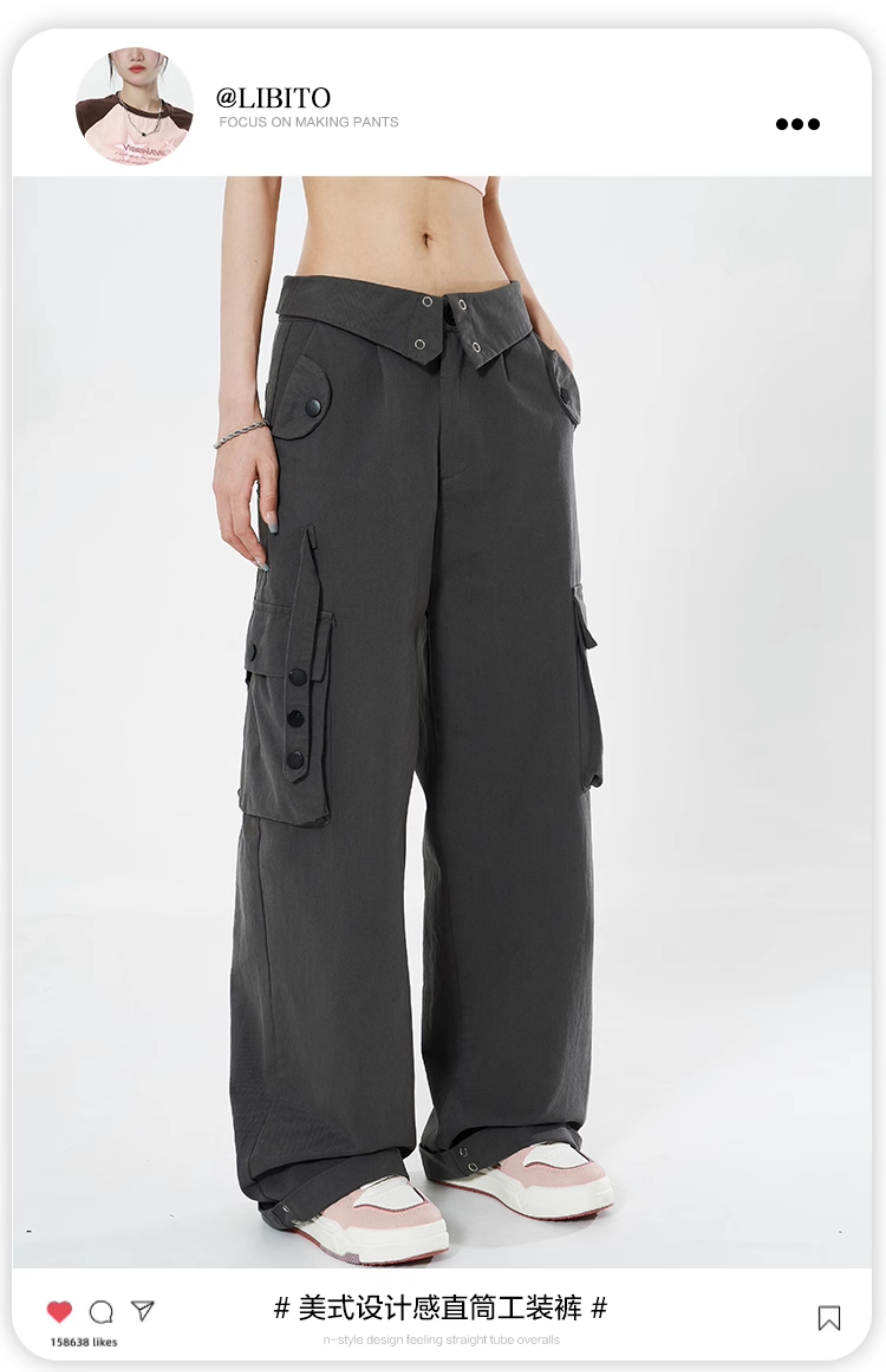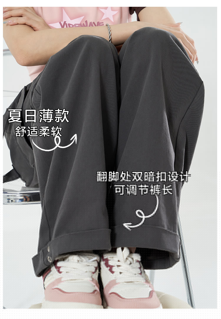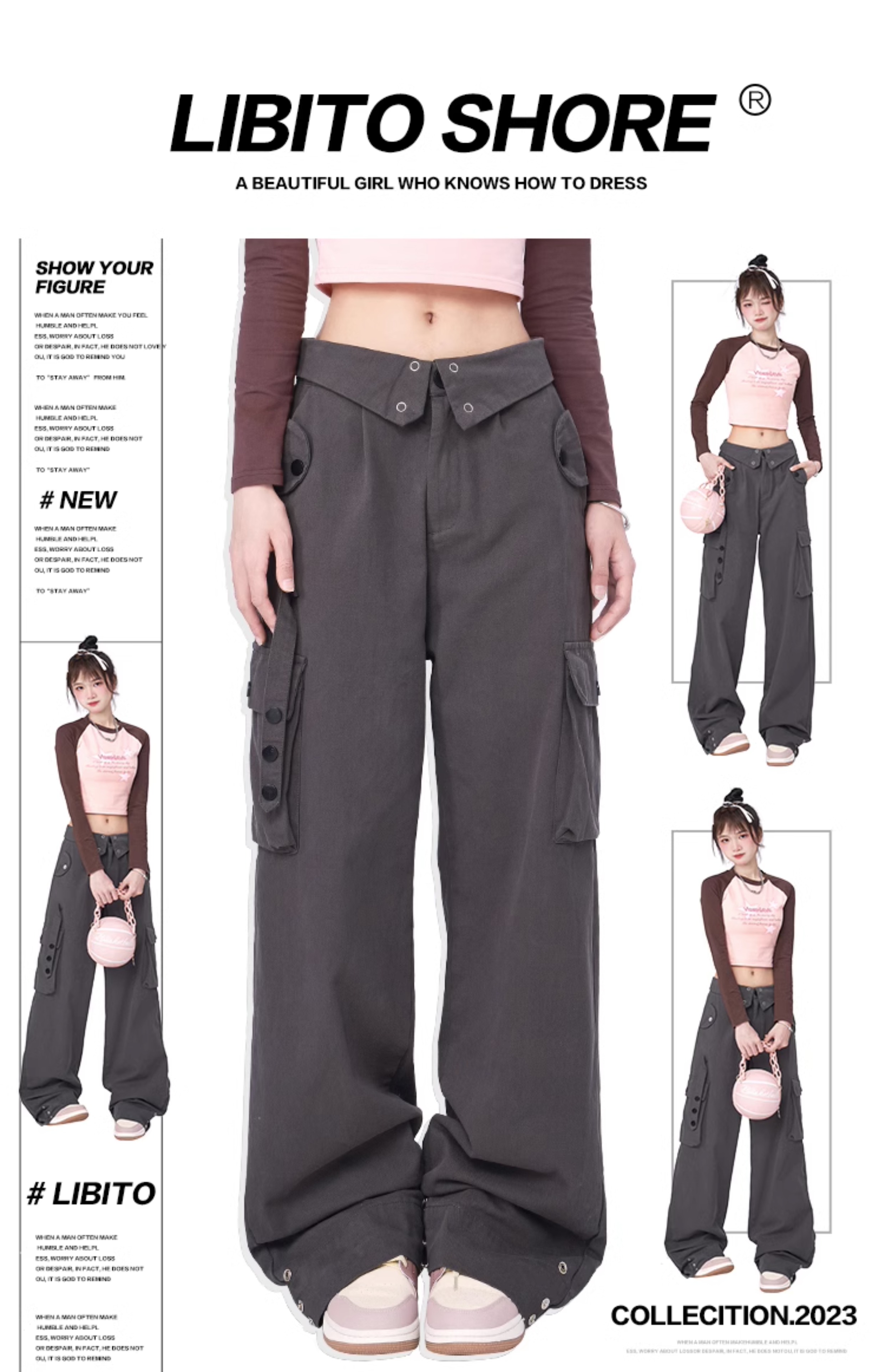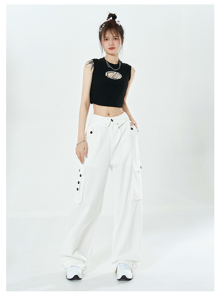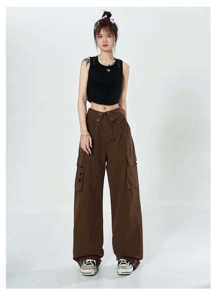 Libito秋季美式高腰工裝褲女辣妹休閒寬褲2023新款灰色褲子夏天