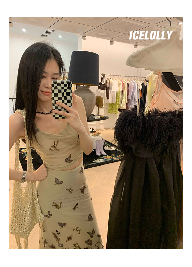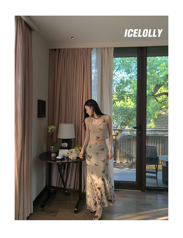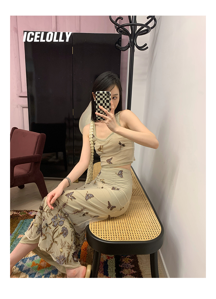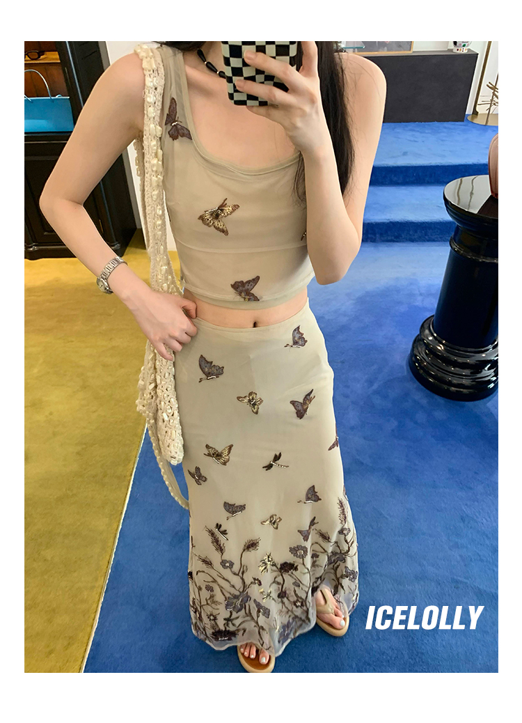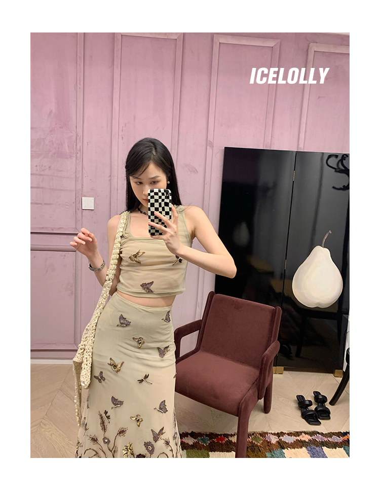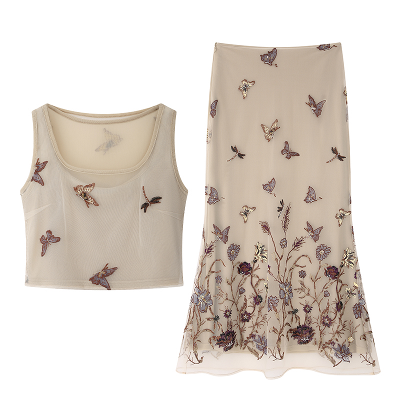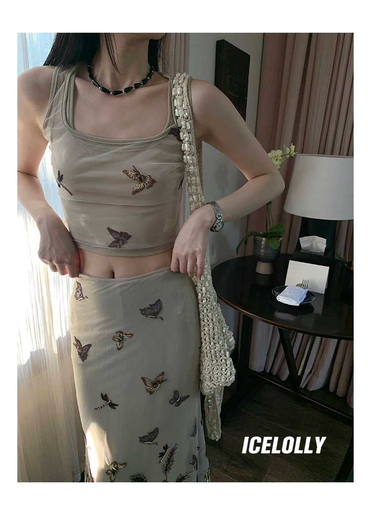 顏色分類 蝴蝶刺繡背心.,蝴蝶刺繡半裙.