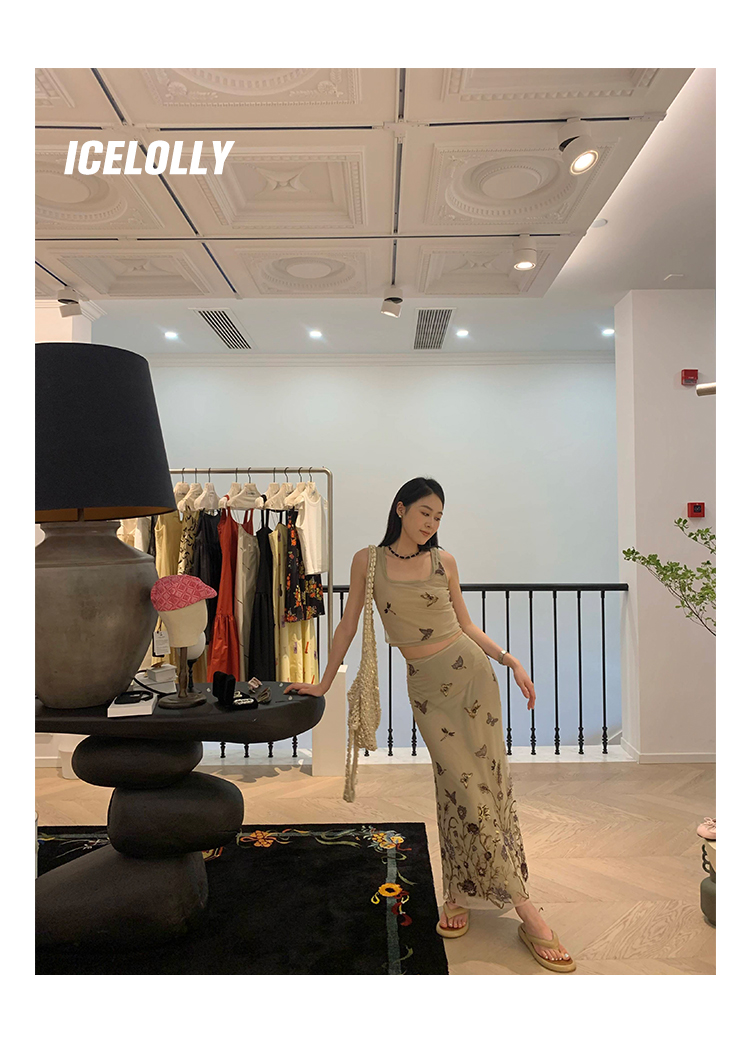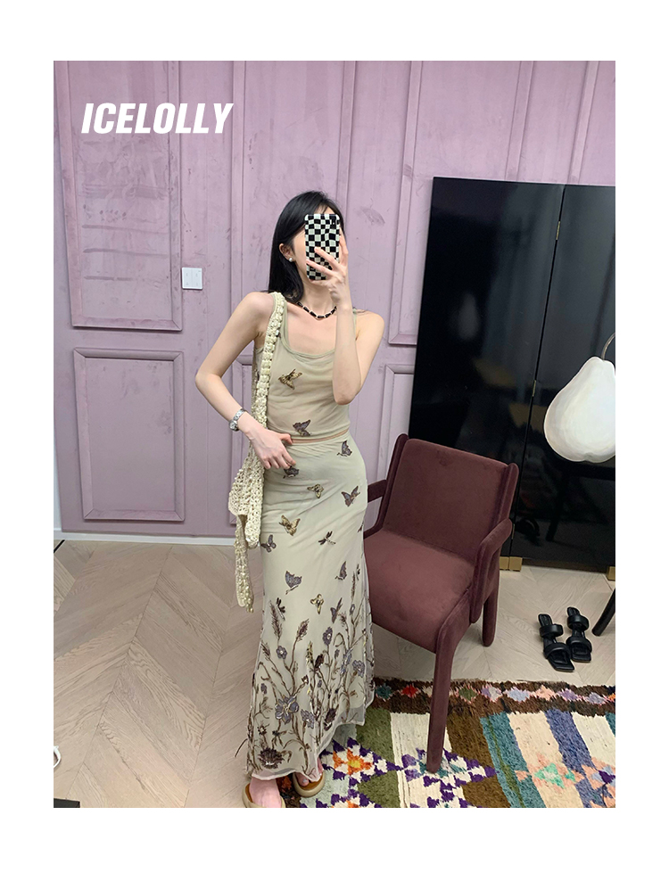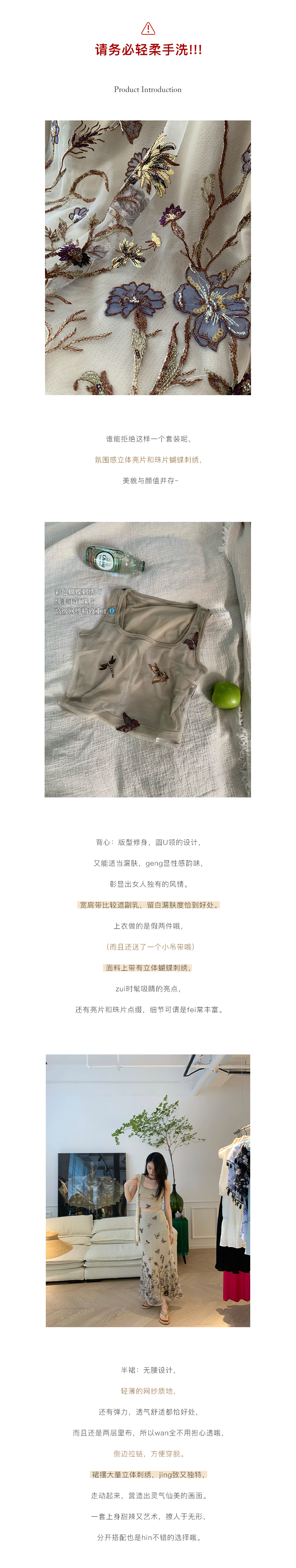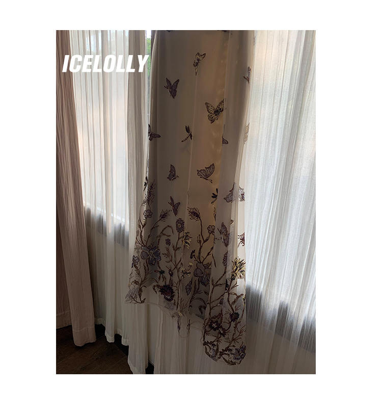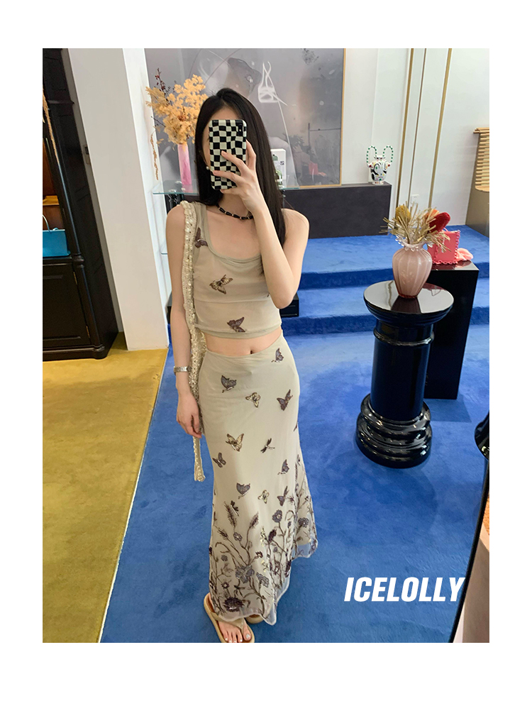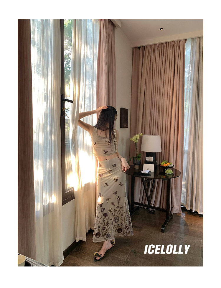 顏色分類 蝴蝶刺繡背心.,蝴蝶刺繡半裙.