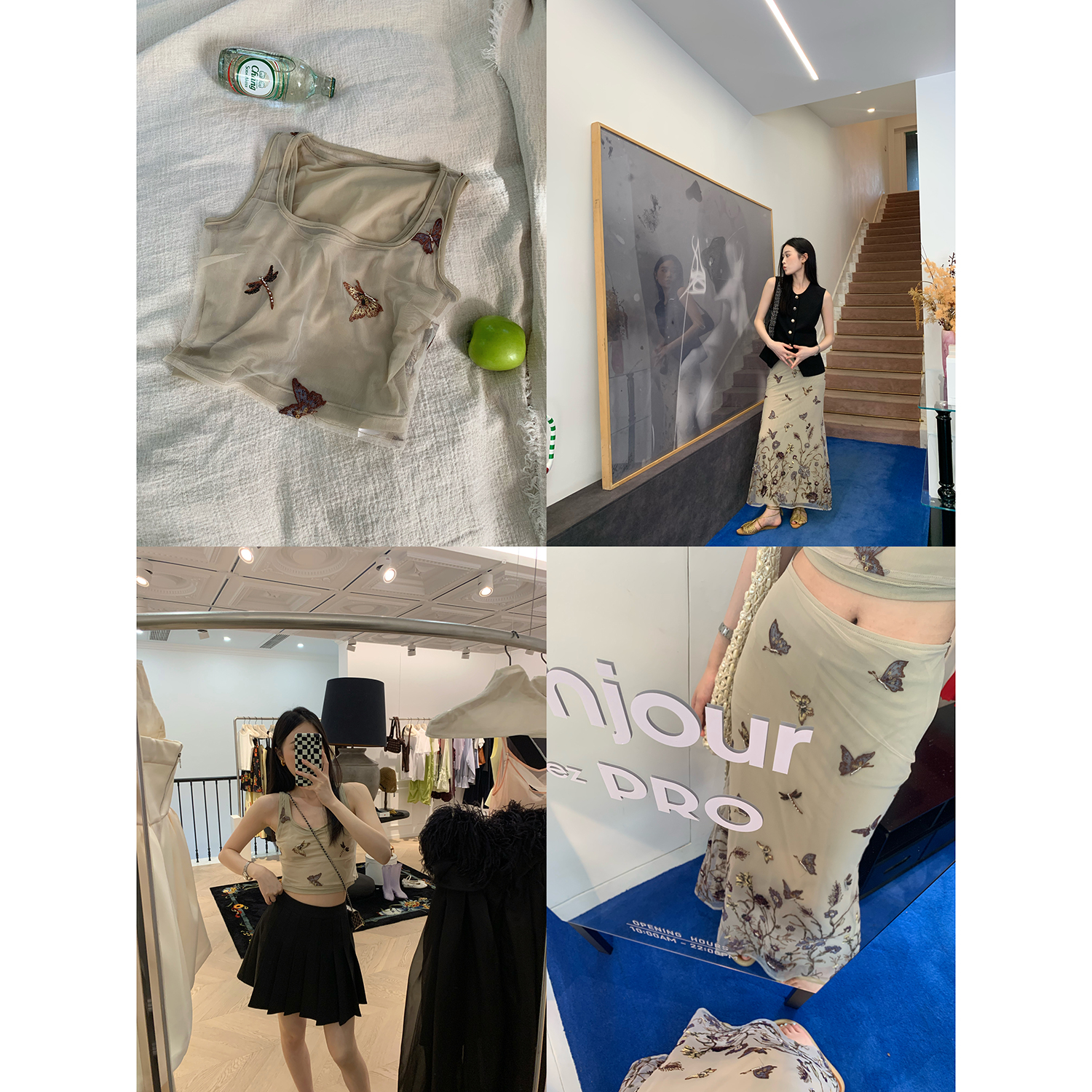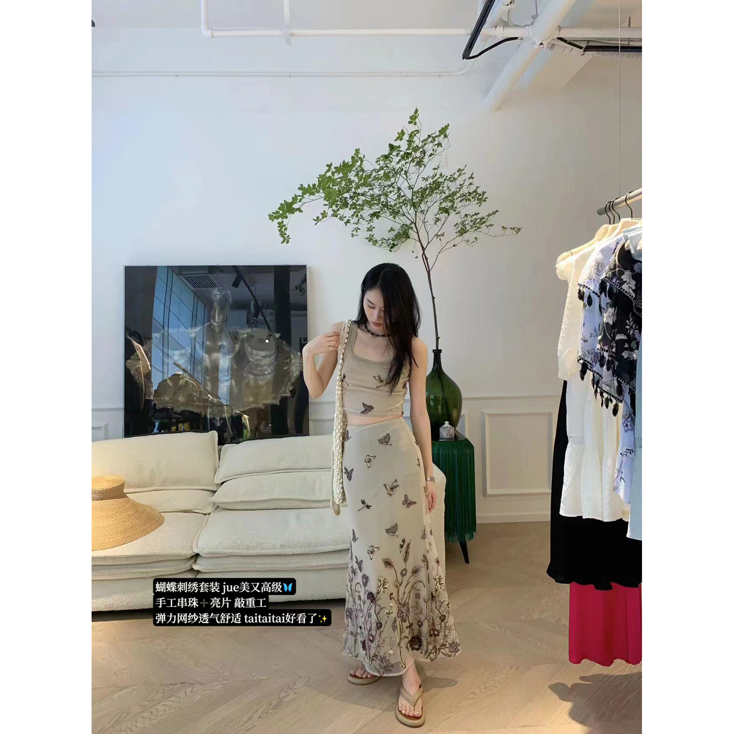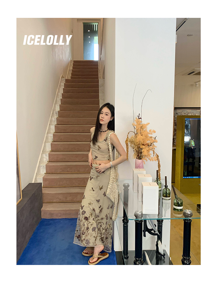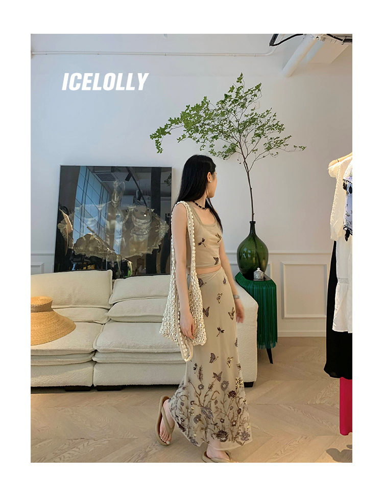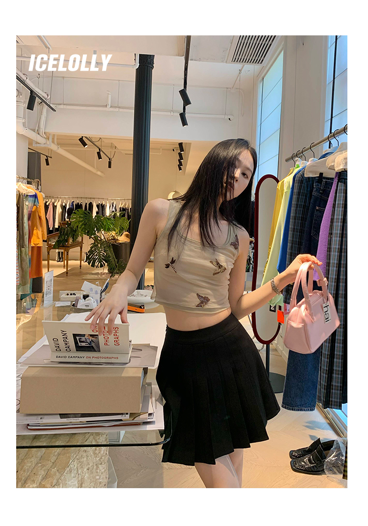 顏色分類 蝴蝶刺繡背心.,蝴蝶刺繡半裙.