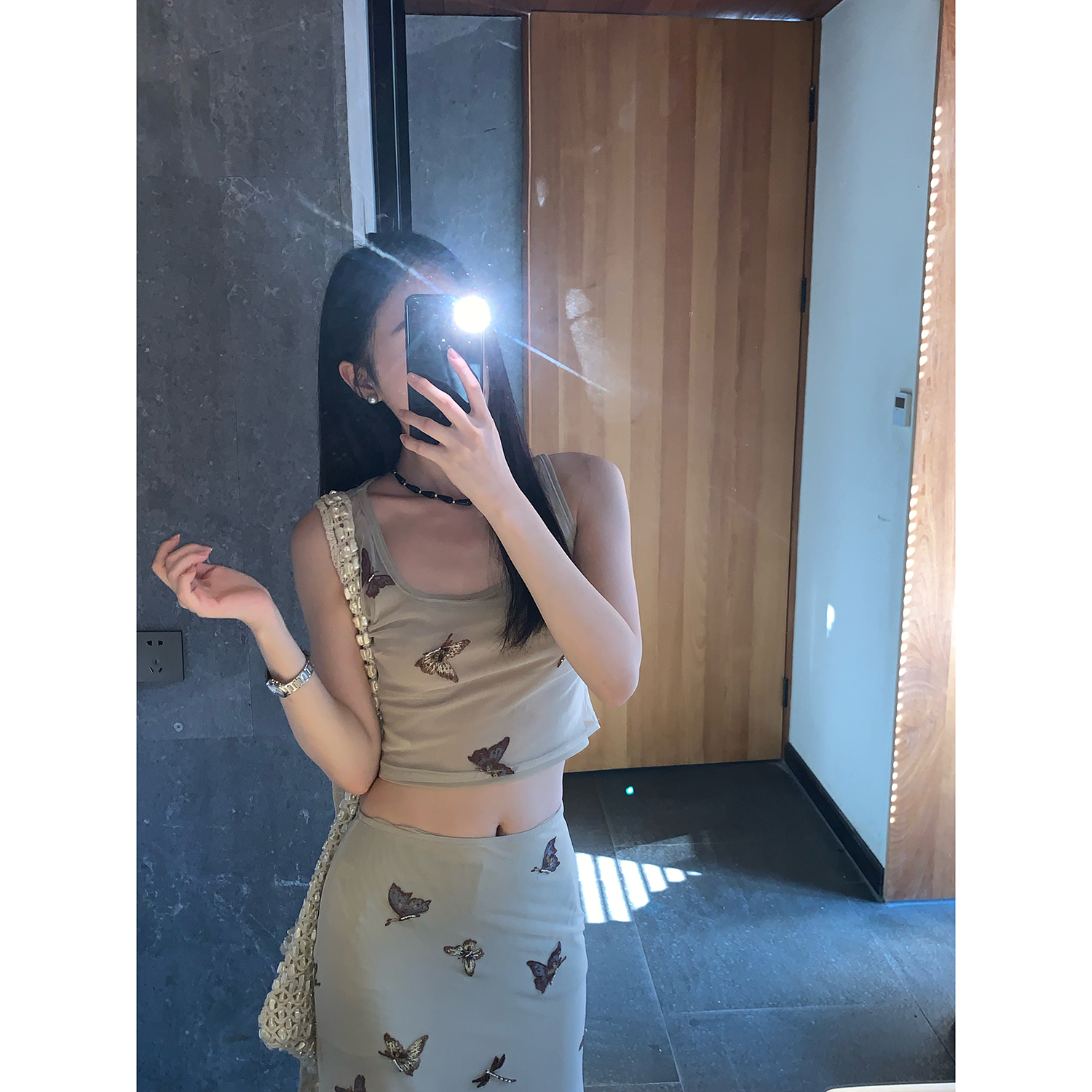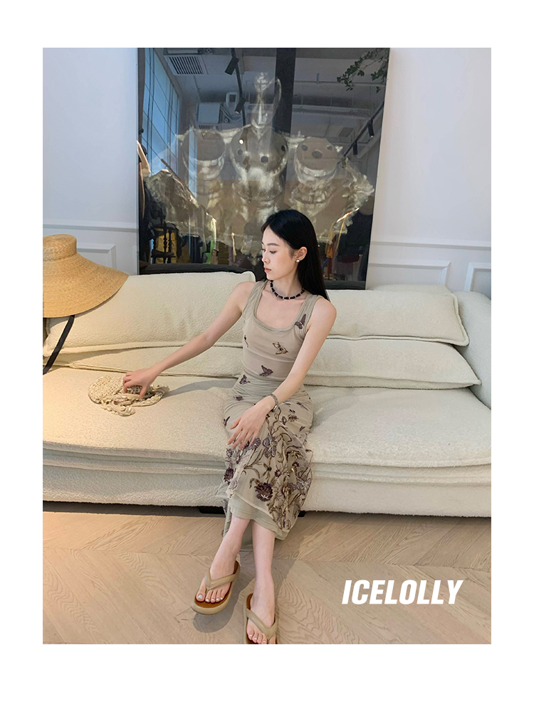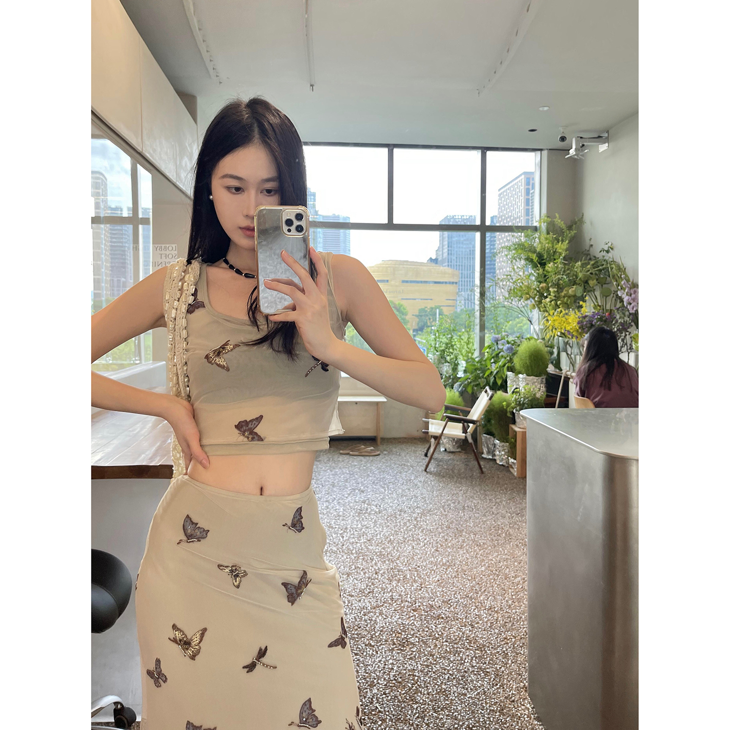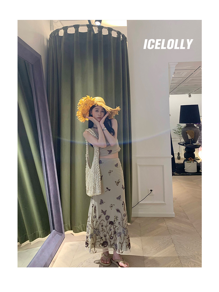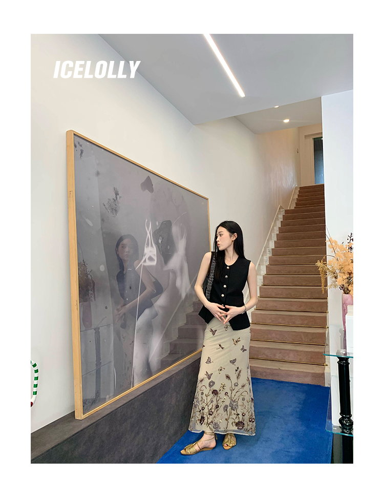 顏色分類 蝴蝶刺繡背心.,蝴蝶刺繡半裙.