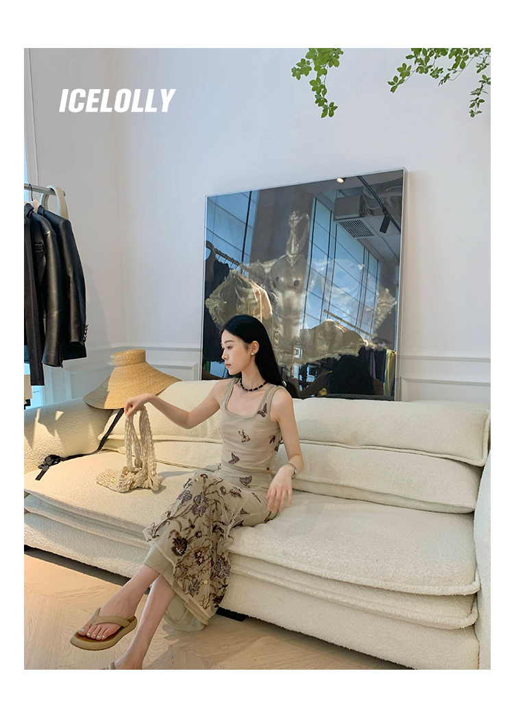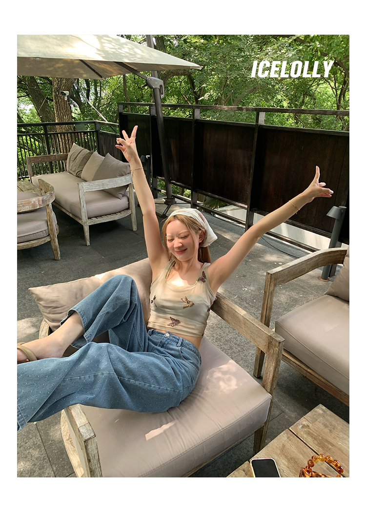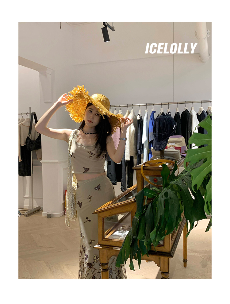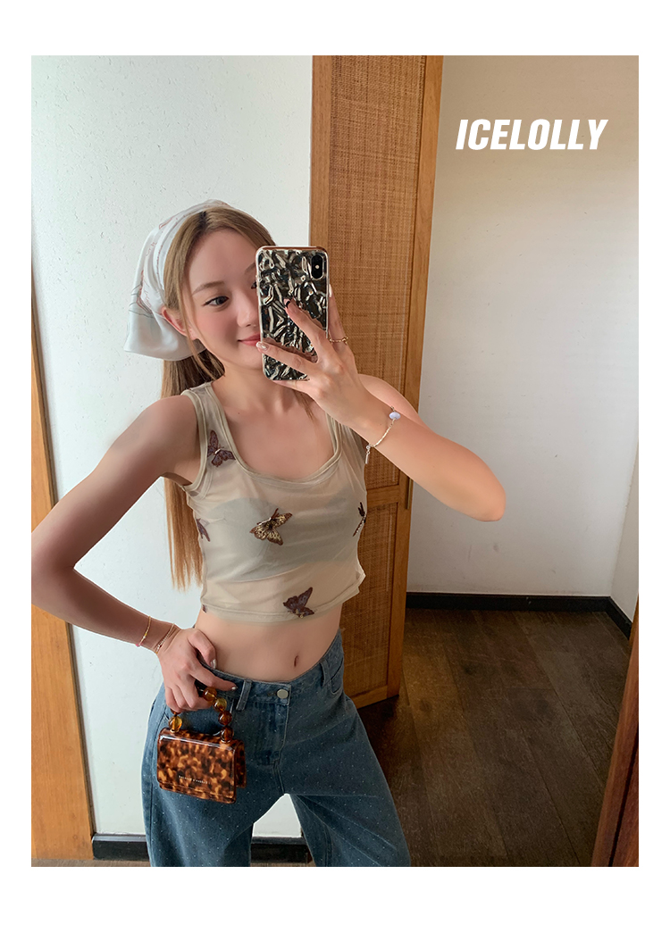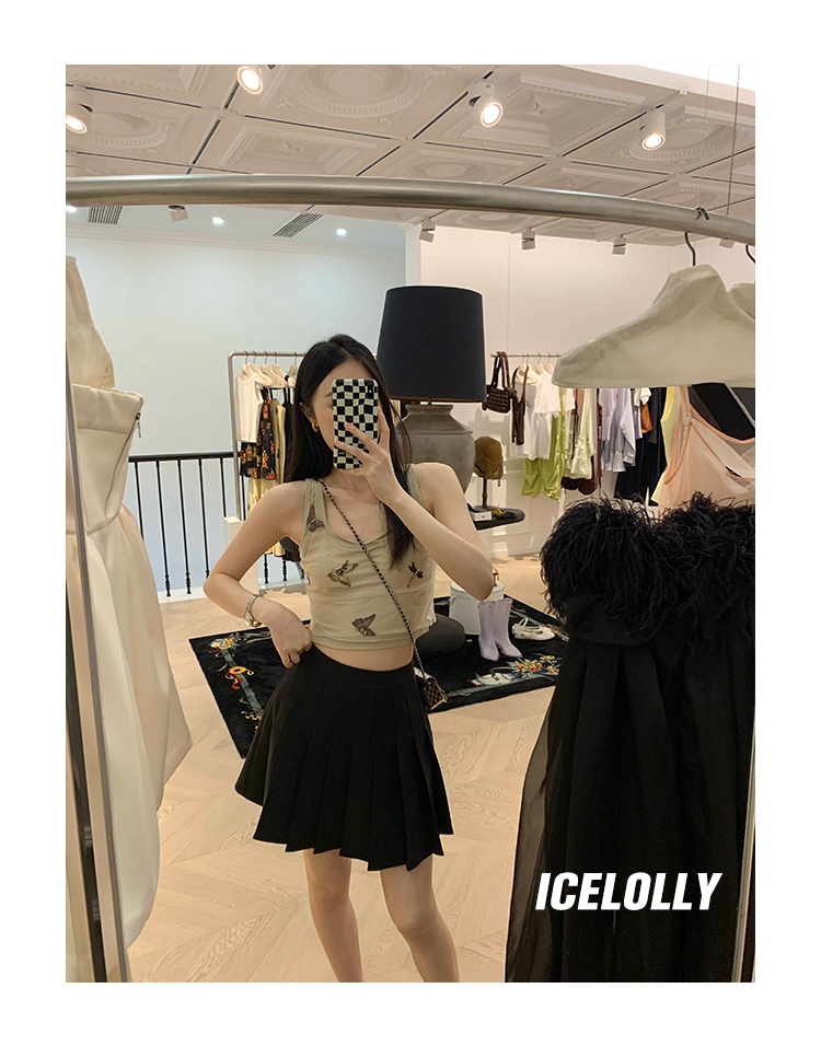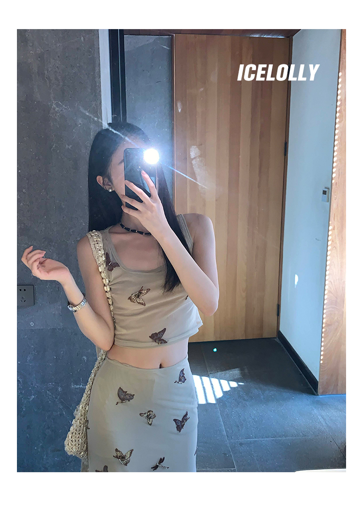 ICELOLLY辣妹別致美背小背心女夏季外穿套裝兩件套吊帶無袖上衣