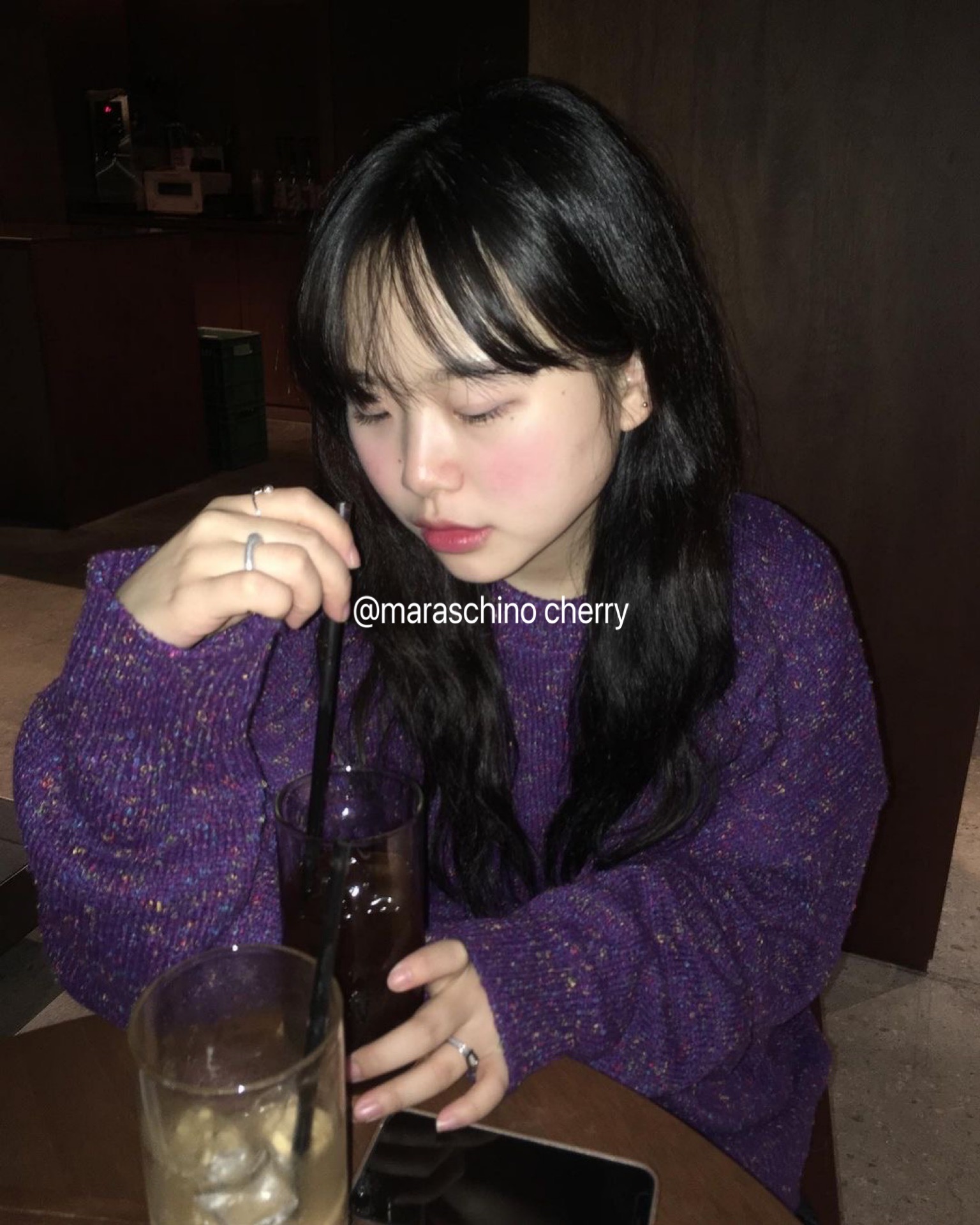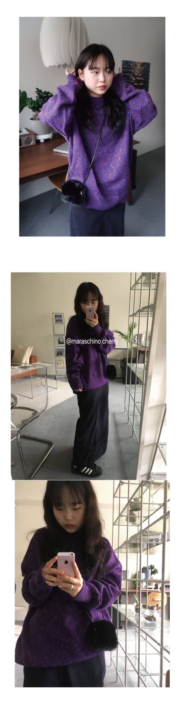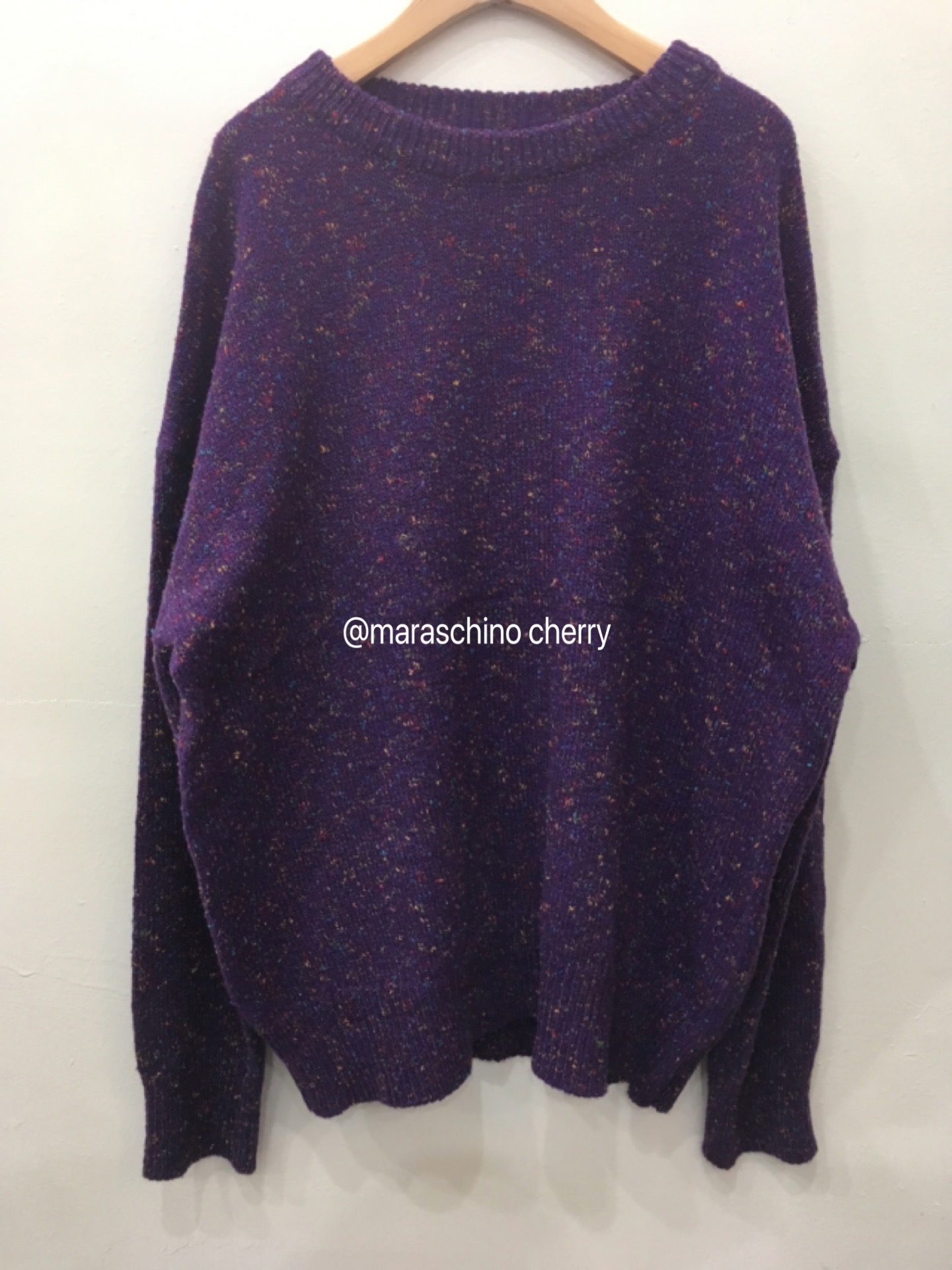 Unique SEI韓國小眾個性彩虹糖果點點混色葡萄紫寬鬆針織套頭毛衣