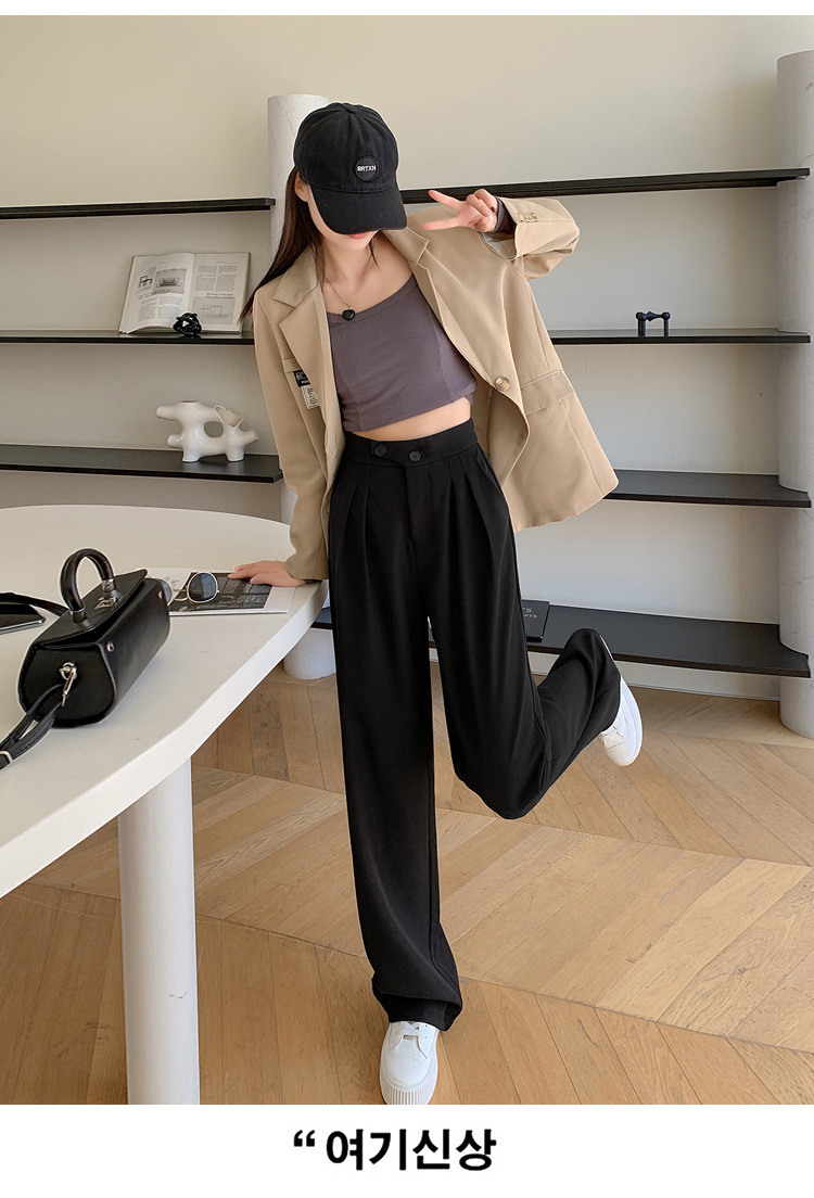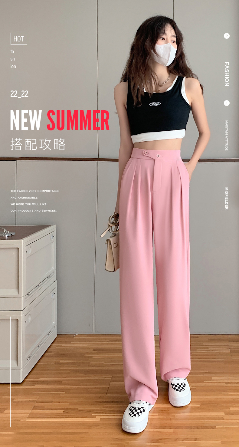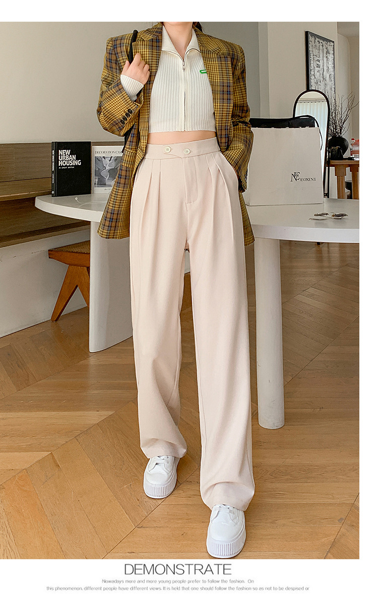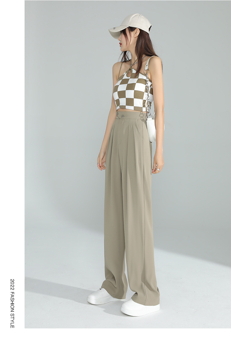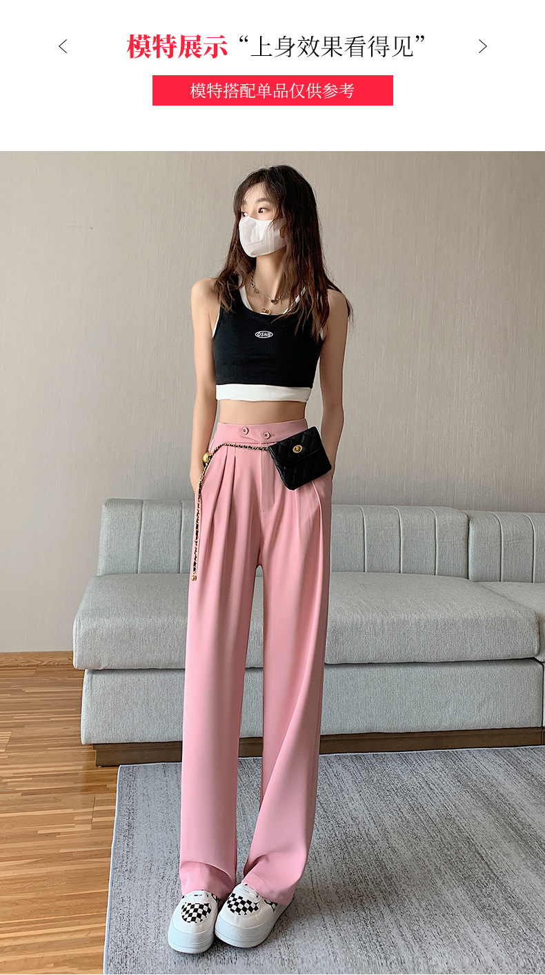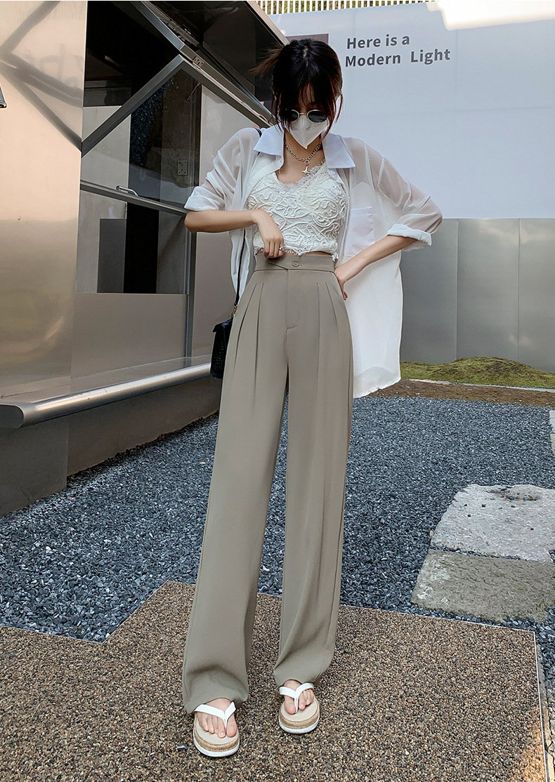 豆沙绿阔腿西装女韩国iins高腰春夏秋宽松休闲裤直筒垂感气质女裤