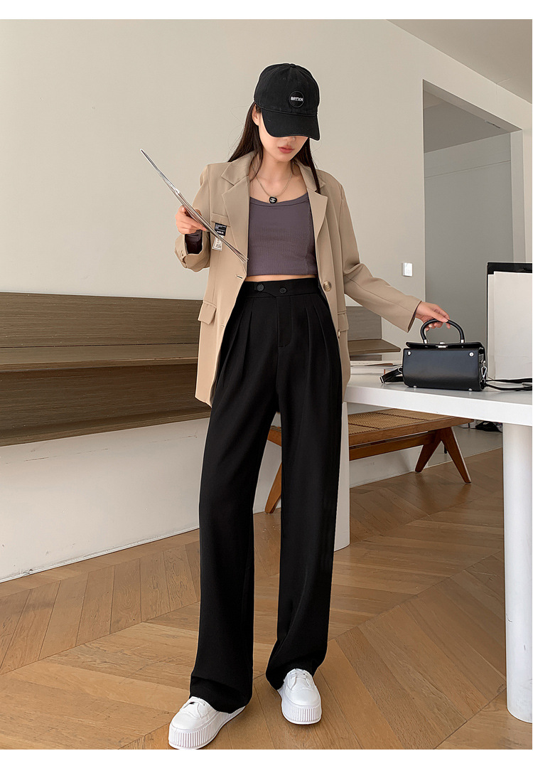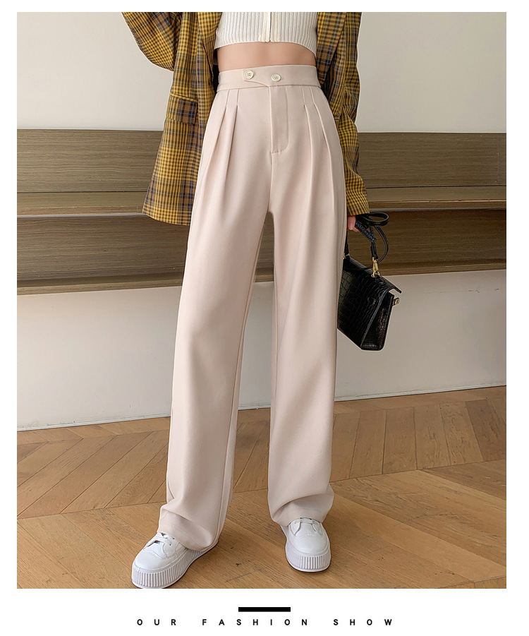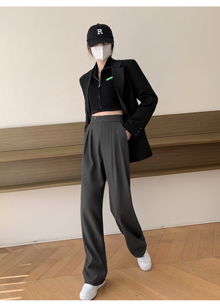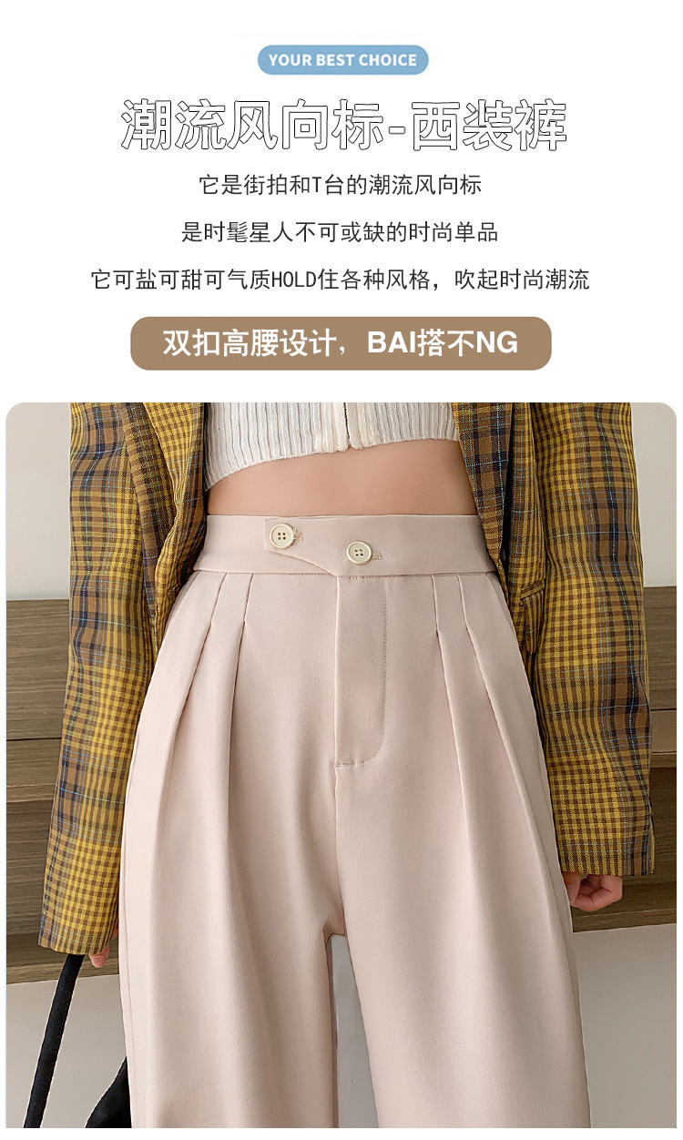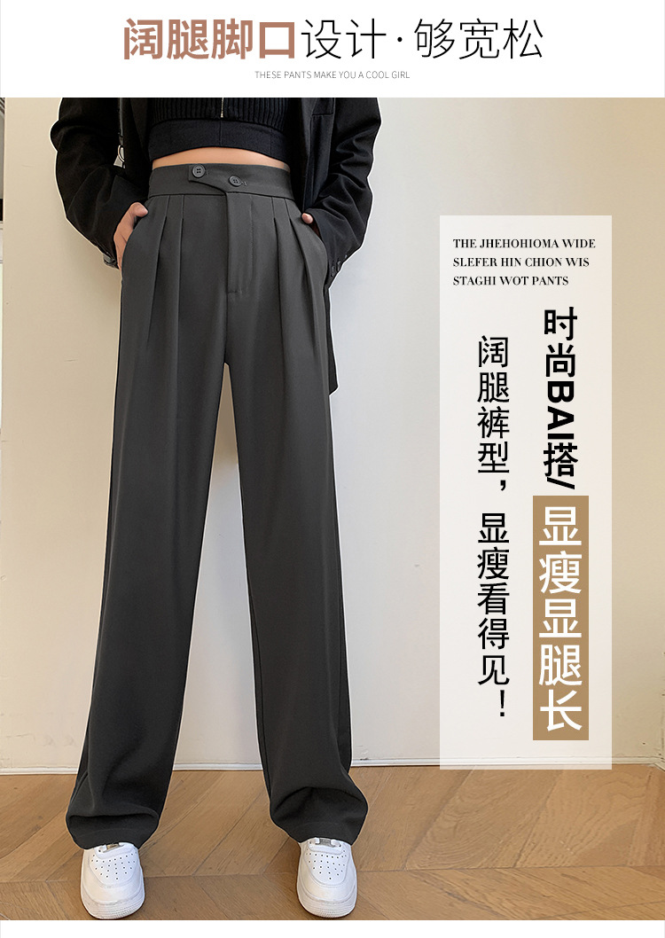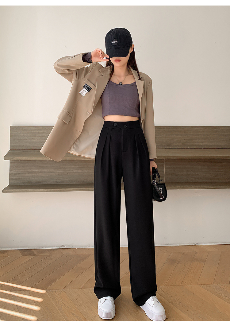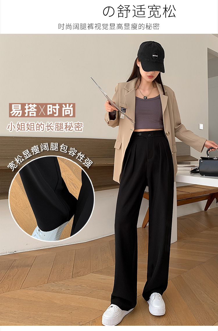 豆沙绿阔腿西装女韩国iins高腰春夏秋宽松休闲裤直筒垂感气质女裤