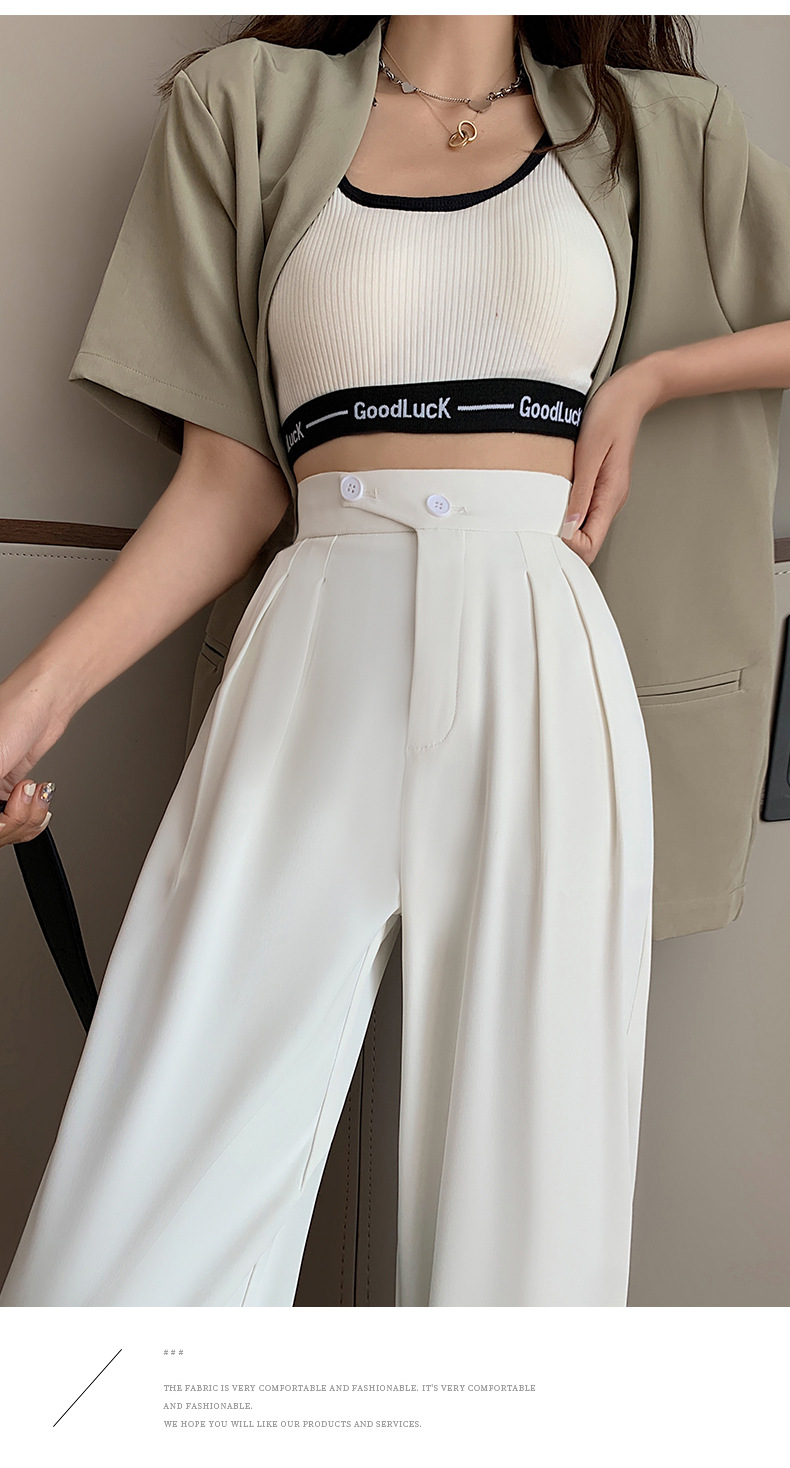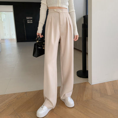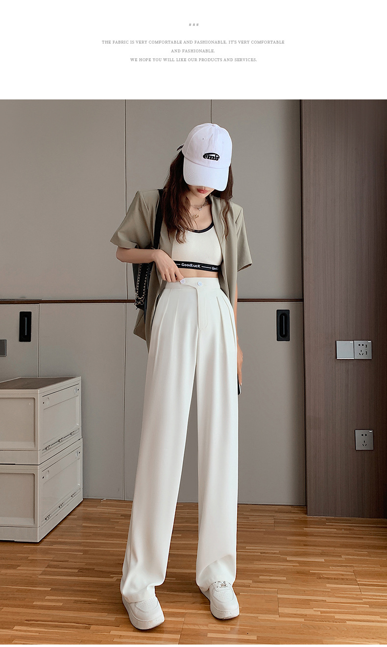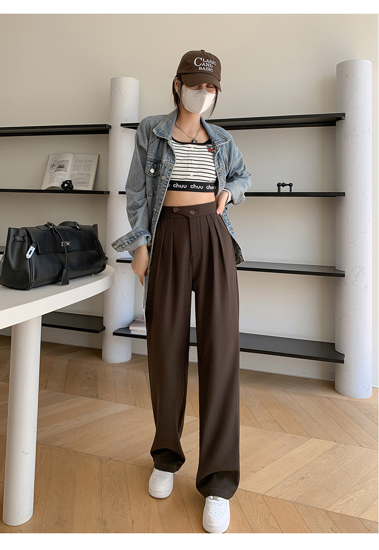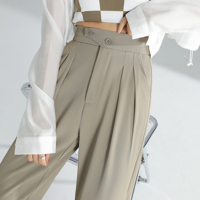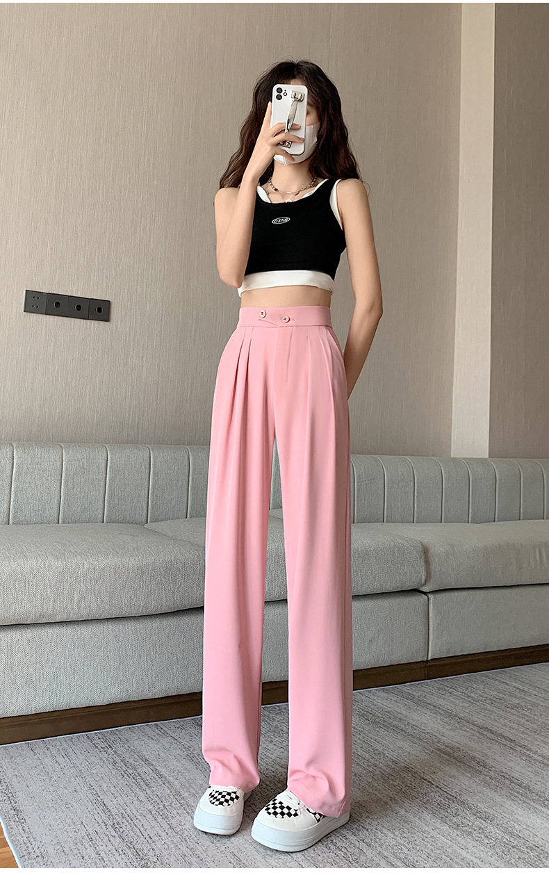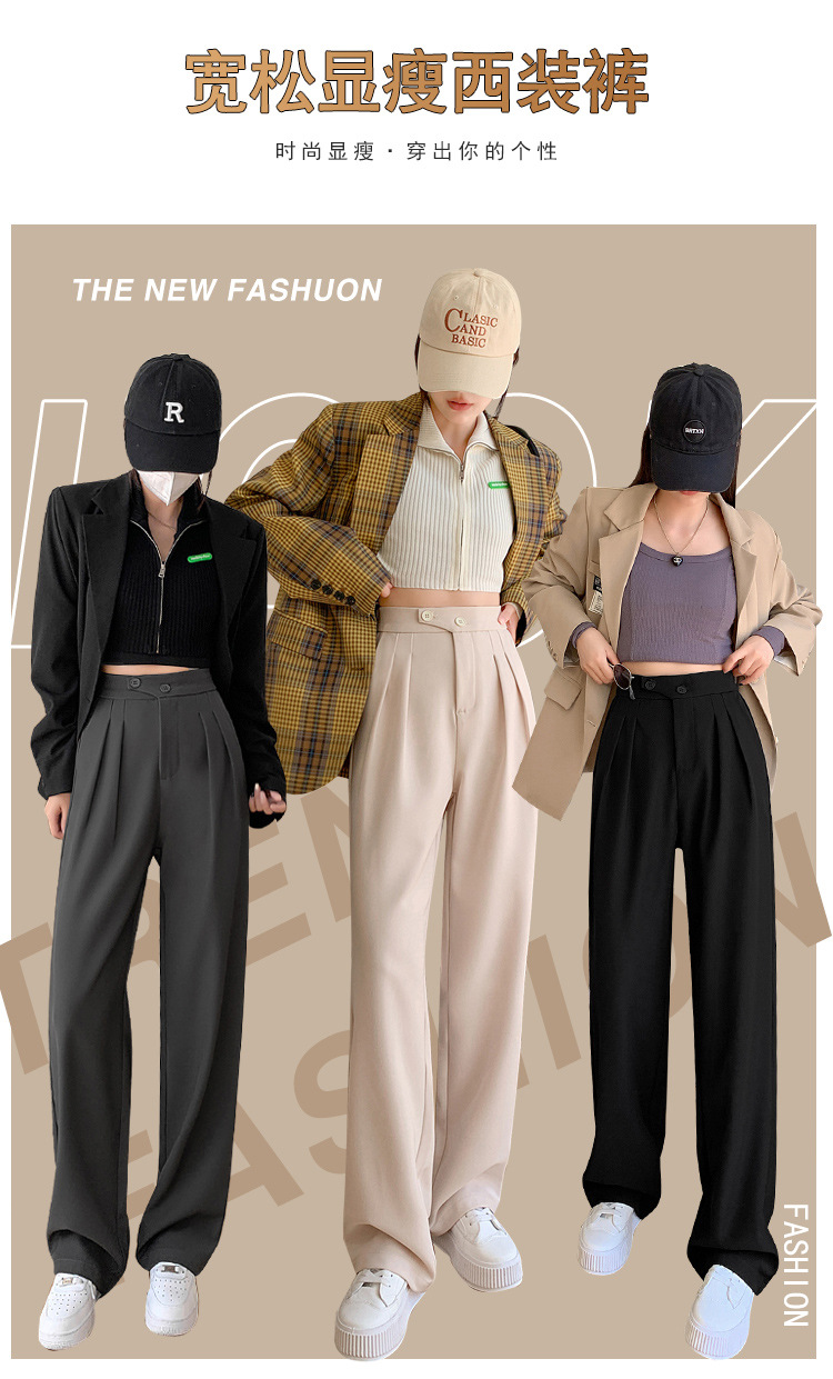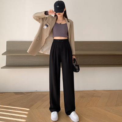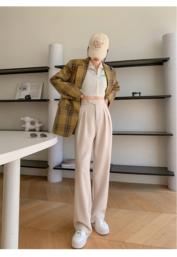 豆沙绿阔腿西装女韩国iins高腰春夏秋宽松休闲裤直筒垂感气质女裤
