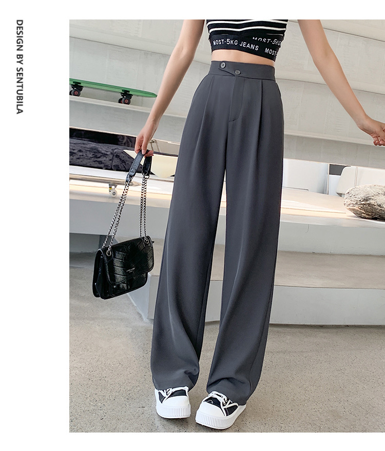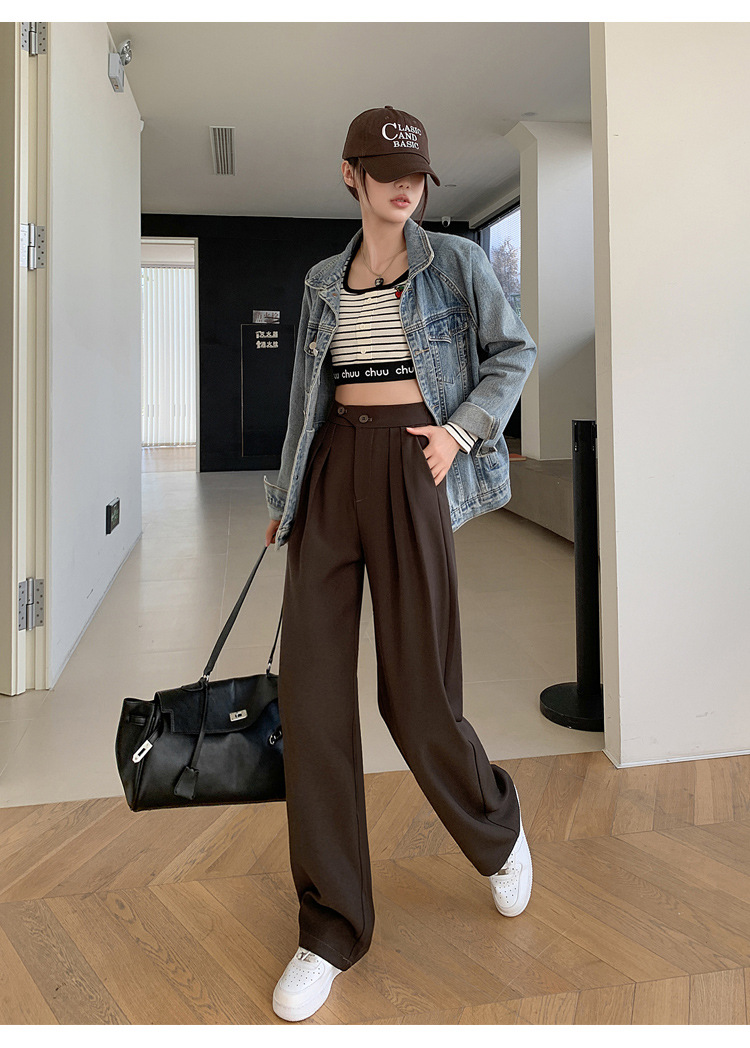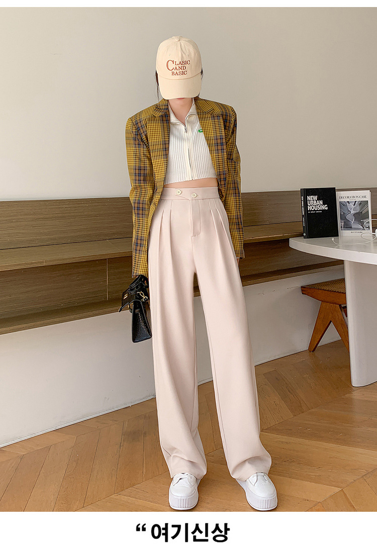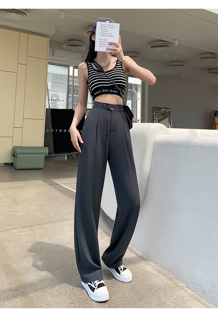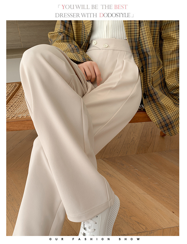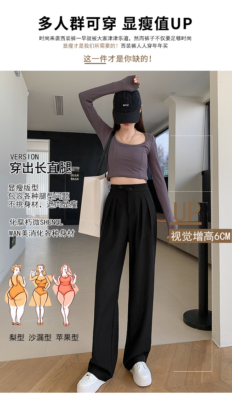 豆沙绿阔腿西装女韩国iins高腰春夏秋宽松休闲裤直筒垂感气质女裤