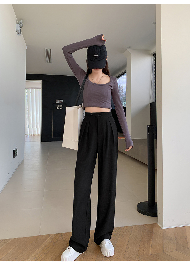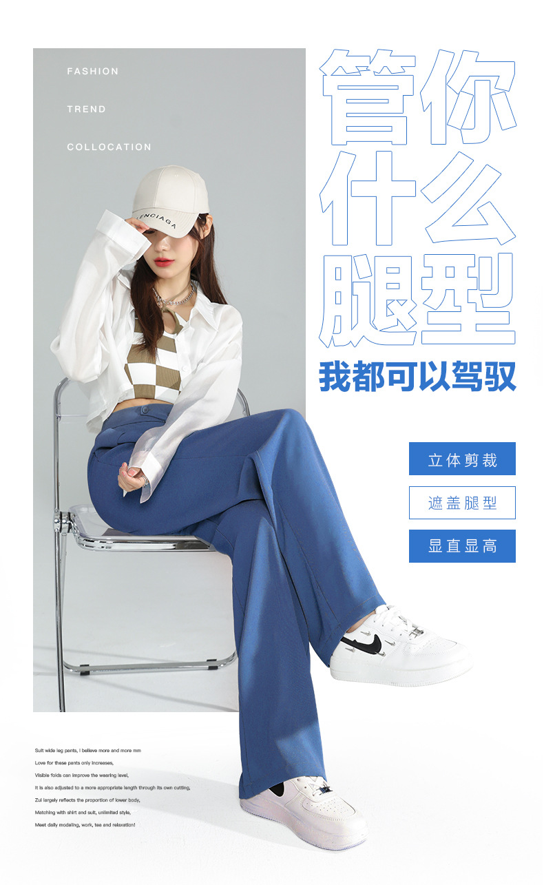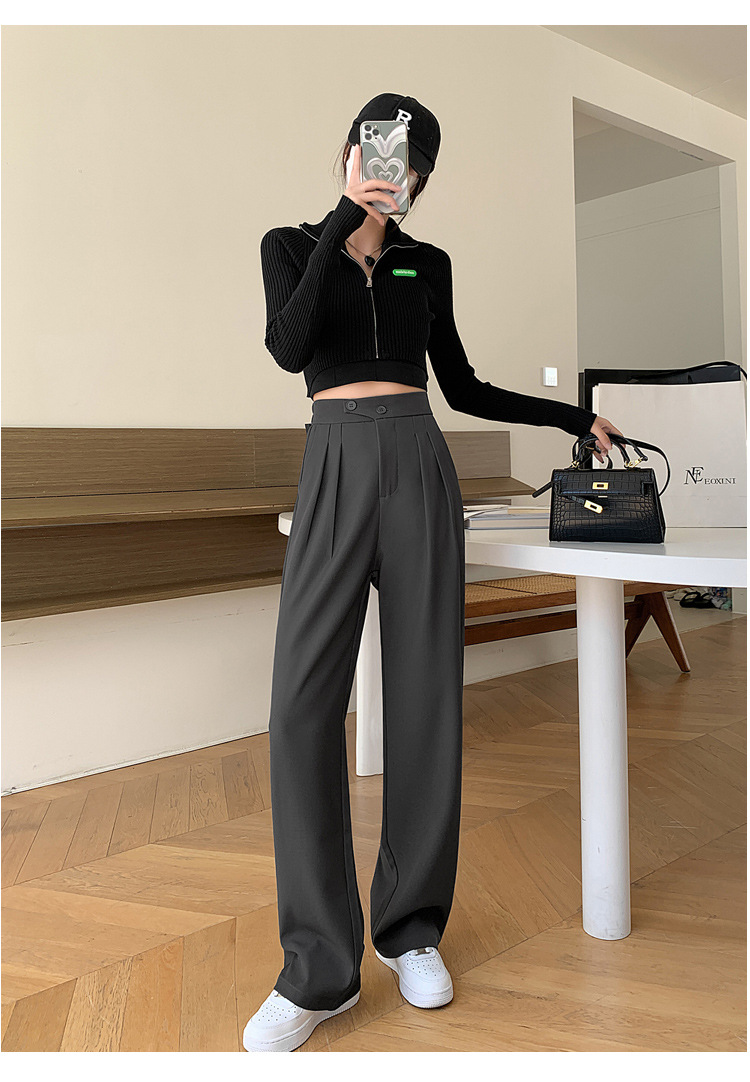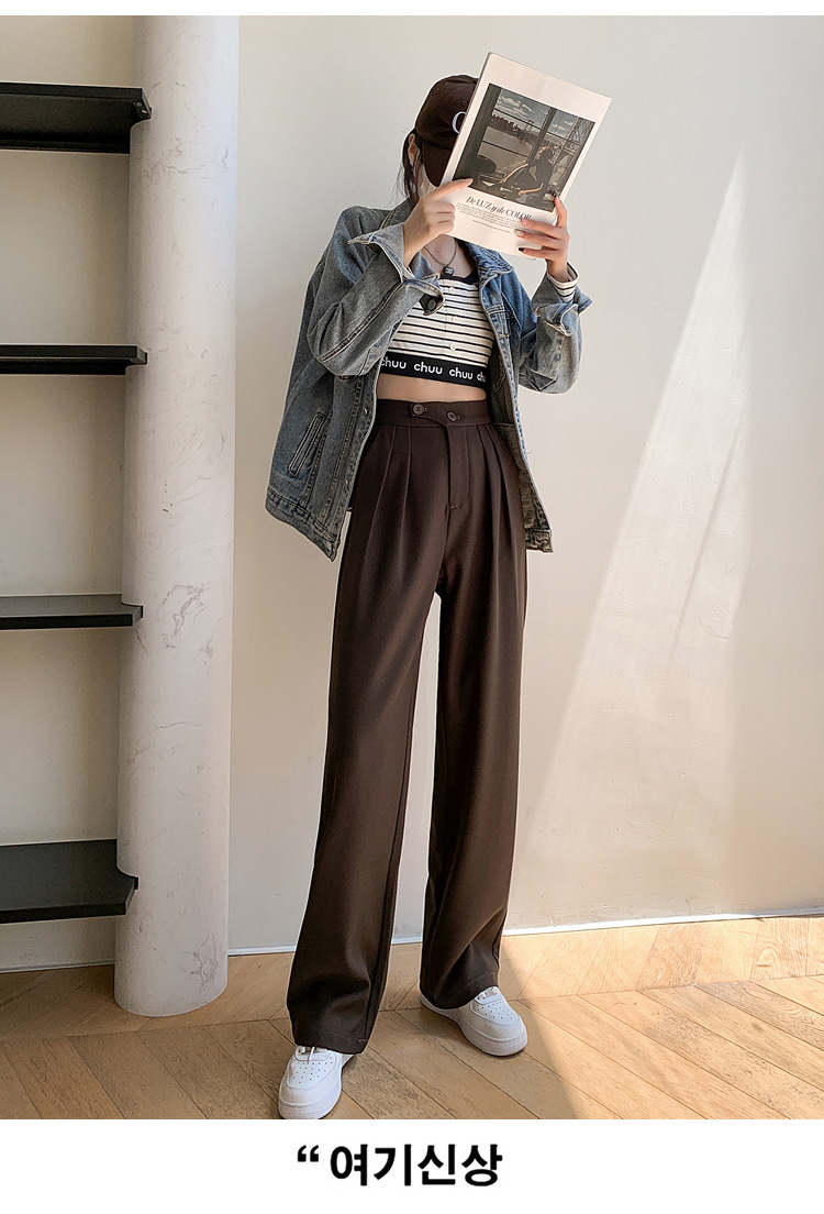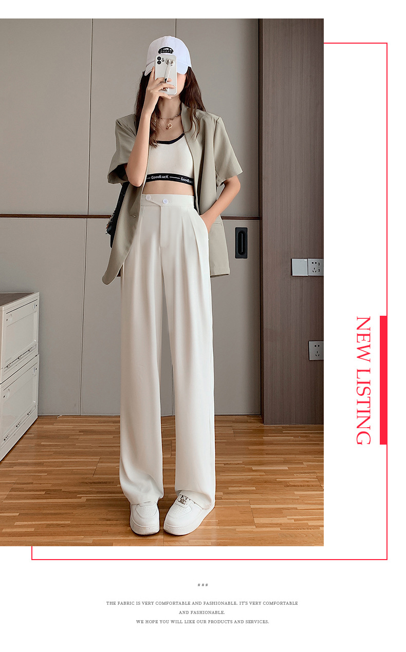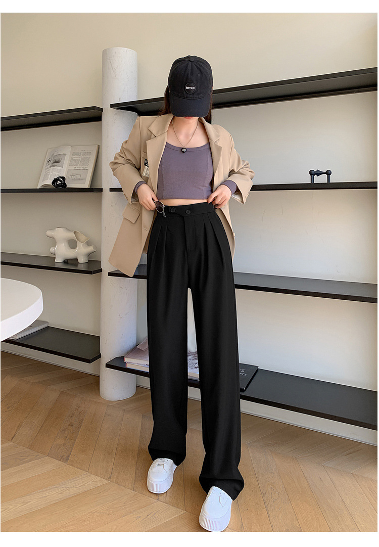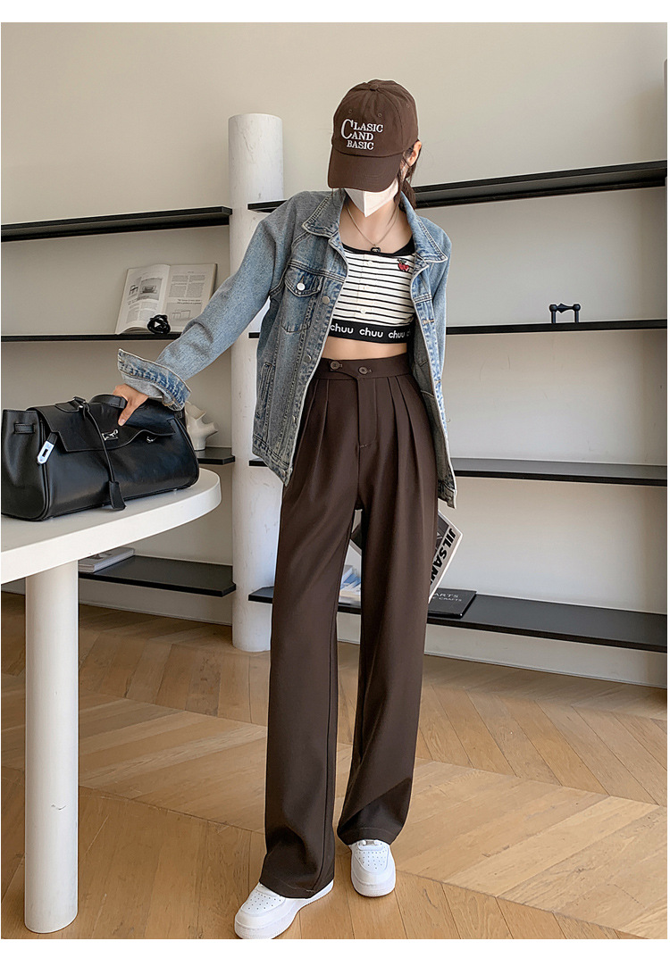 豆沙绿阔腿西装女韩国iins高腰春夏秋宽松休闲裤直筒垂感气质女裤