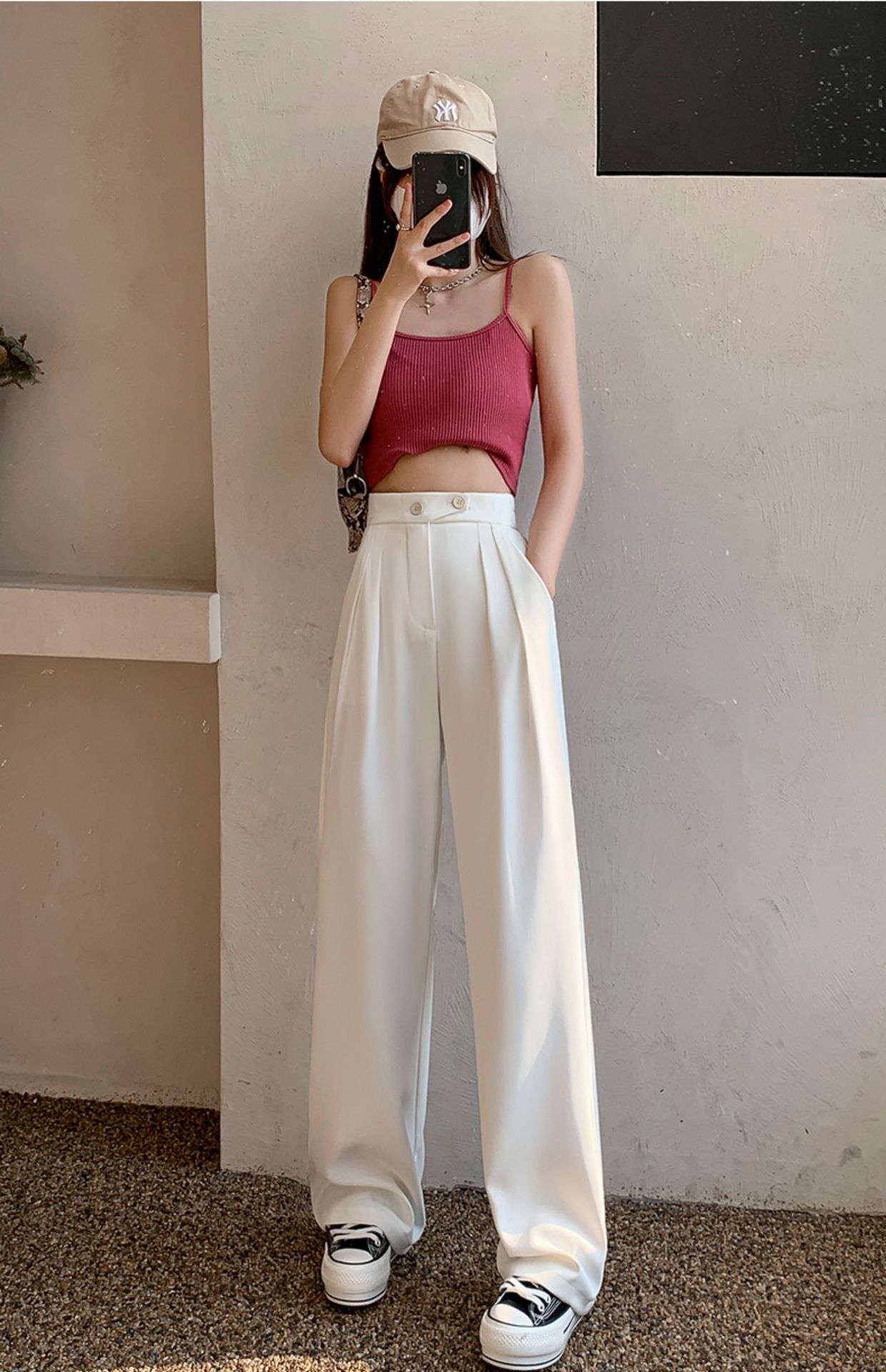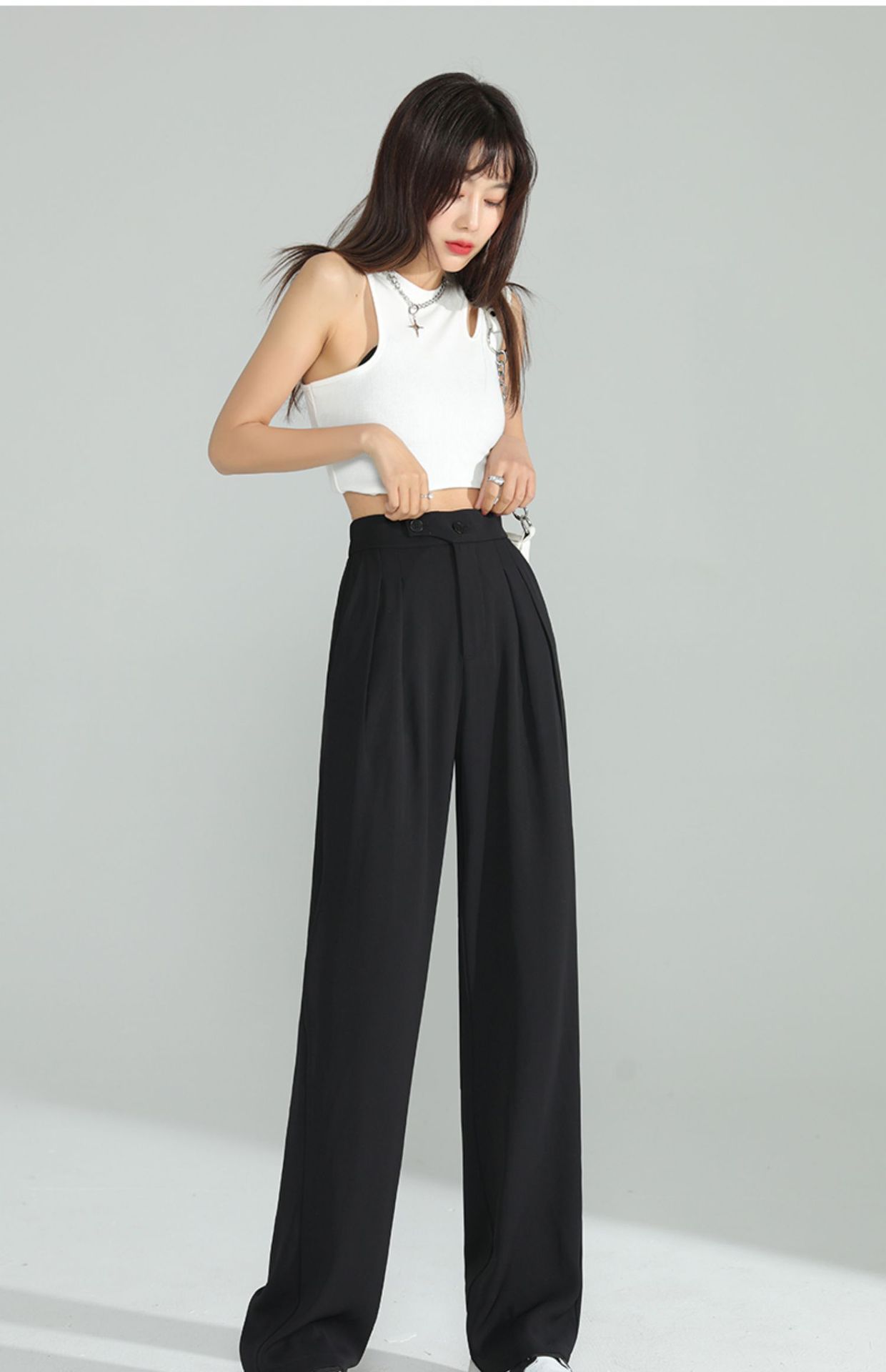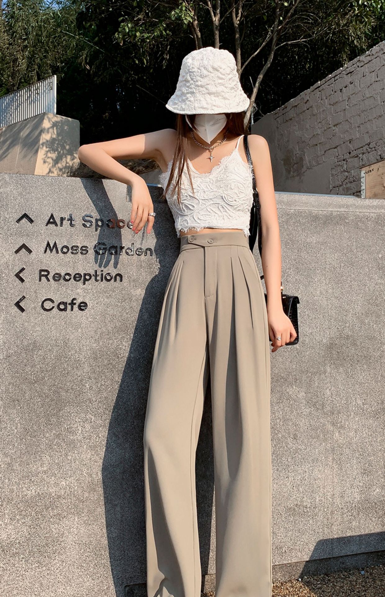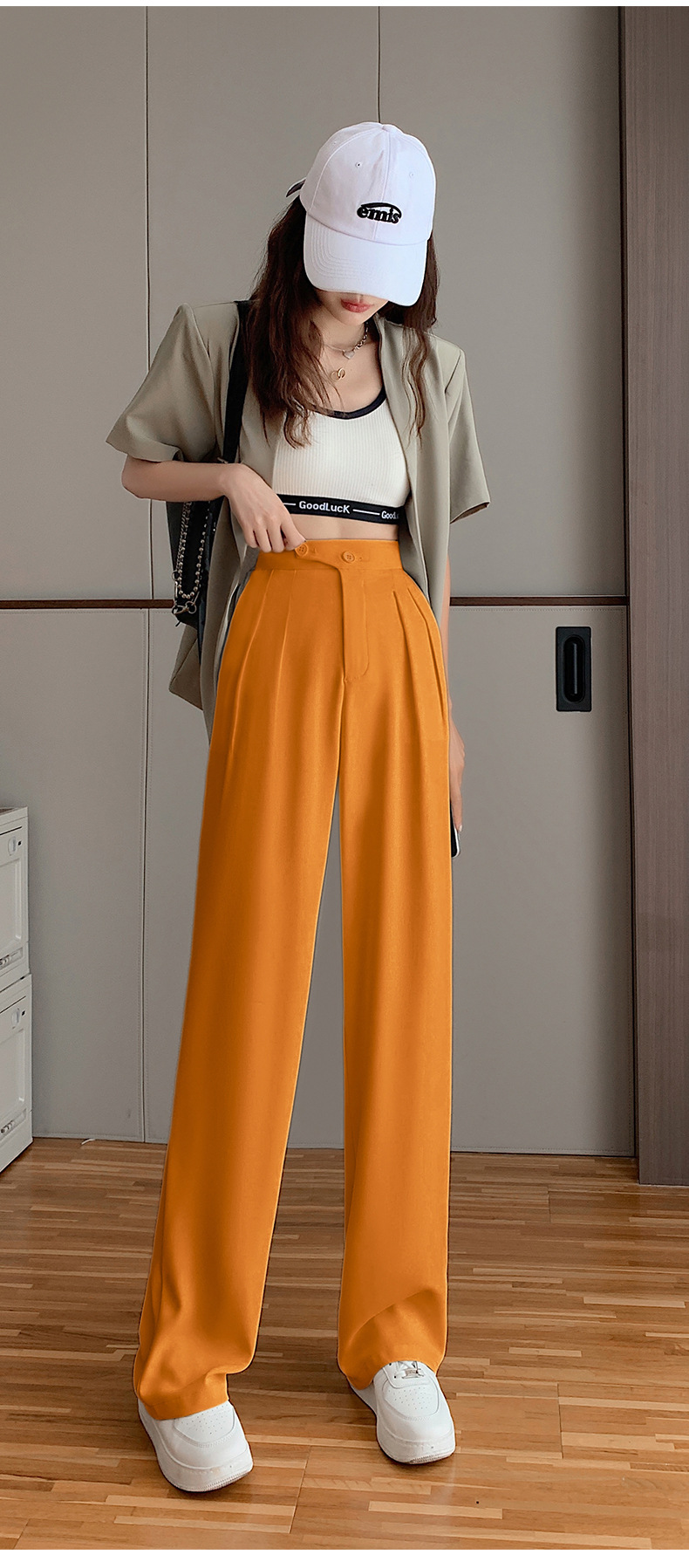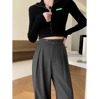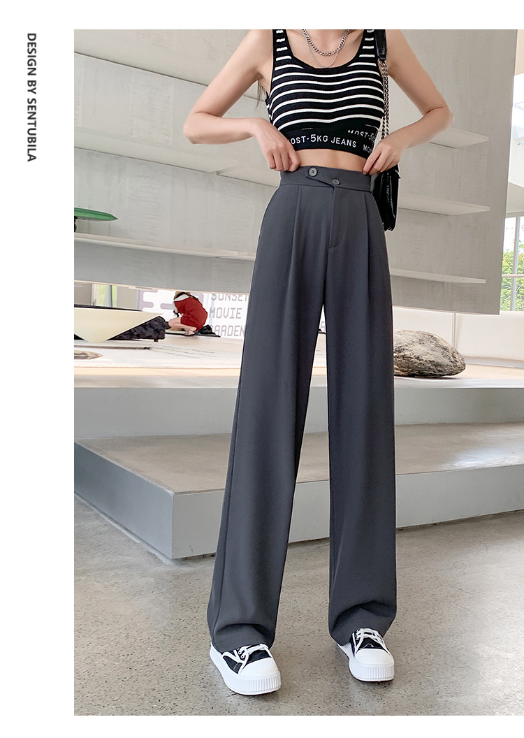 豆沙绿阔腿西装女韩国iins高腰春夏秋宽松休闲裤直筒垂感气质女裤