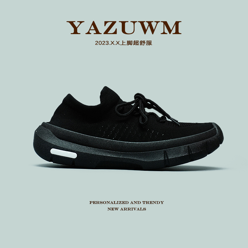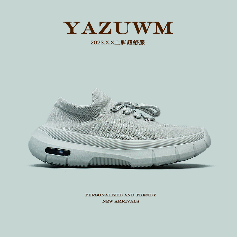 【超舒服】彈力透氣飛織網面一腳蹬運動休閒鞋男士百搭健步襪子鞋