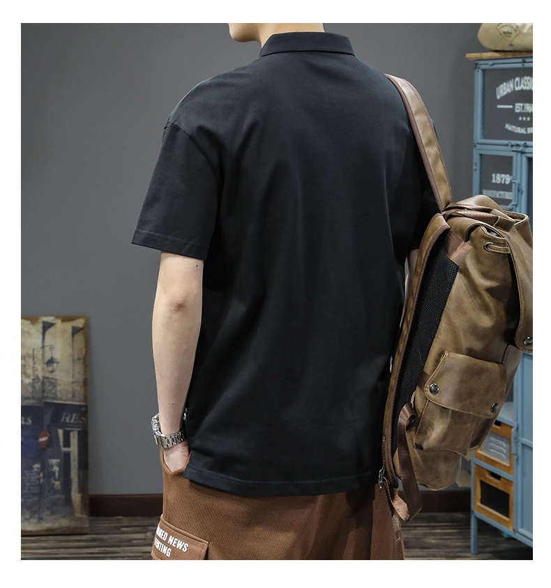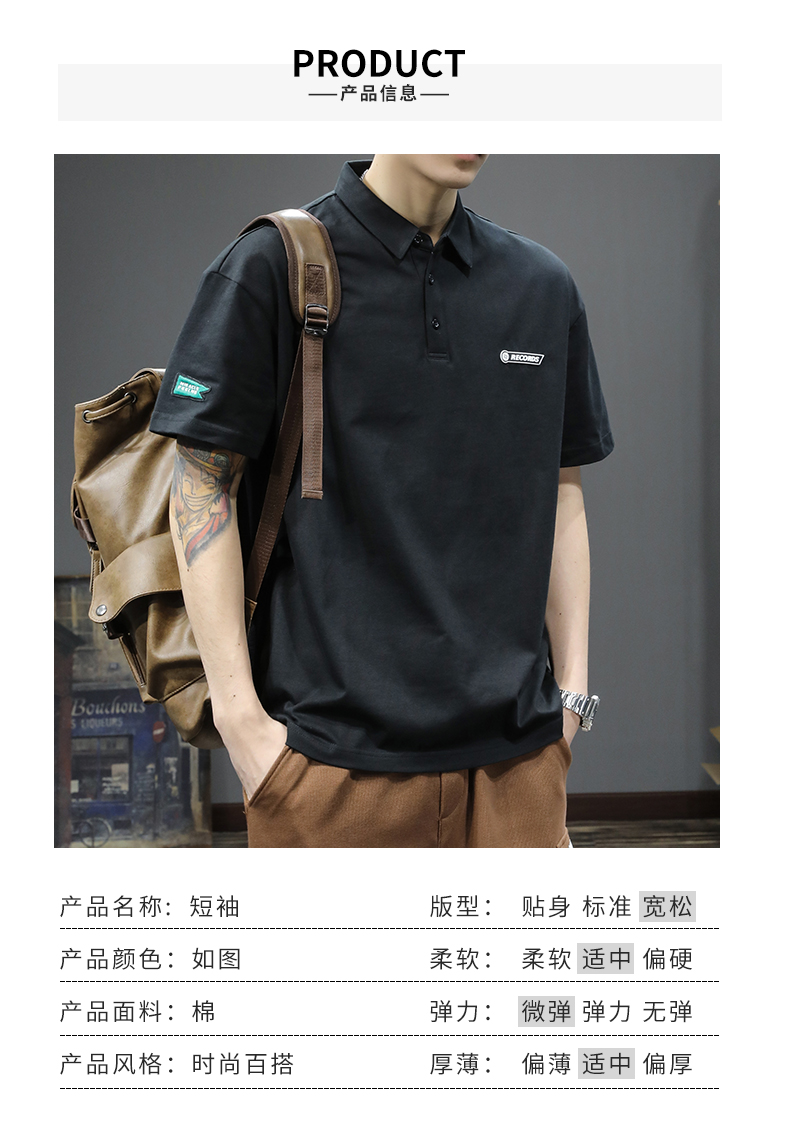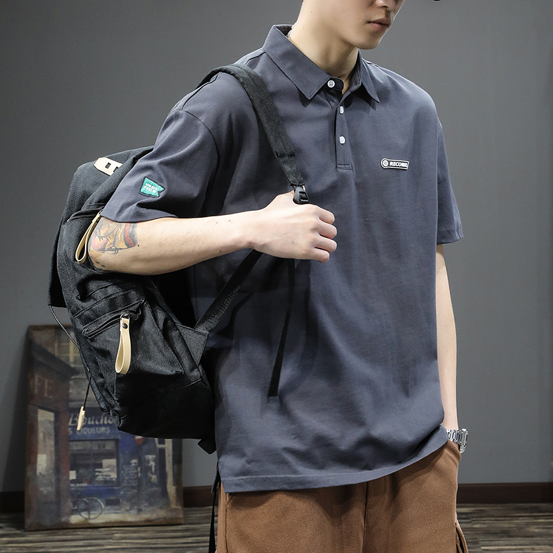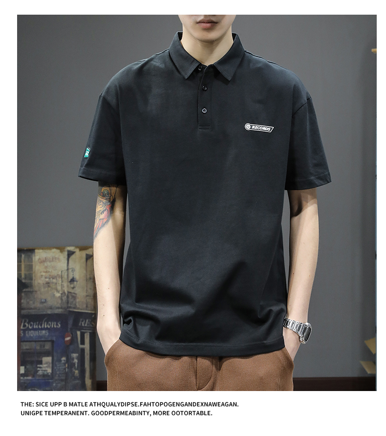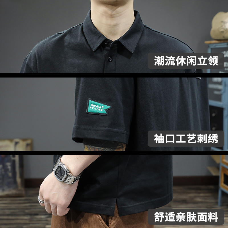 日系翻領polo衫短袖男痞帥百搭高級感純棉t恤夏季寬鬆有領上衣潮