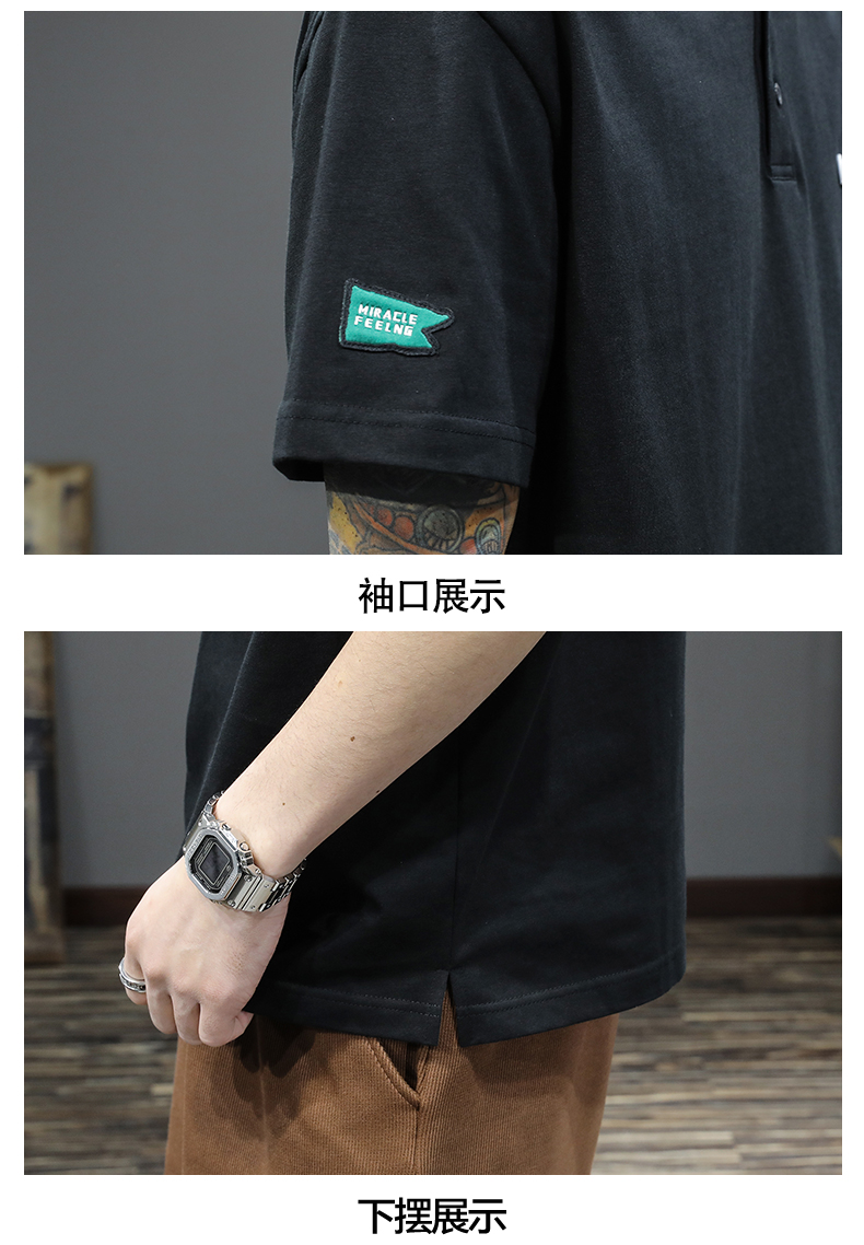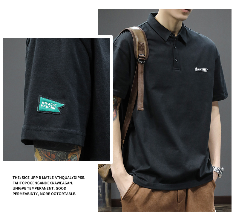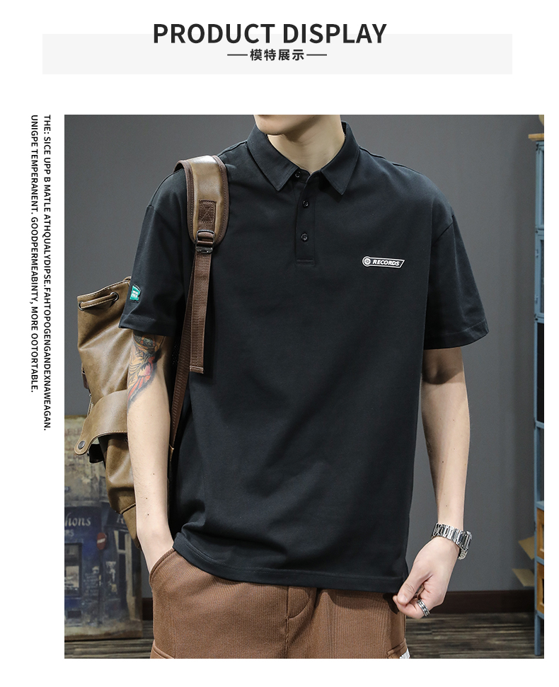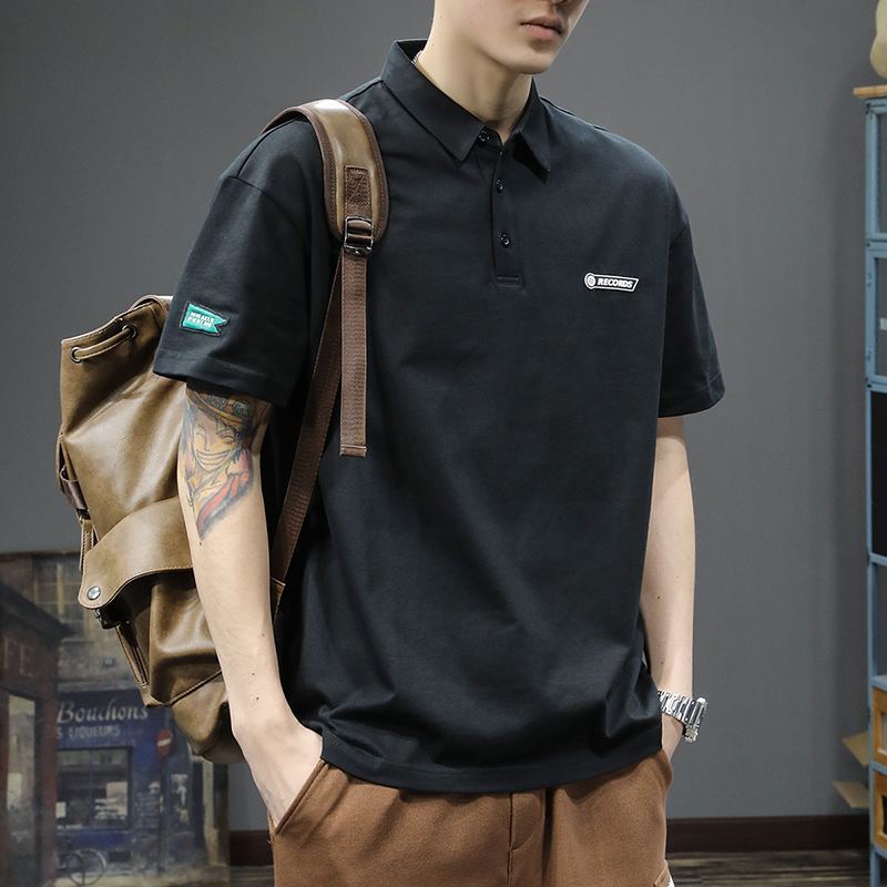 日系翻領polo衫短袖男痞帥百搭高級感純棉t恤夏季寬鬆有領上衣潮
