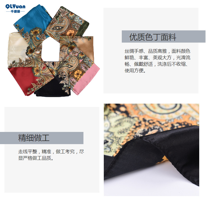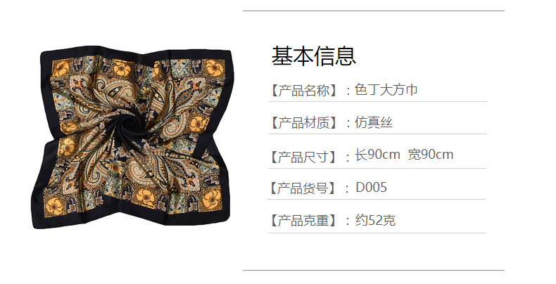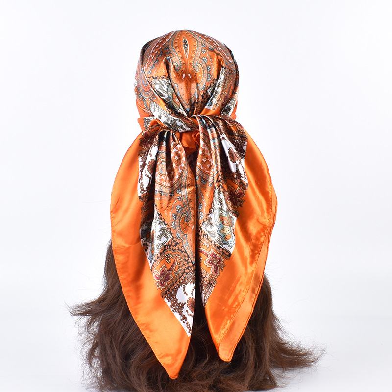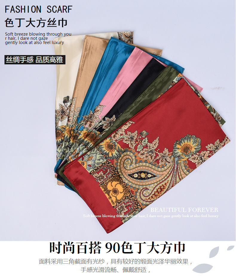 春季新款百搭大腰果90大方巾丝巾批发 经典复古印花围巾scarf