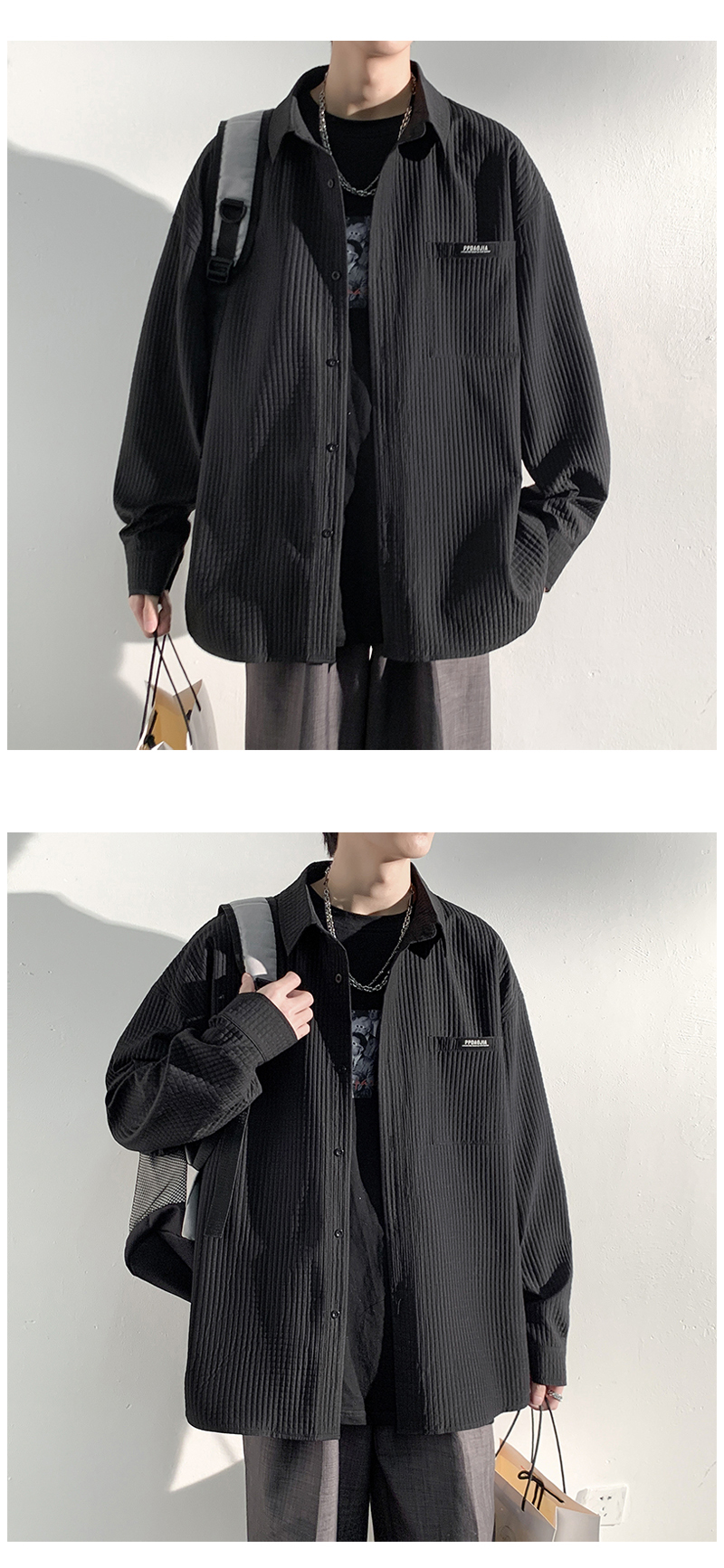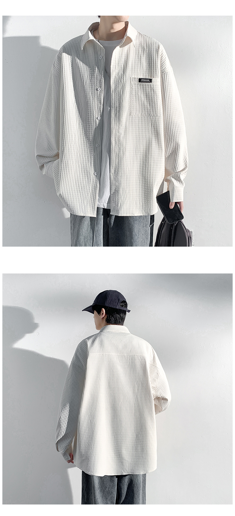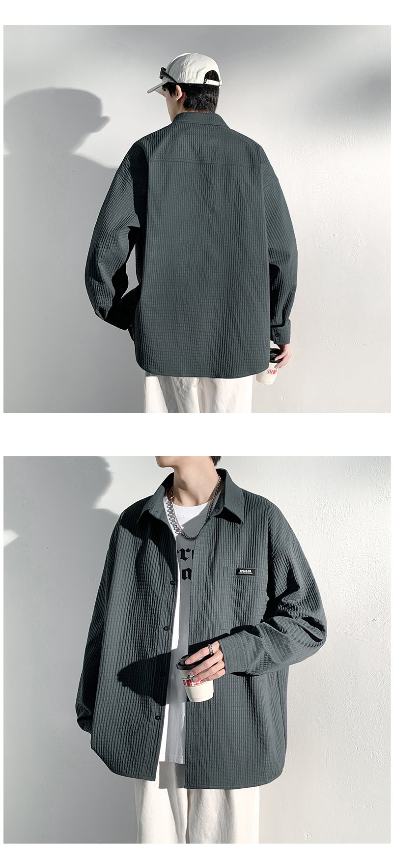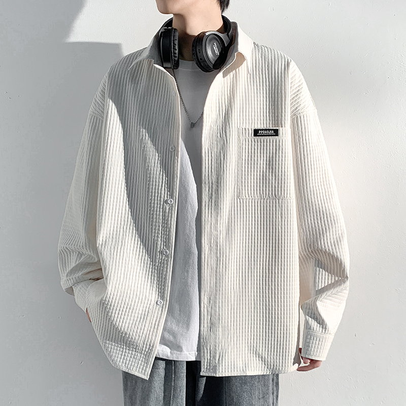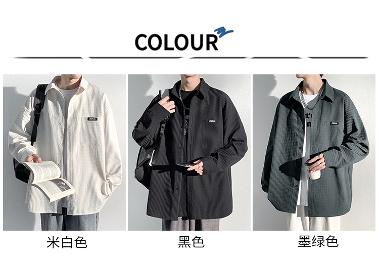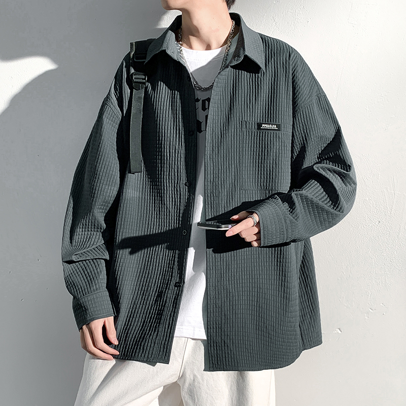 華夫格長袖襯衫男ins港風痞帥工裝襯衣外套寬鬆情侶潮流休閒衣服
