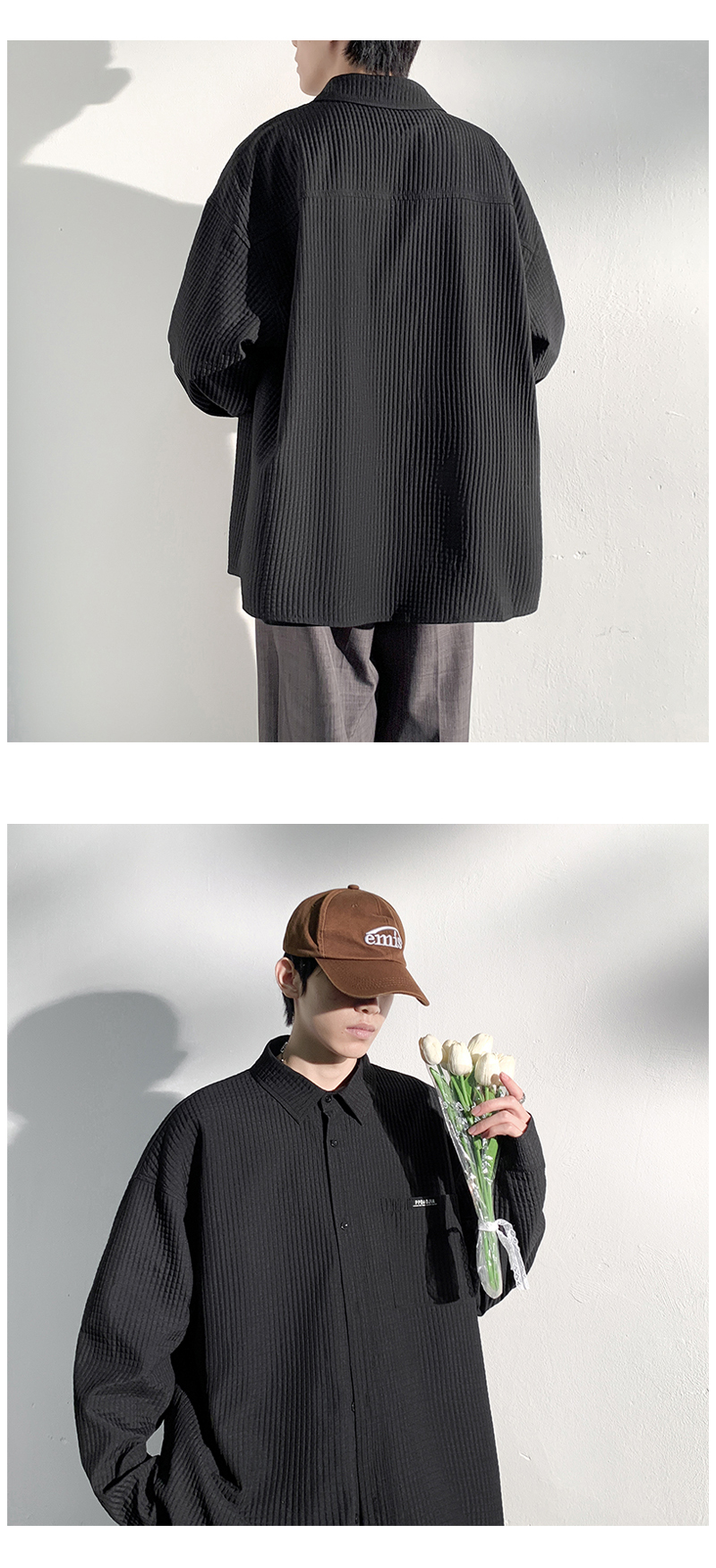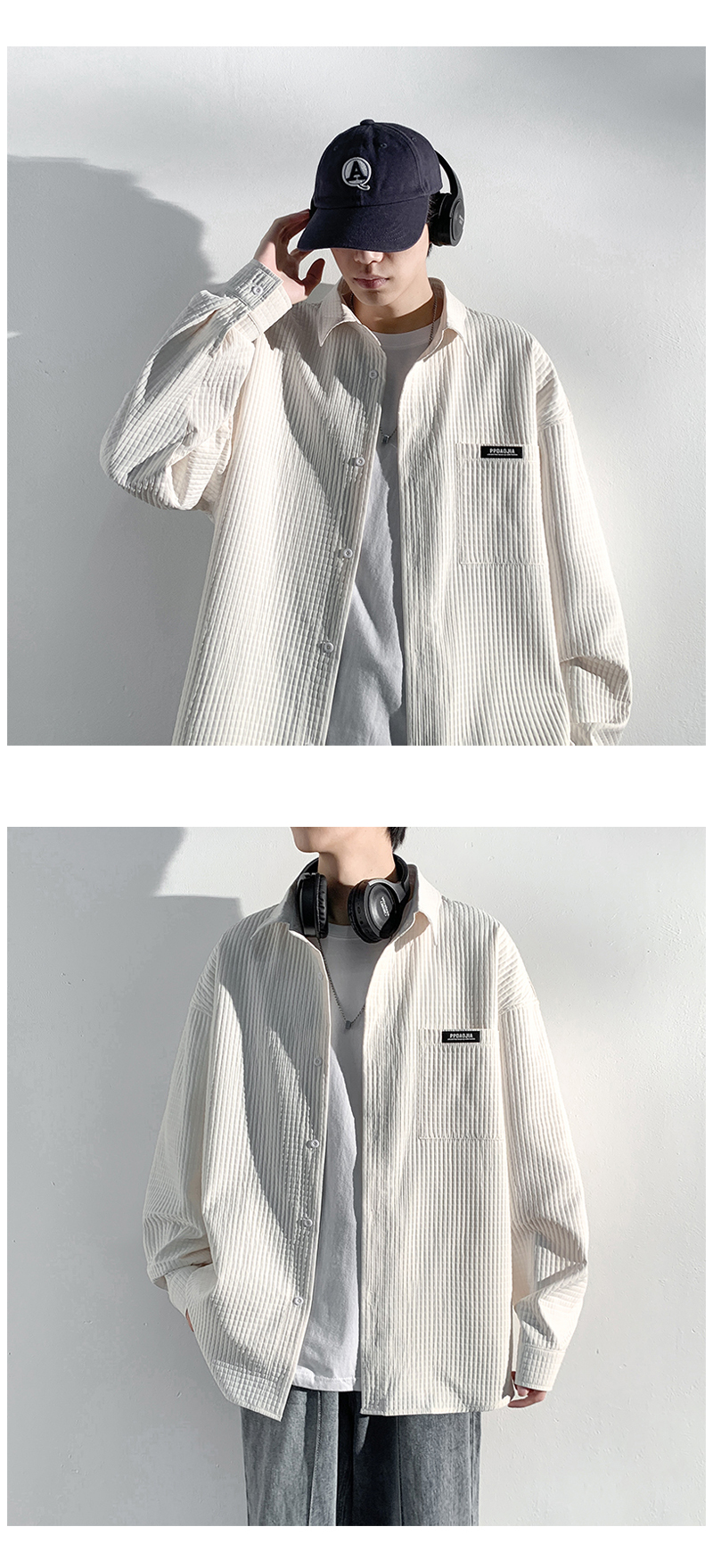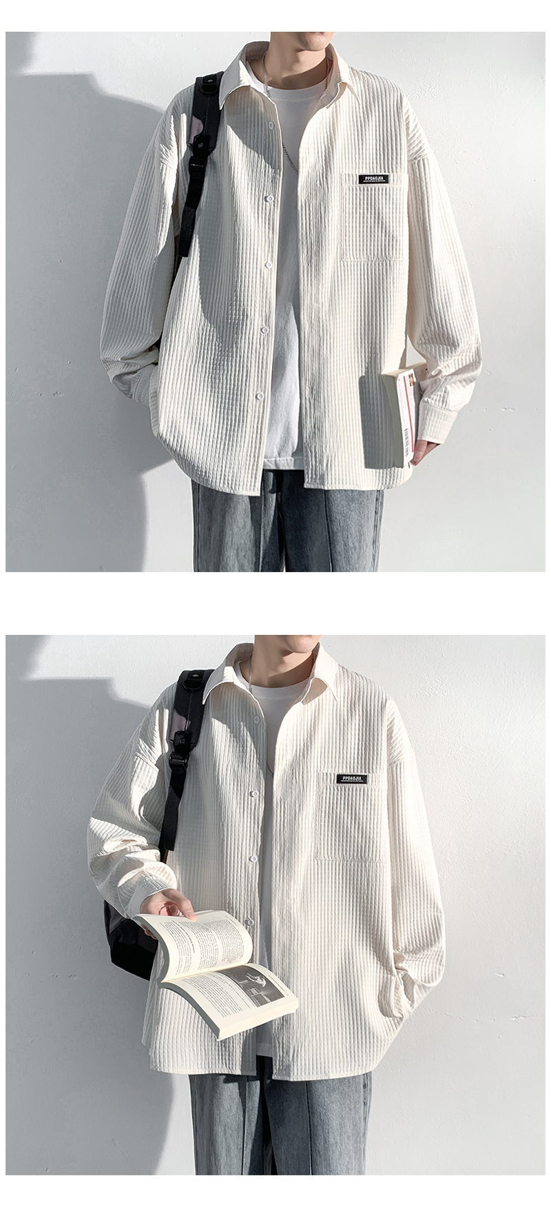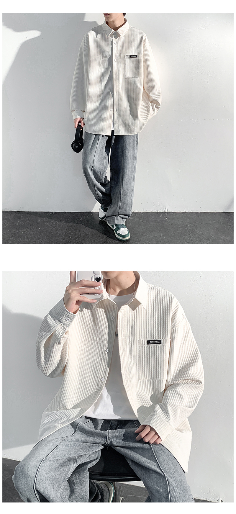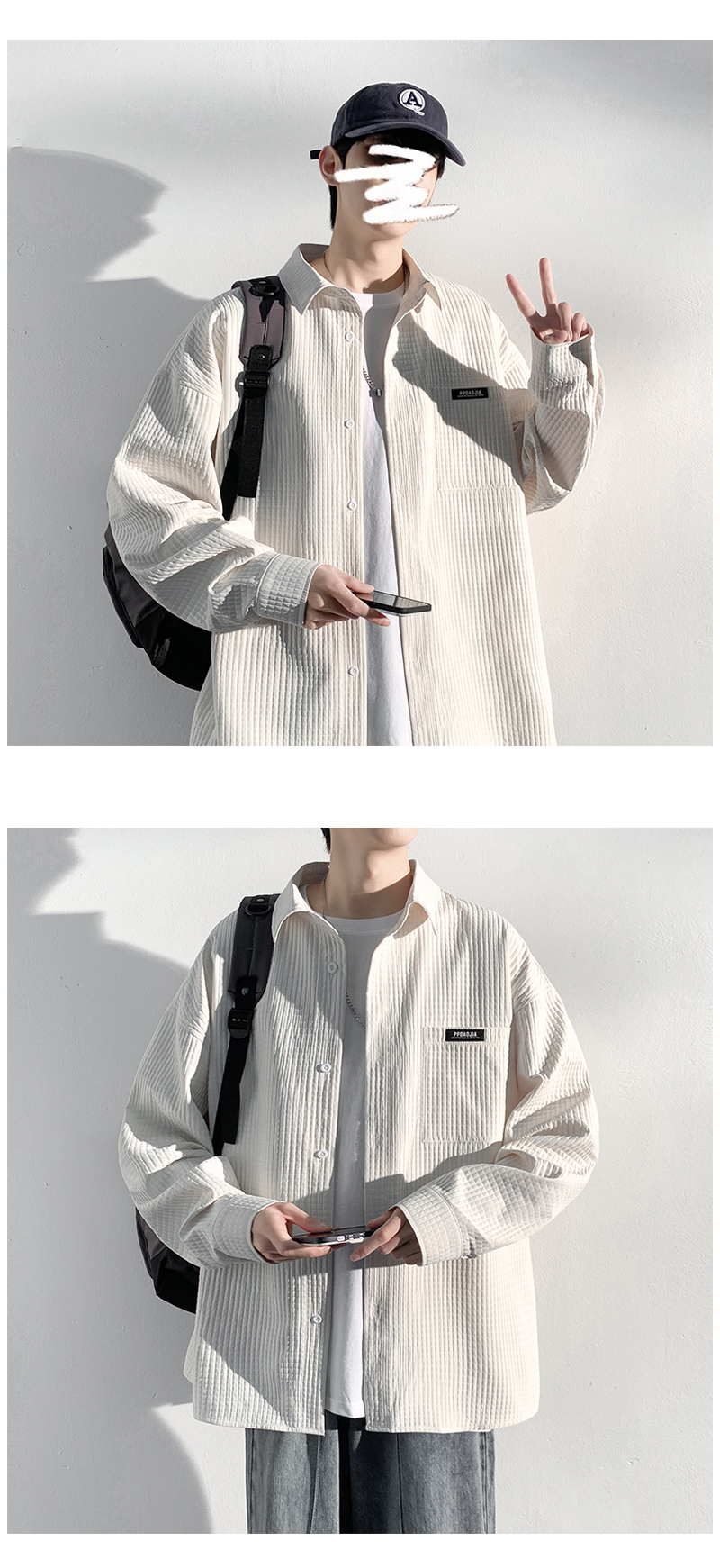 華夫格長袖襯衫男ins港風痞帥工裝襯衣外套寬鬆情侶潮流休閒衣服
