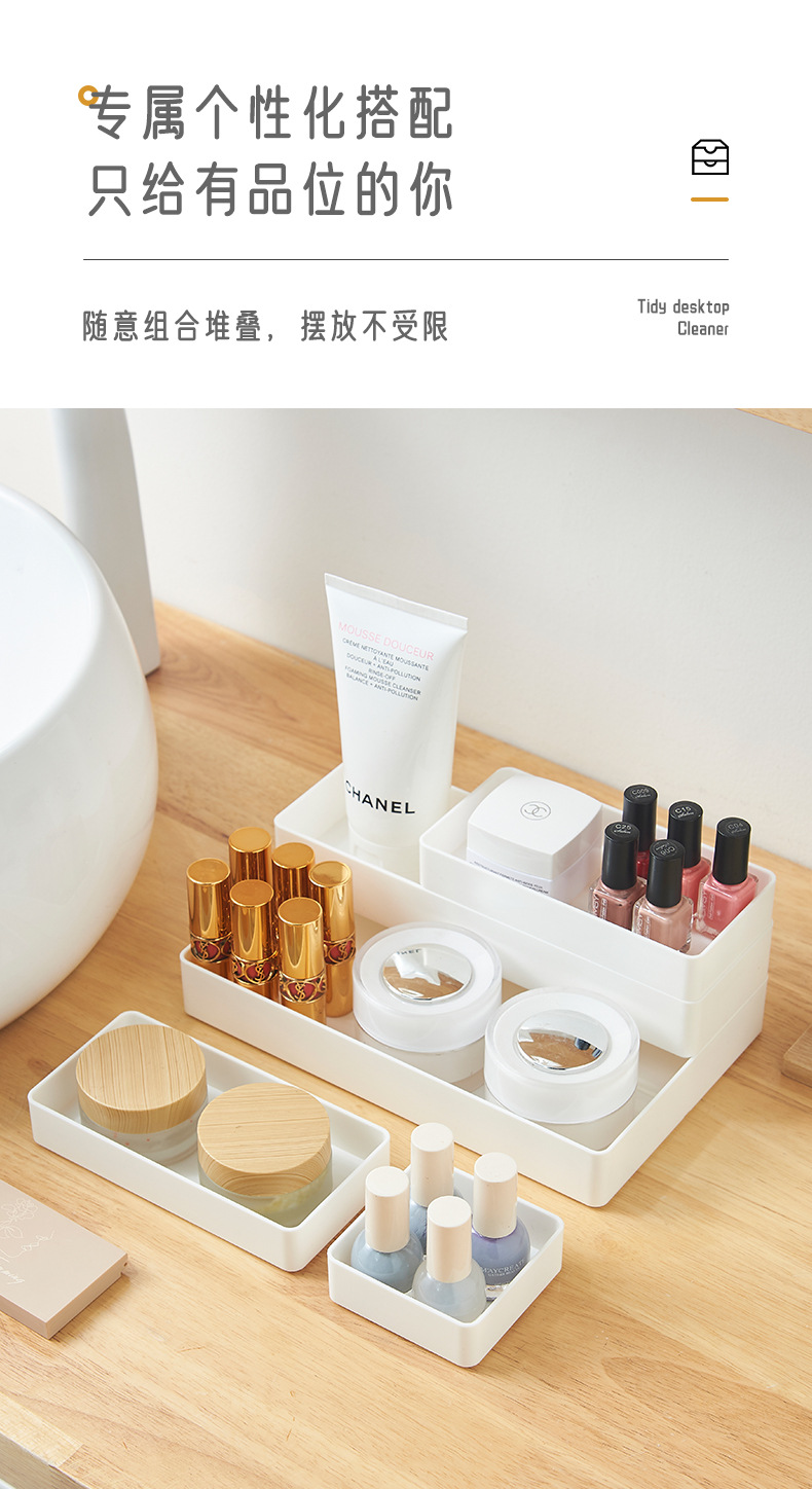 办公桌面文具收纳盒 化妆品分格整理叠加抽屉式口红透明DIY收纳盒