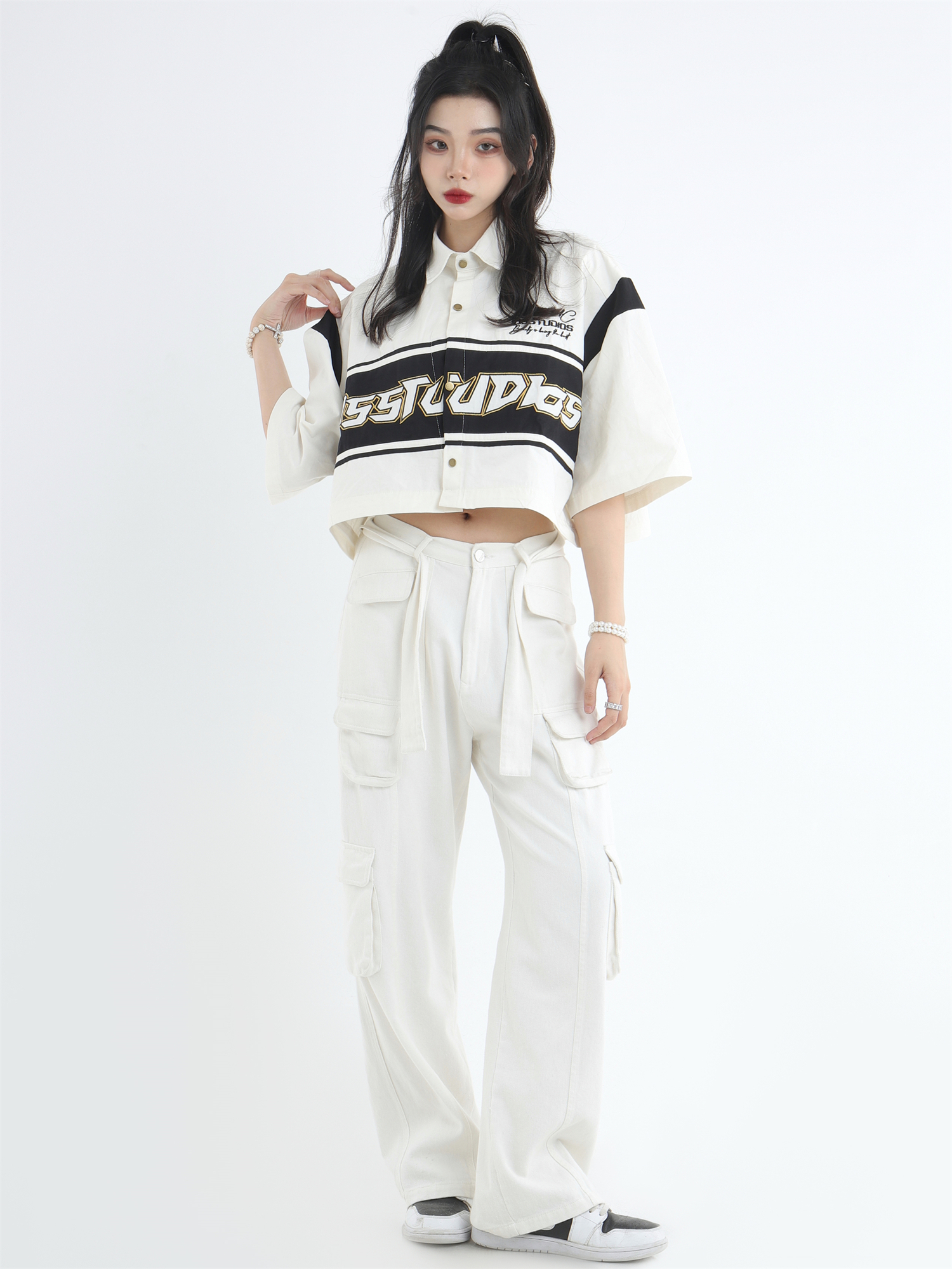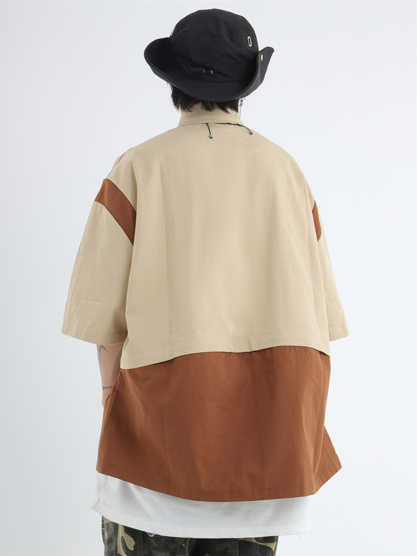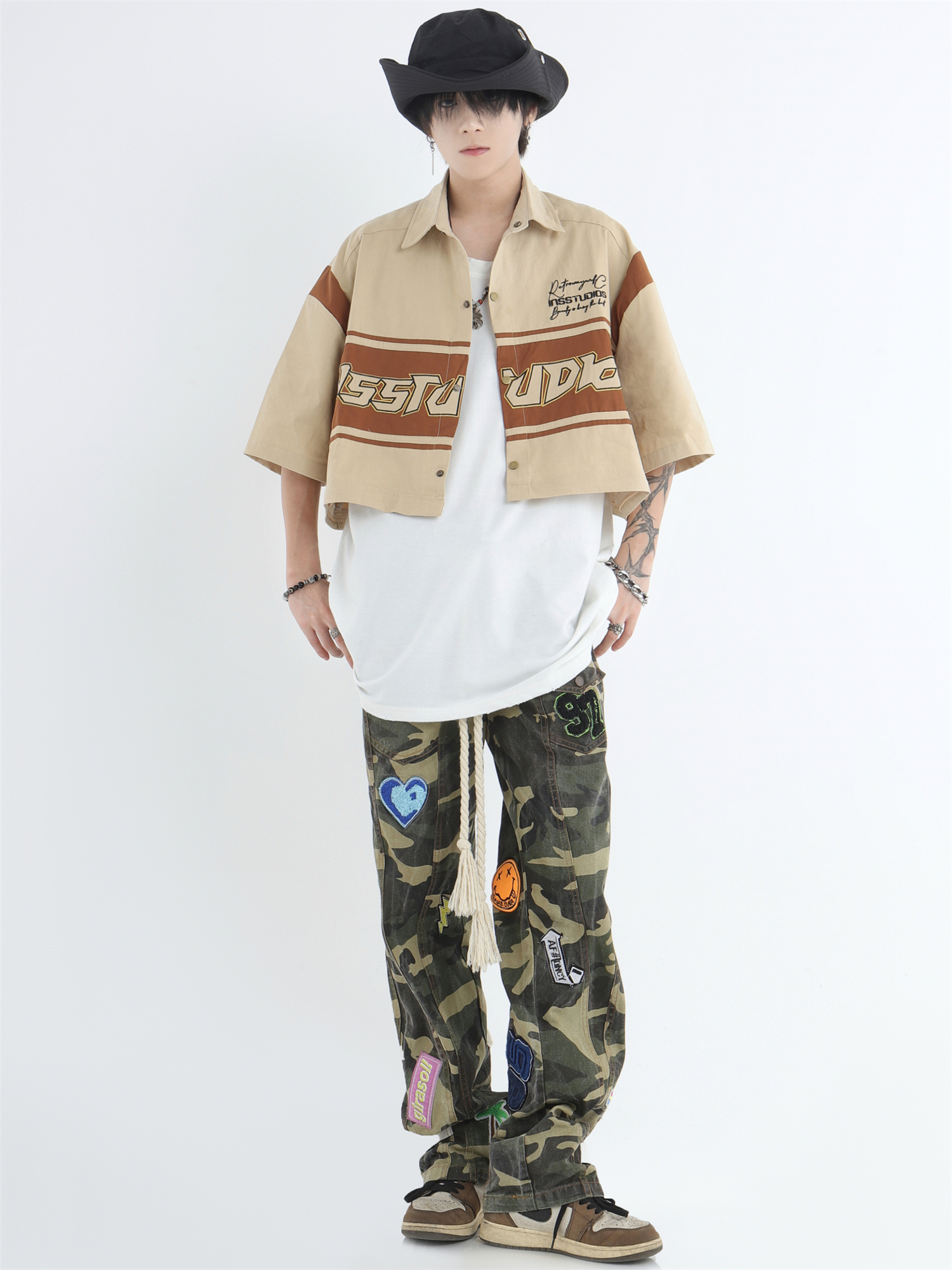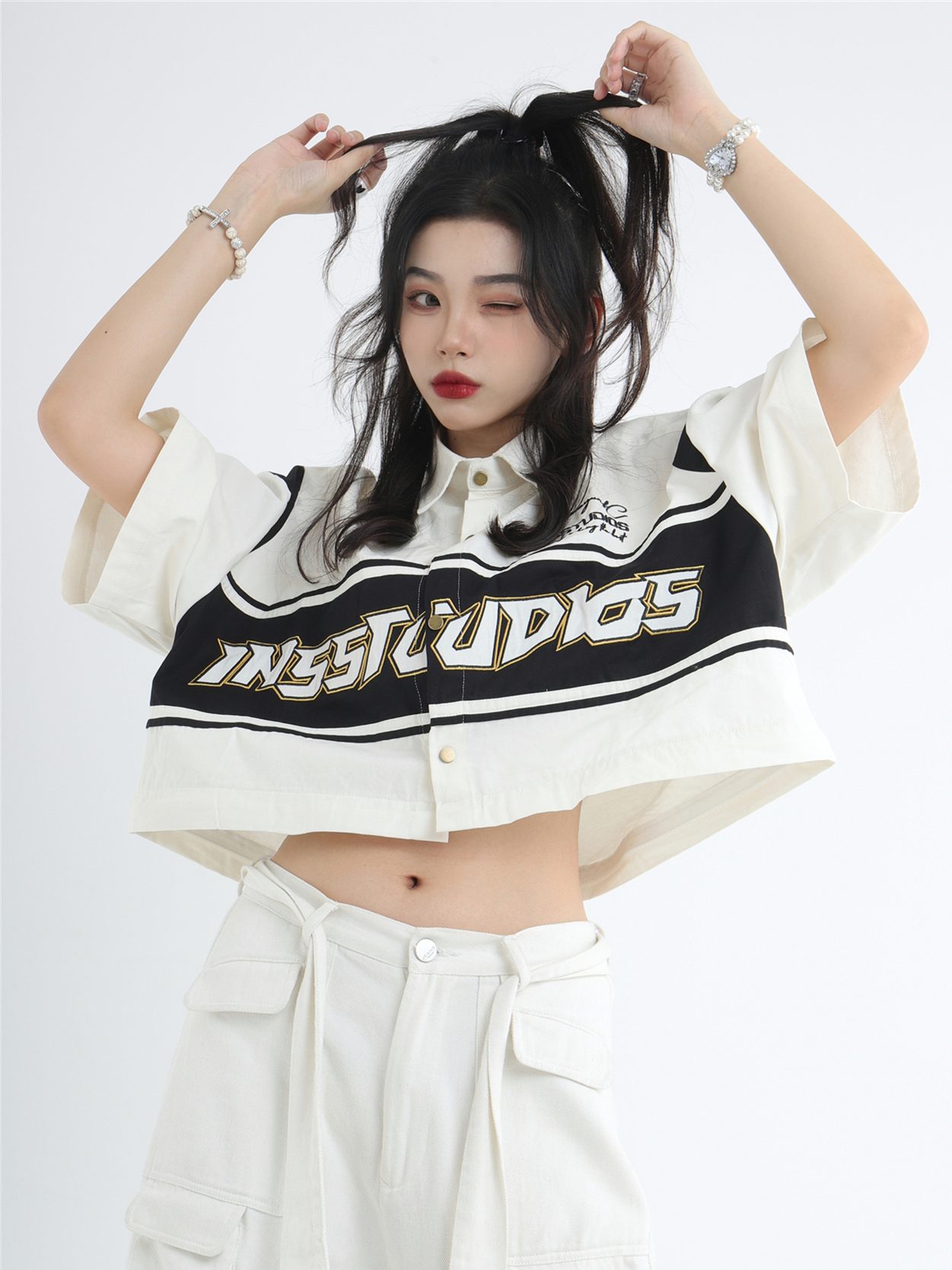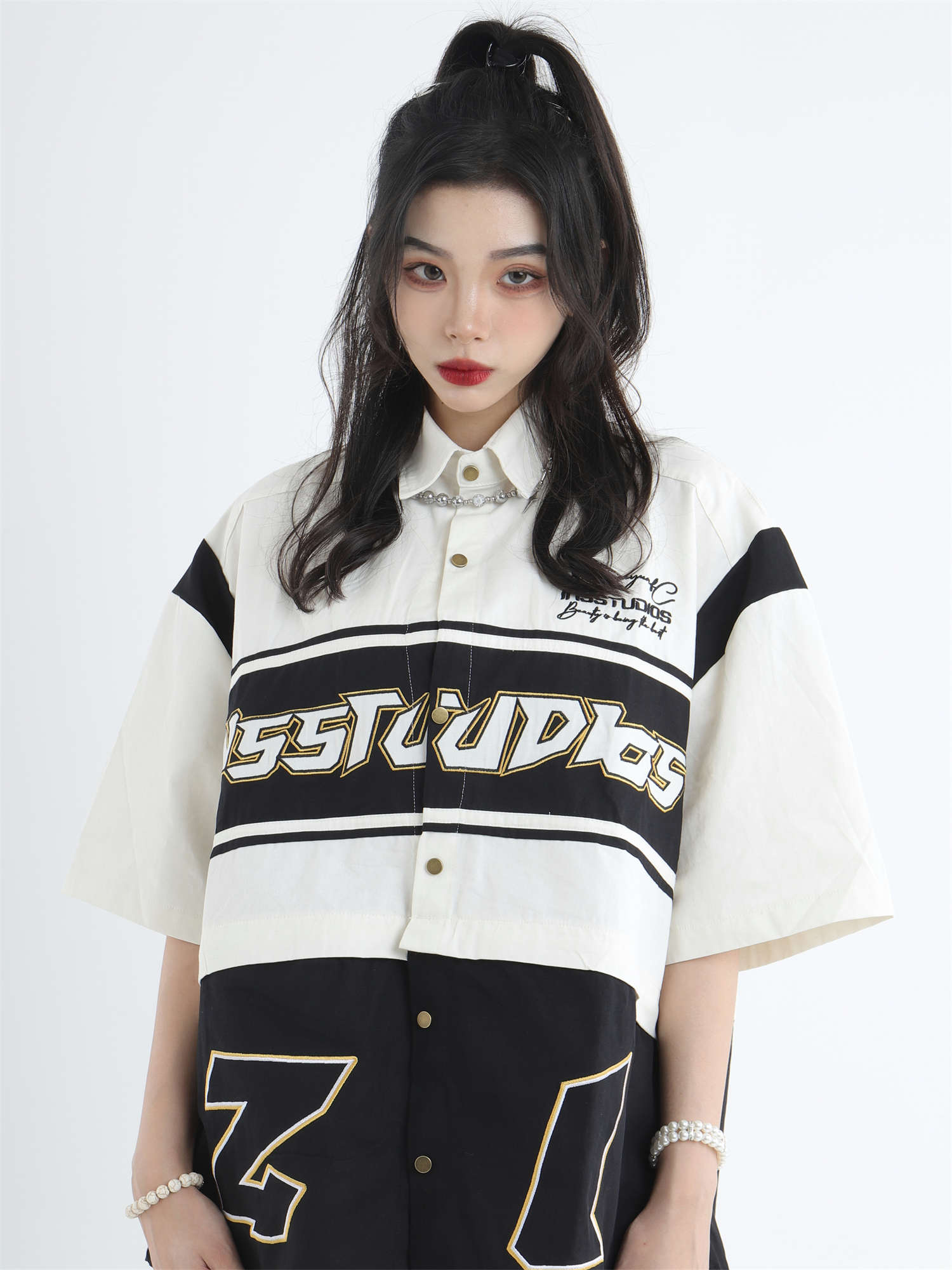 INSstudios 可拆卸兩穿機車襯衫自制國潮情侶美式復古短袖襯衫男