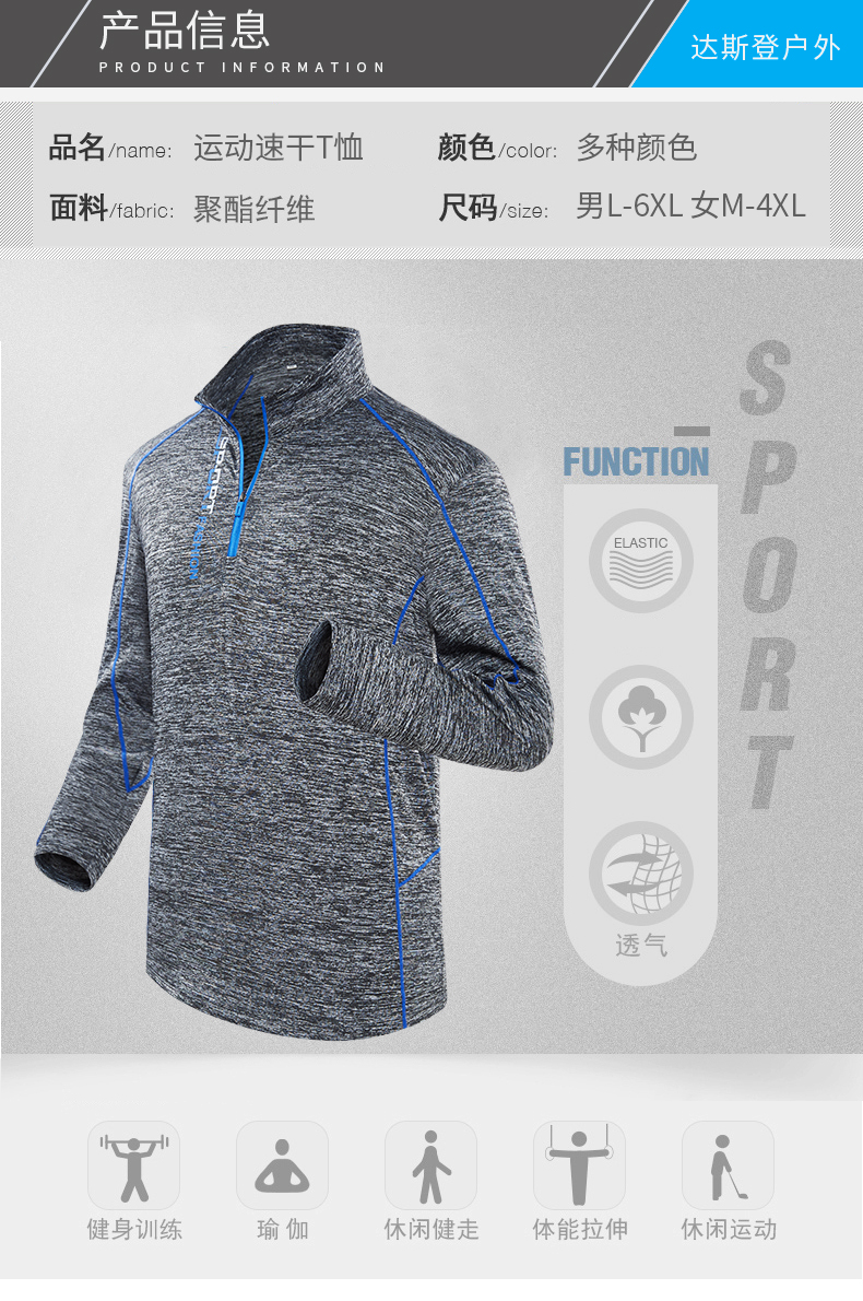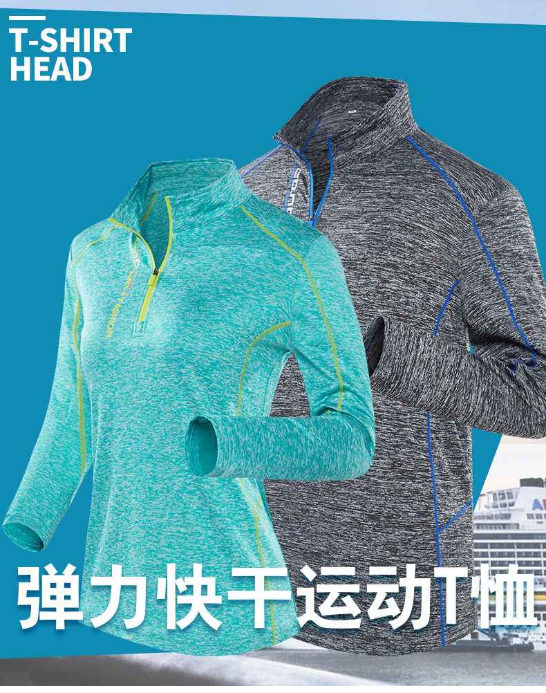 戶外跑步速乾衣男健身立領吸汗透氣秋冬季登山徒步運動女長袖T恤