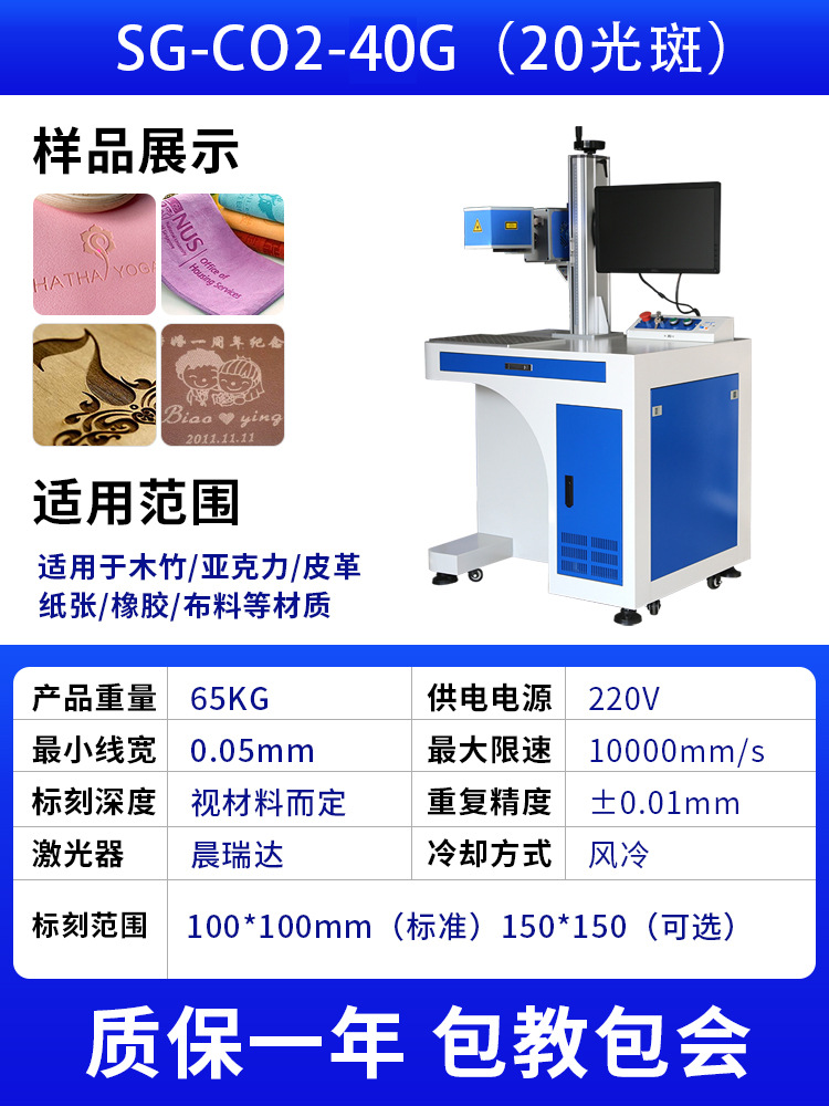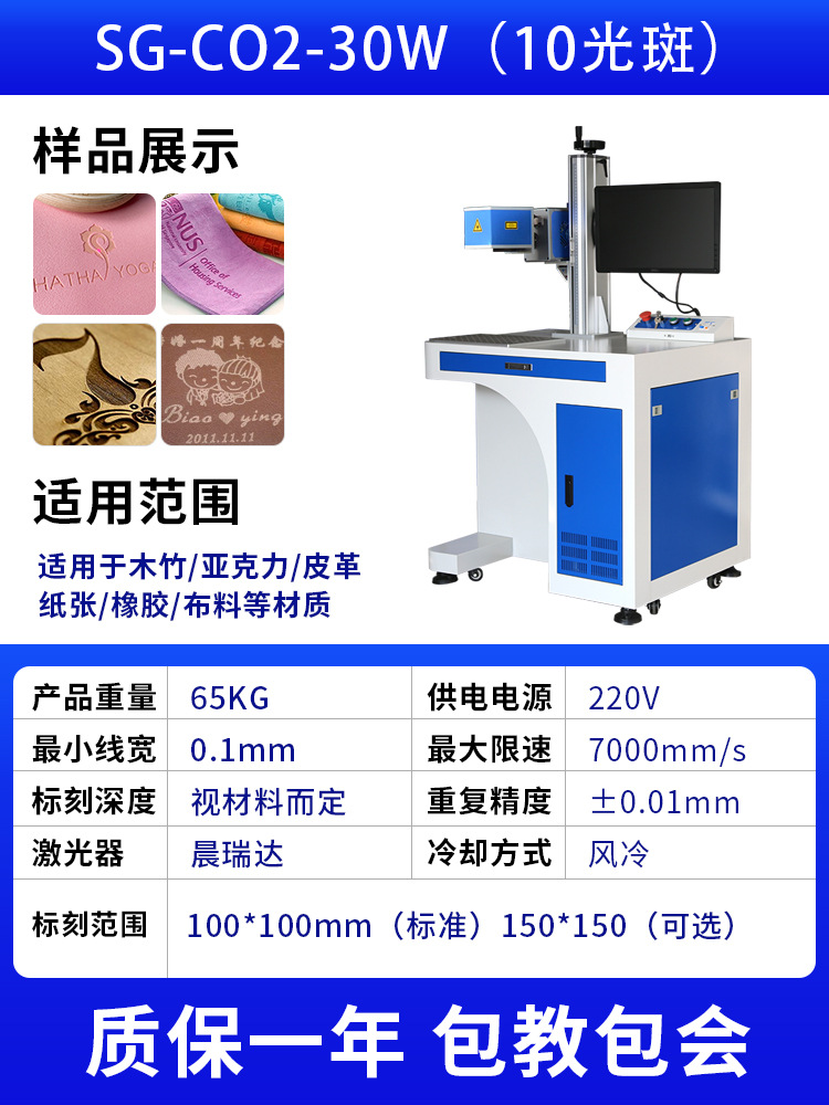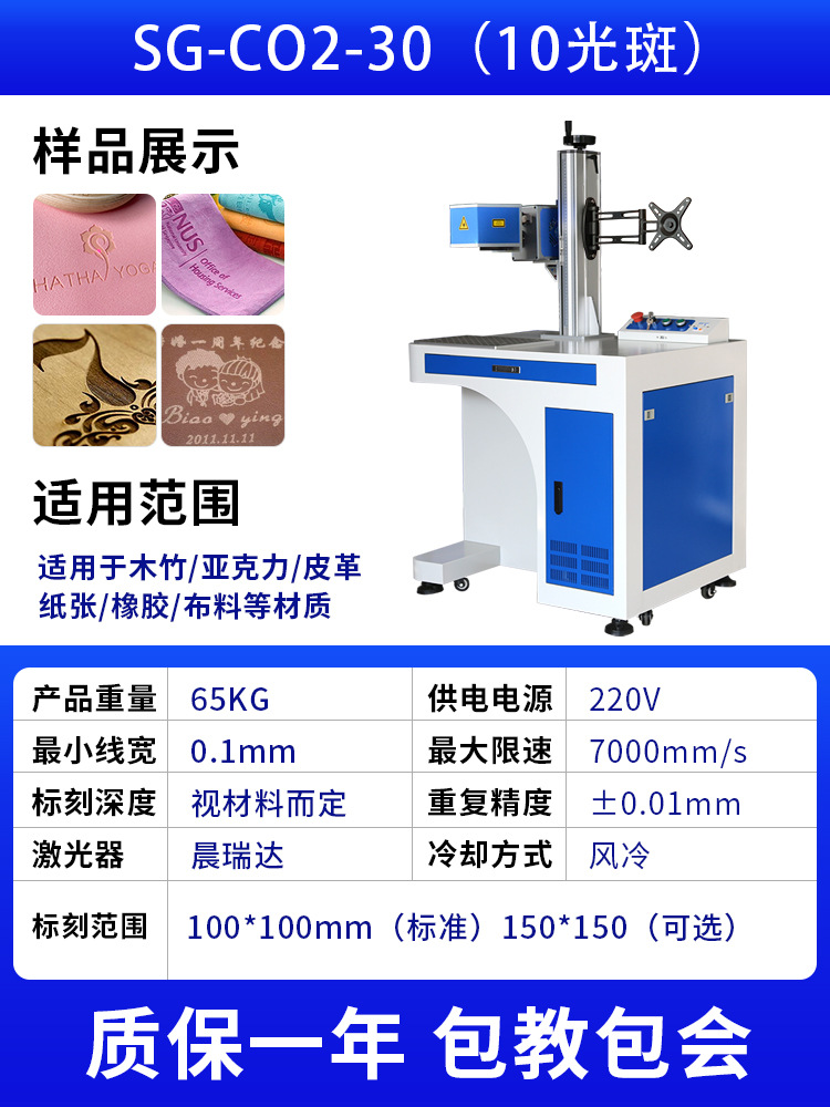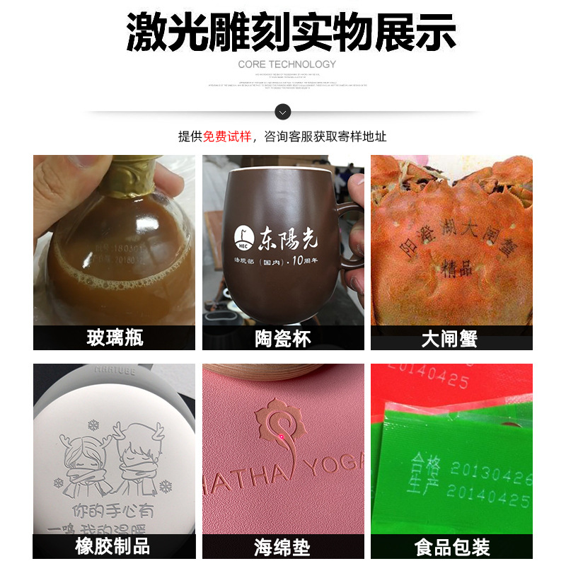 二氧化碳激光打标机木头亚克力铅笔刻字皮革打码玻璃陶瓷雕刻