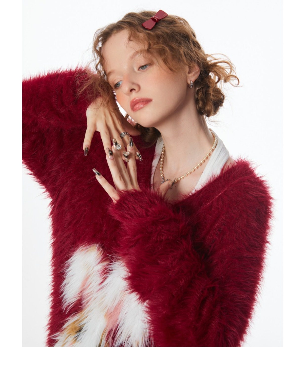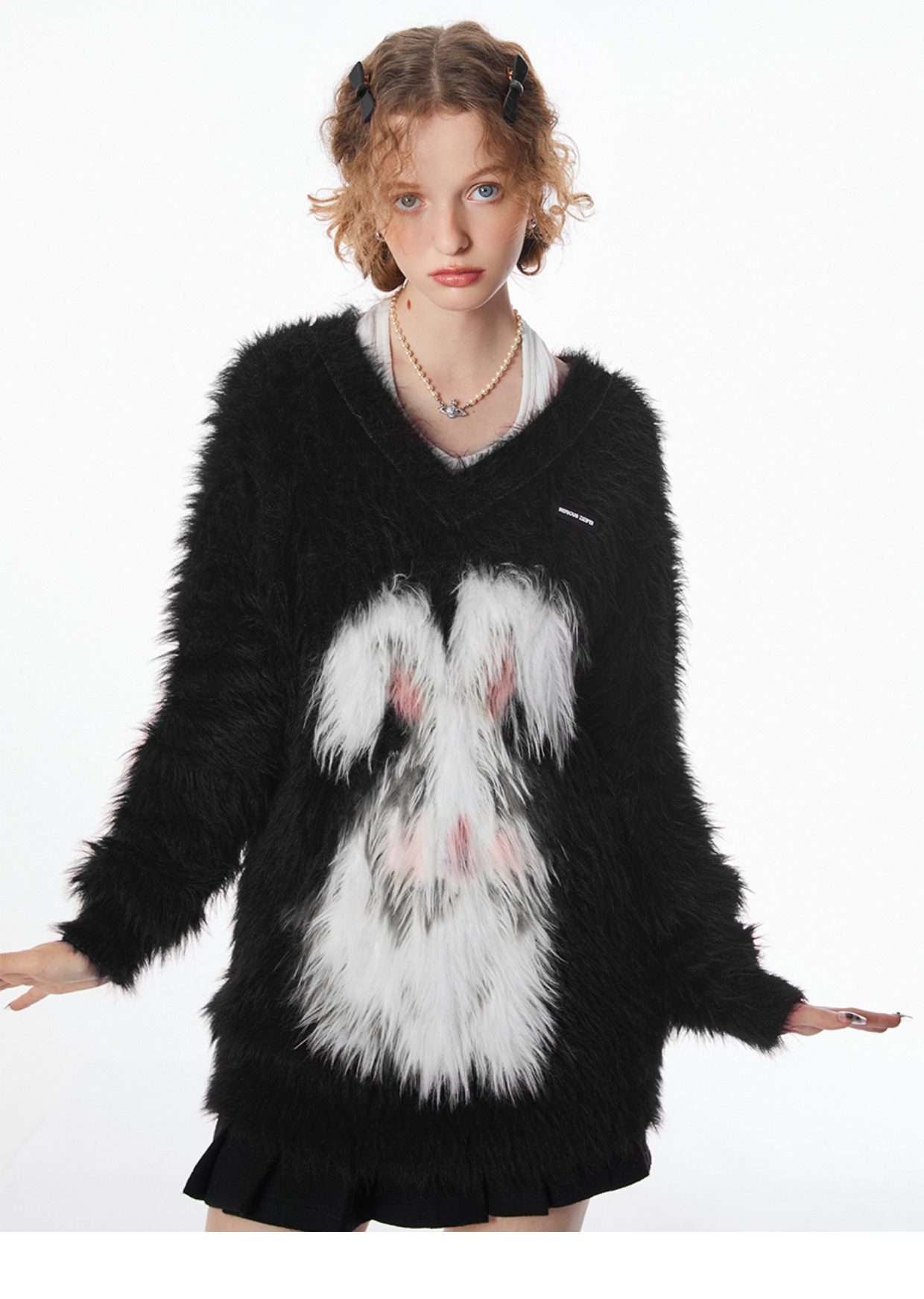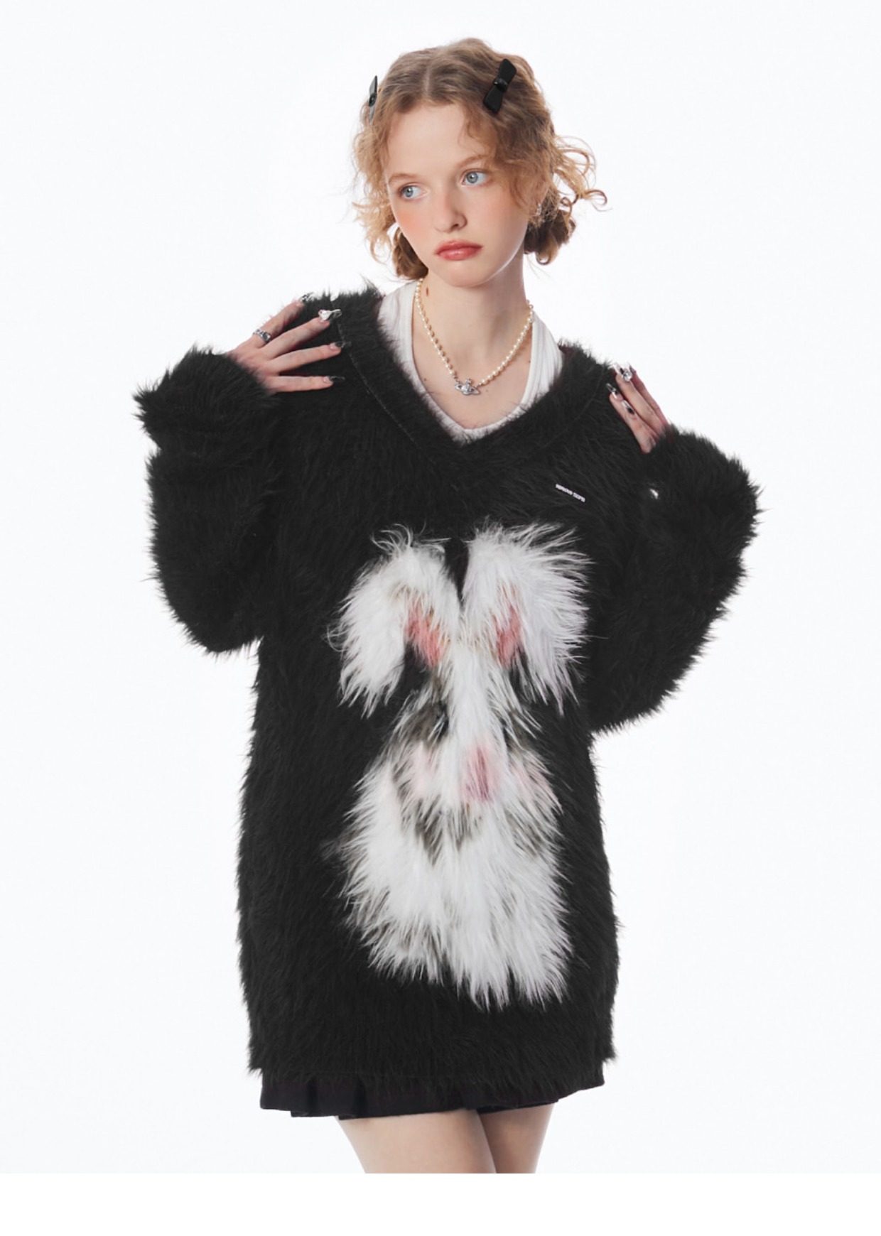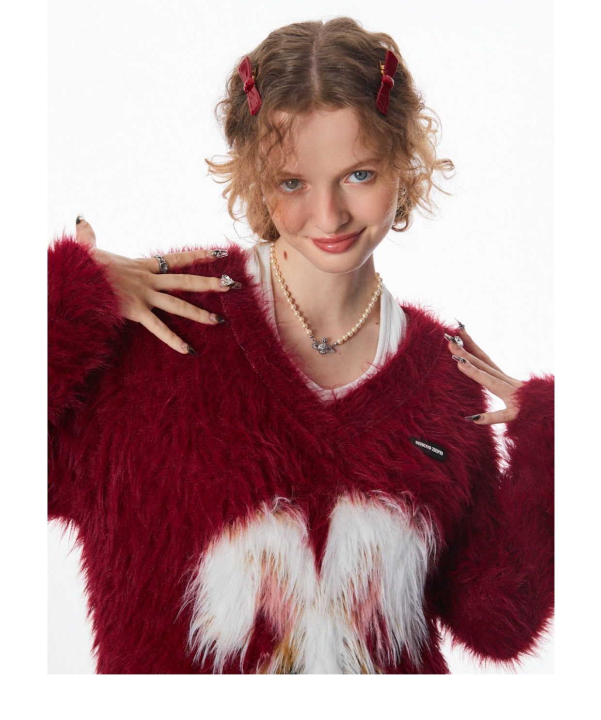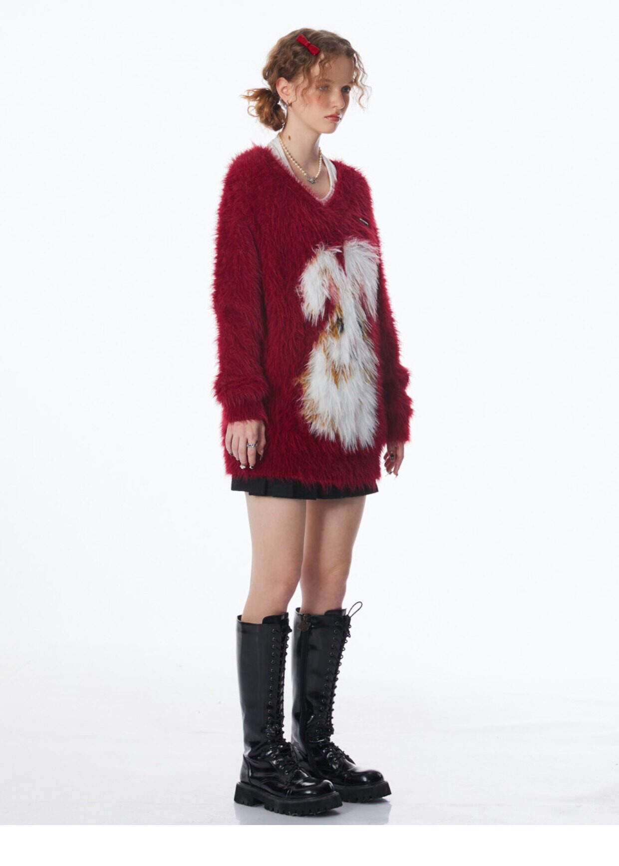 ziziFei秋冬季美式復古新年過年耶誕紅色高級感兔子V領毛毛衣女