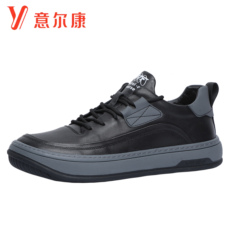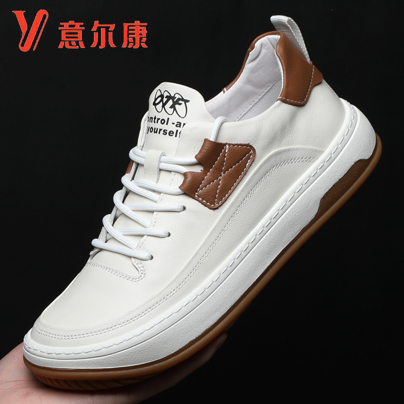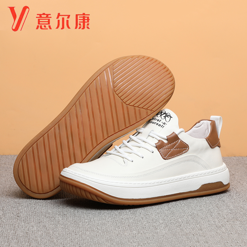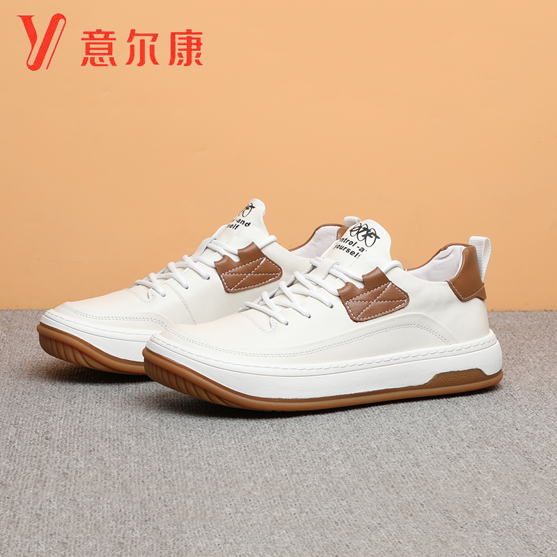 意爾康男鞋2023春季新款真皮小醜鞋男頭層牛皮休閒鞋真皮板鞋男