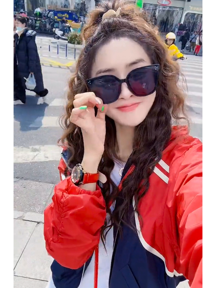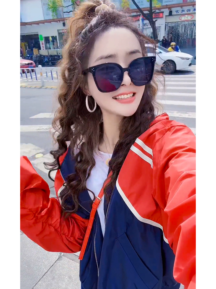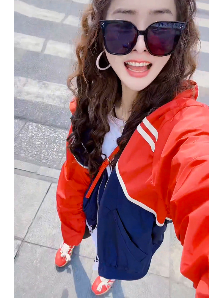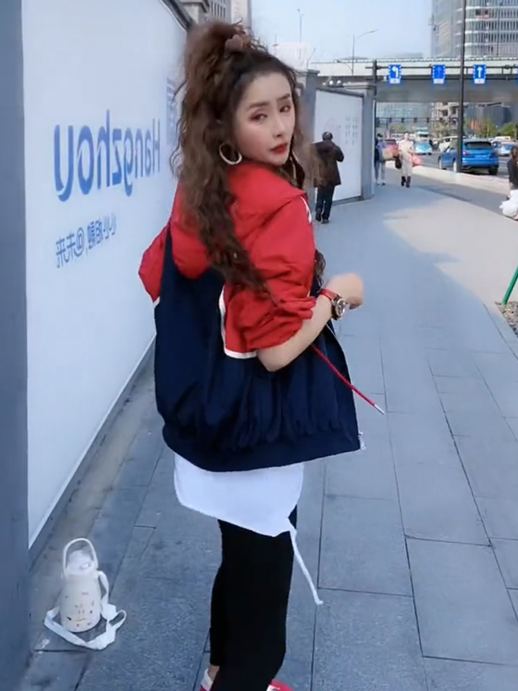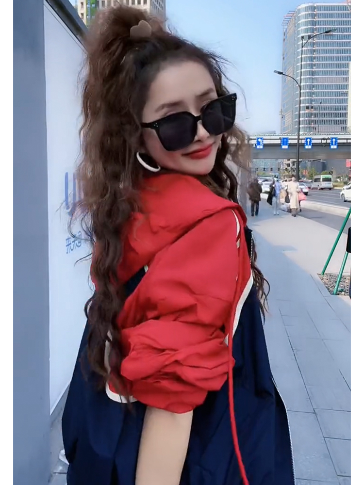 歐洲站2023春季新款撞色拼接連帽外套女百搭寬鬆韓版長袖開衫上衣