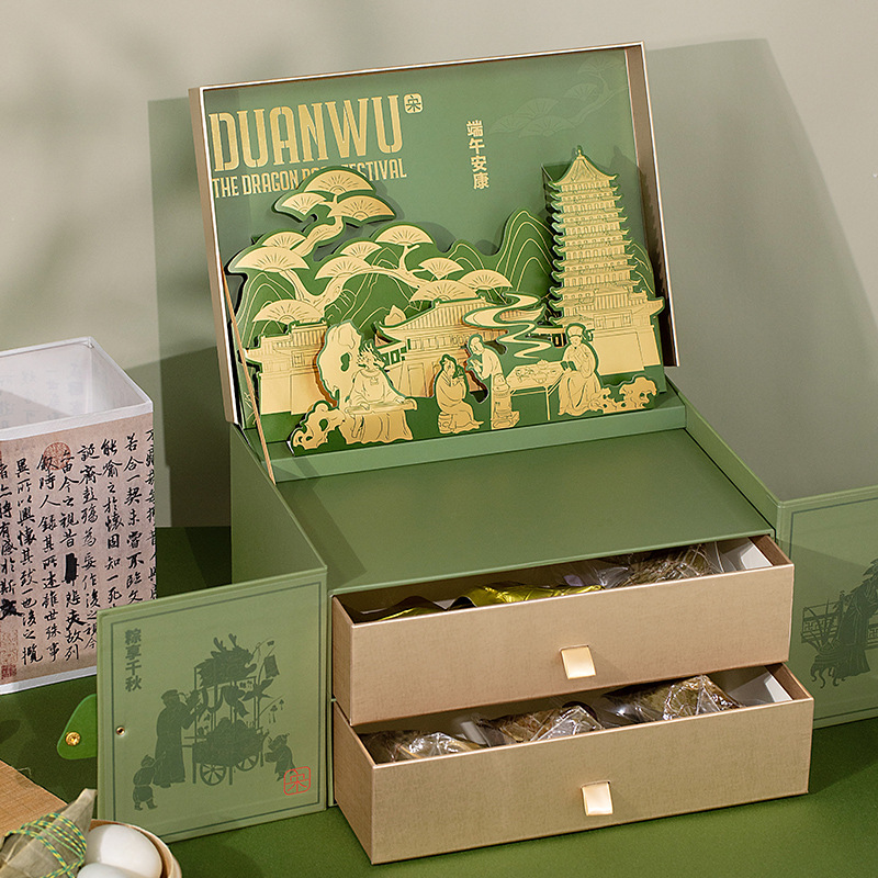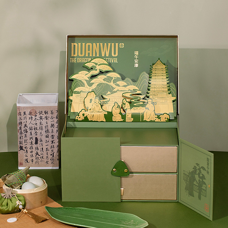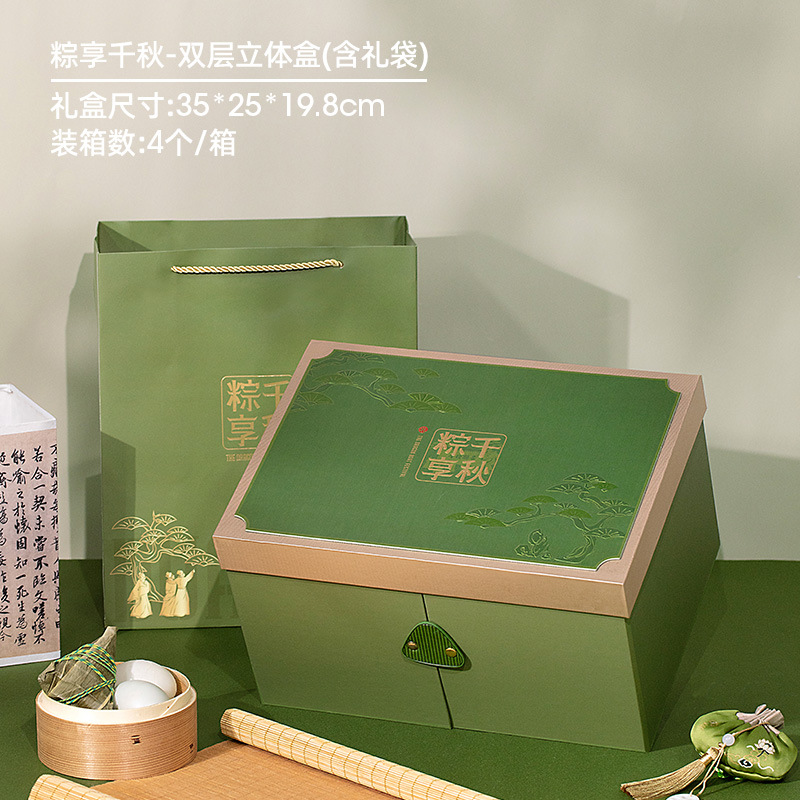 盒型 3D立体图案双层粽子礼盒(含礼袋)