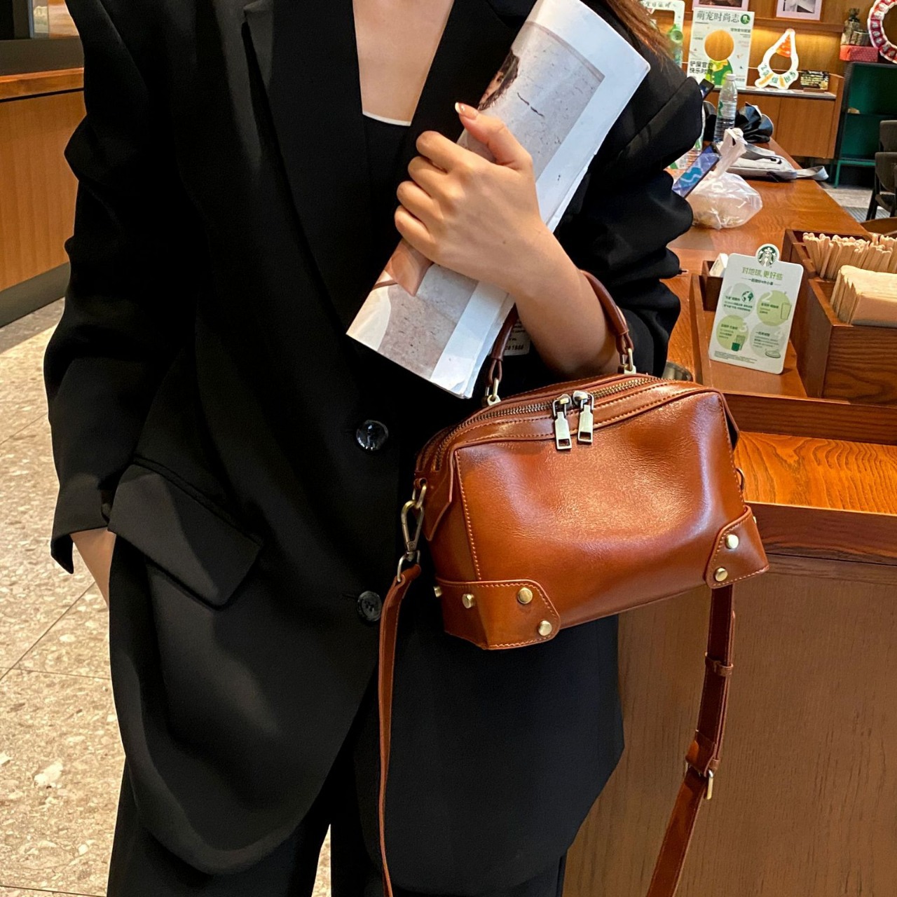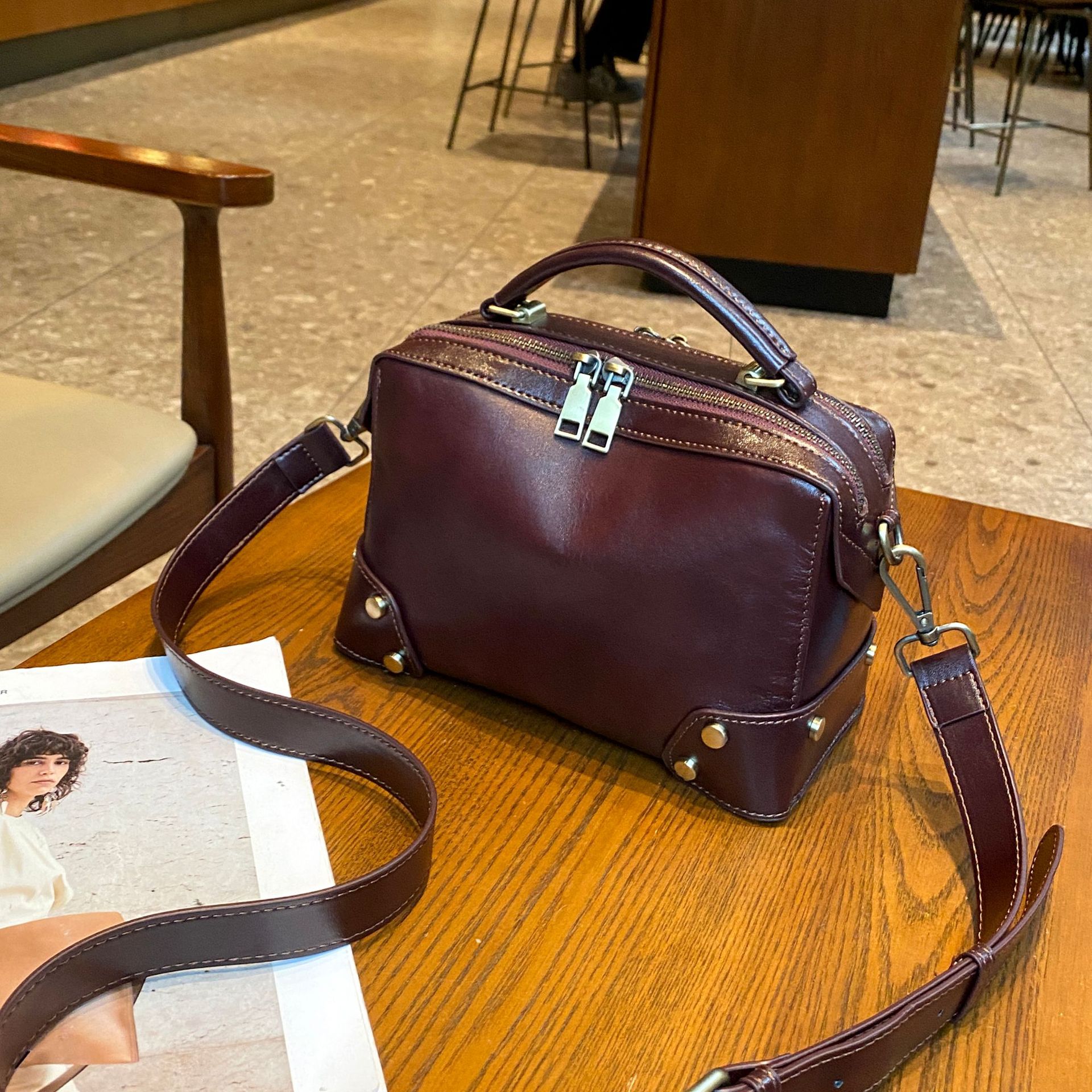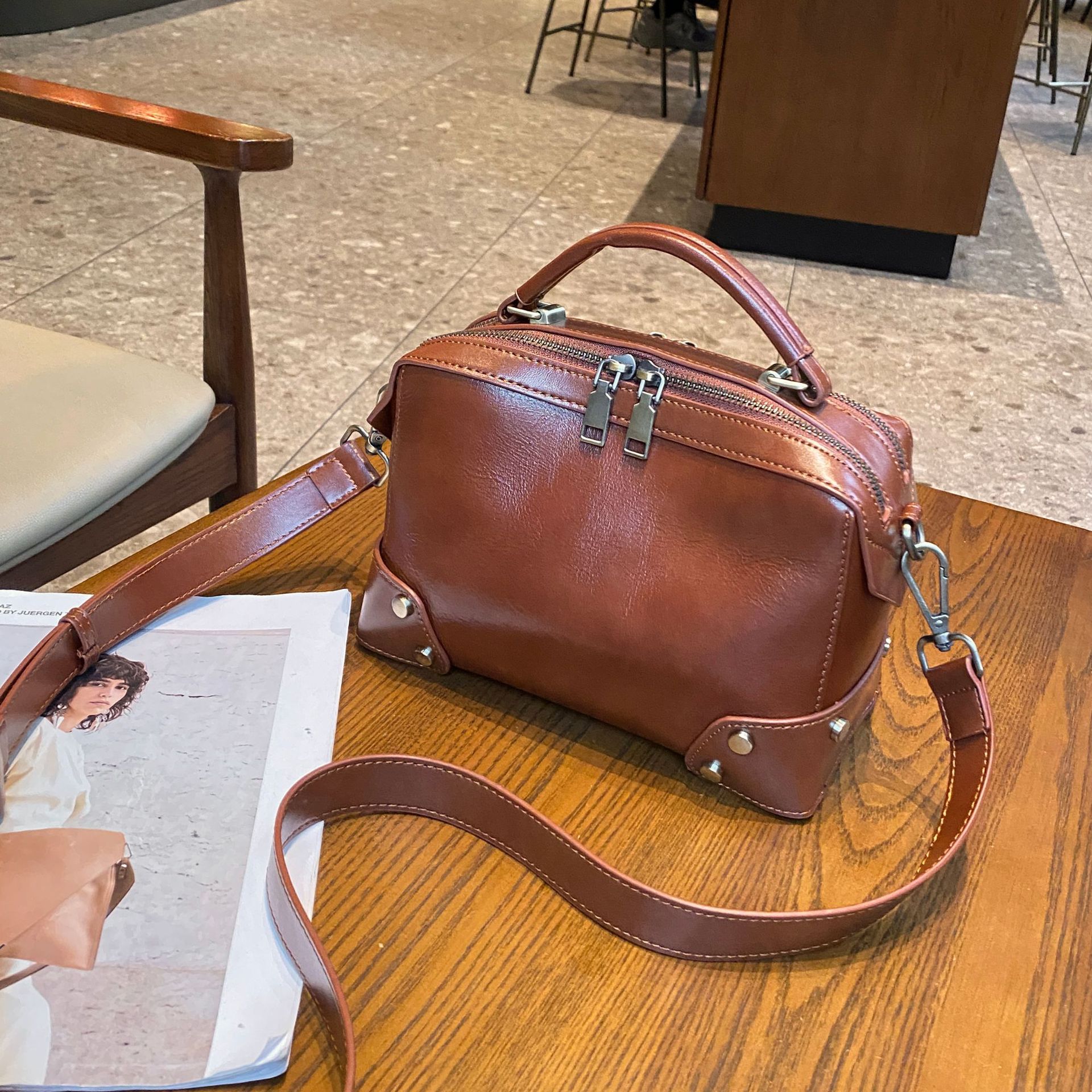 头层牛皮斜挎包时尚百搭手提包包女广州植糅皮女包批发复古女包包