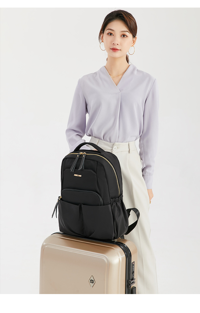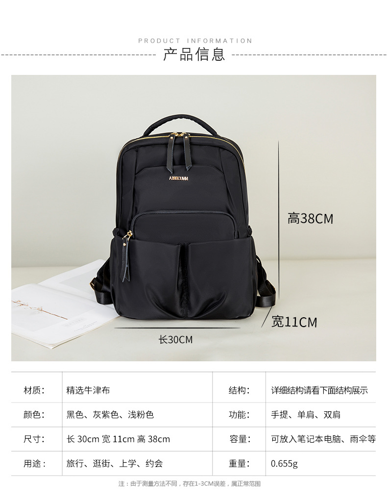 背包女14寸电脑双肩包商务通勤简约牛津布女士旅行大容量学生书包