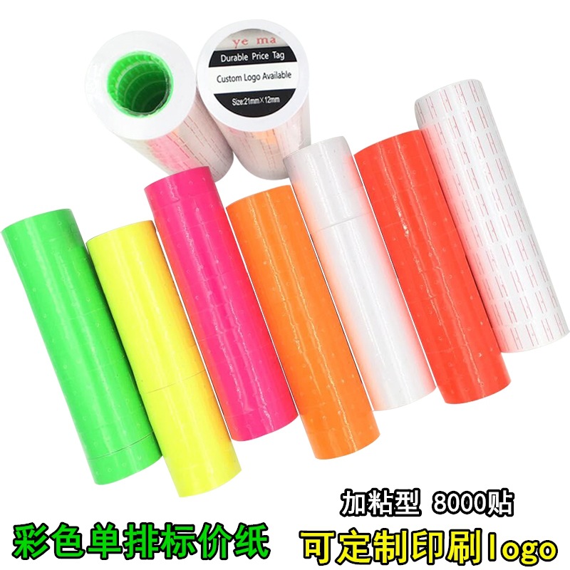 YEMA单排彩色标价纸商品价格标签纸加粘型打码纸可印刷logo打价纸