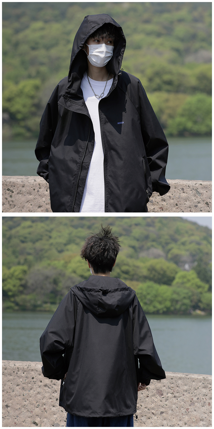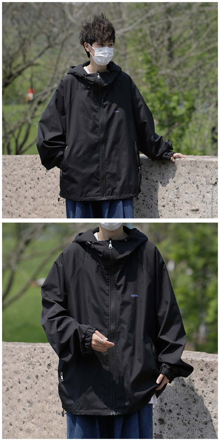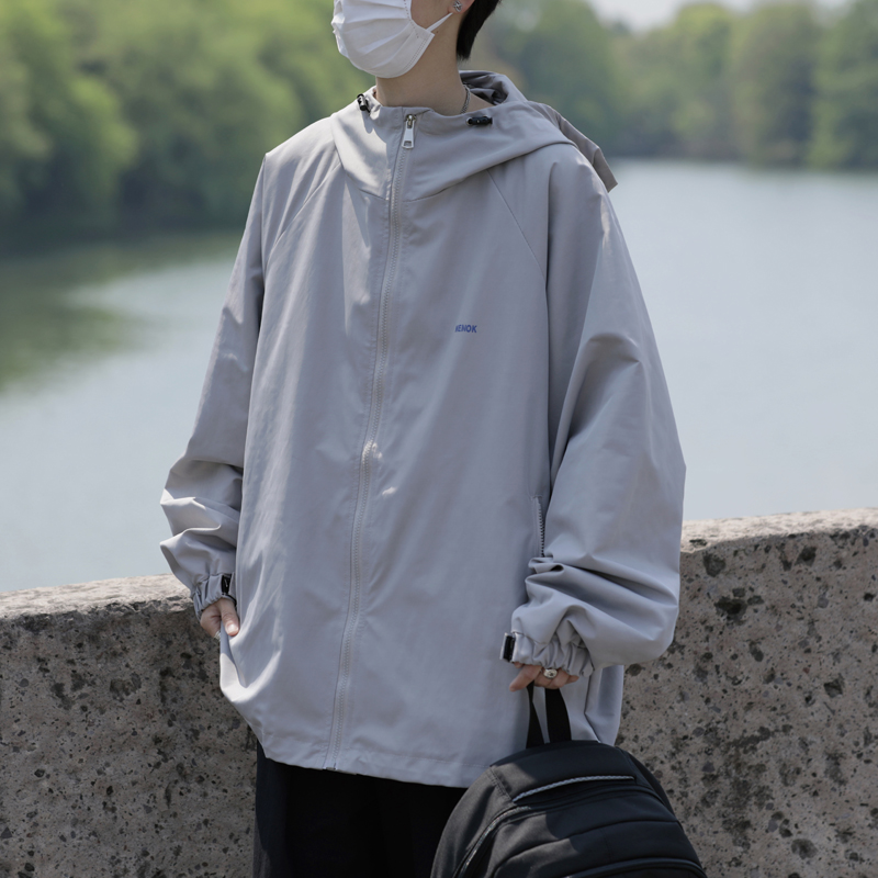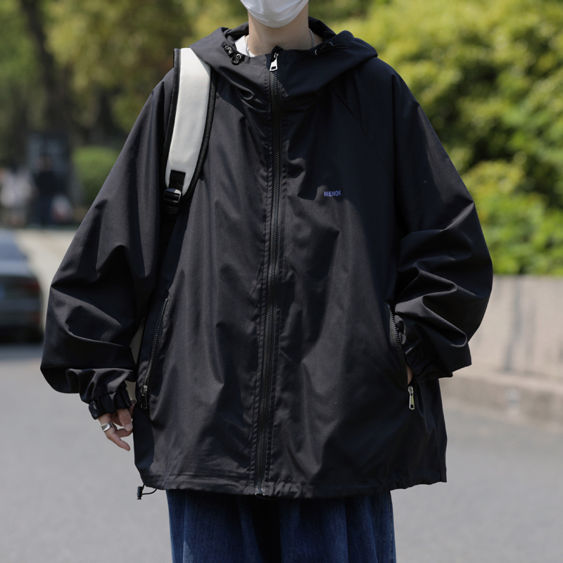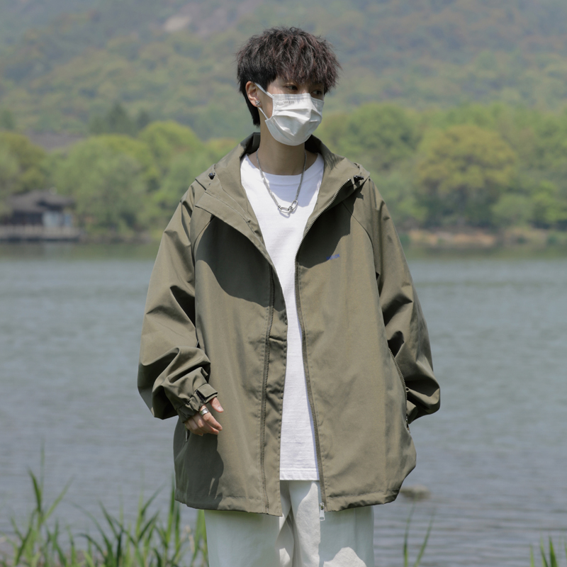 美式戶外衝鋒衣外套夏季寬鬆連帽防曬衣男潮牌ins百搭薄款皮膚衣