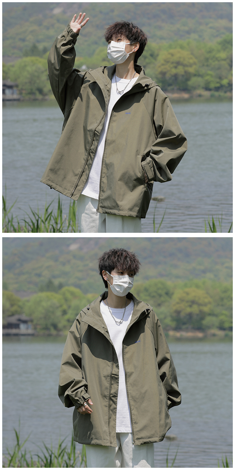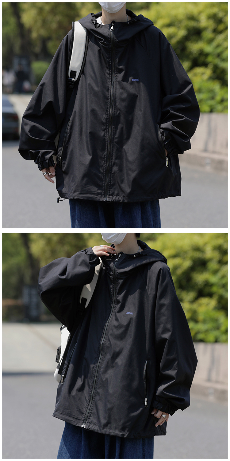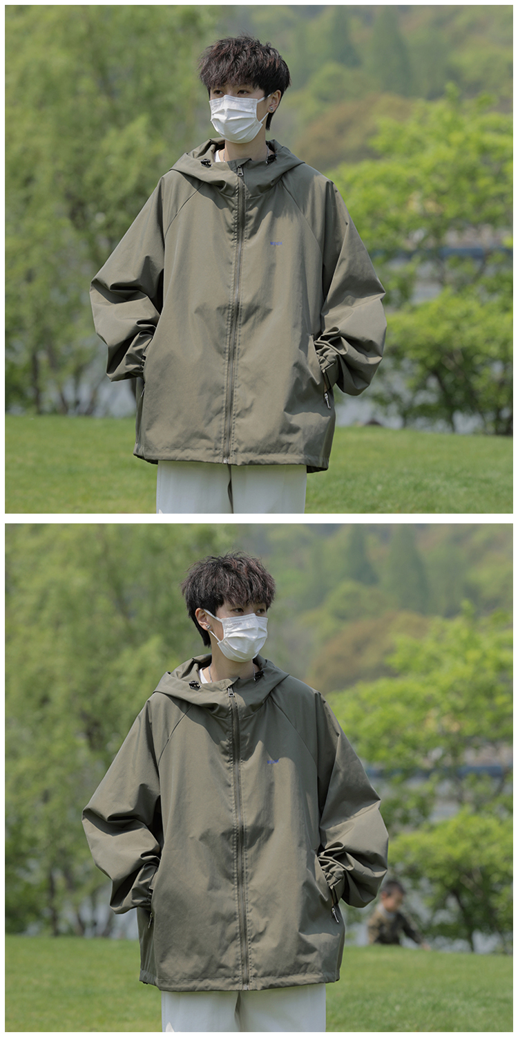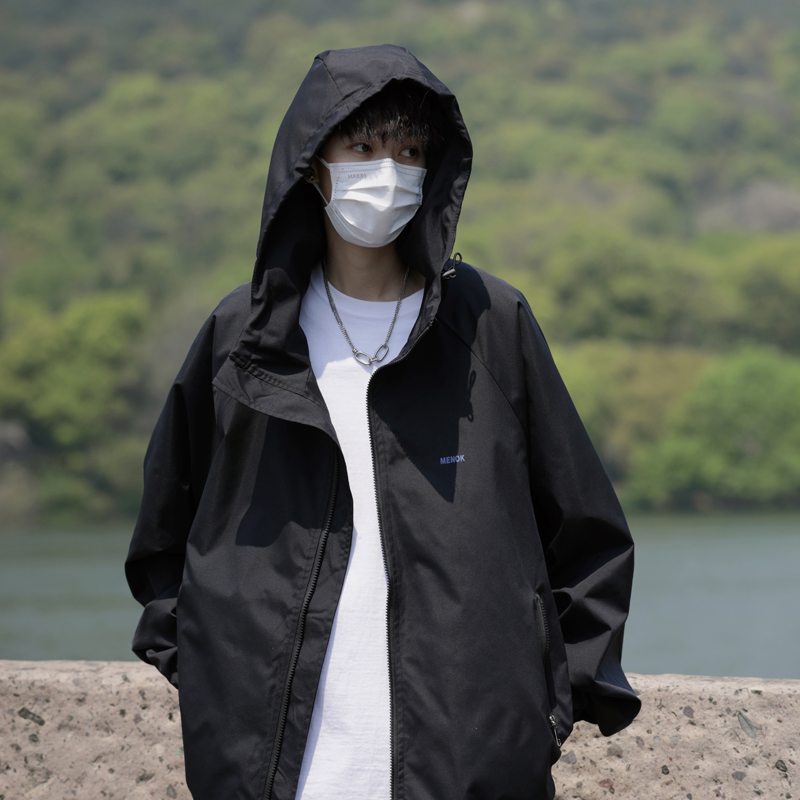 美式戶外衝鋒衣外套夏季寬鬆連帽防曬衣男潮牌ins百搭薄款皮膚衣