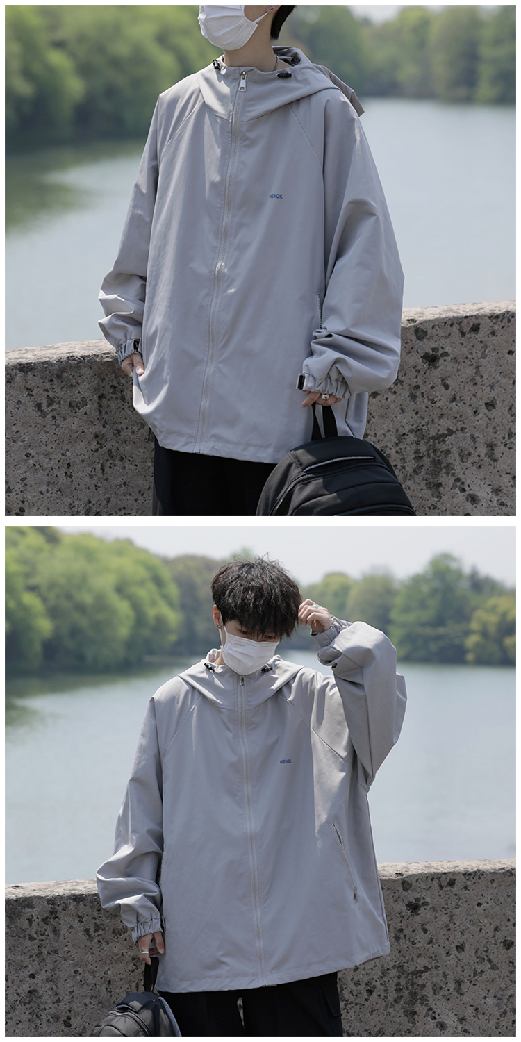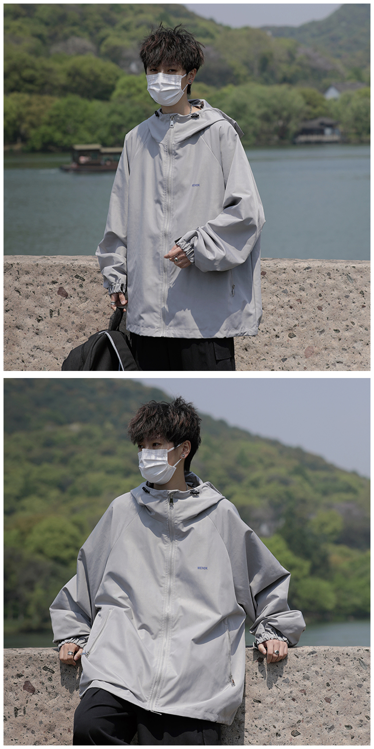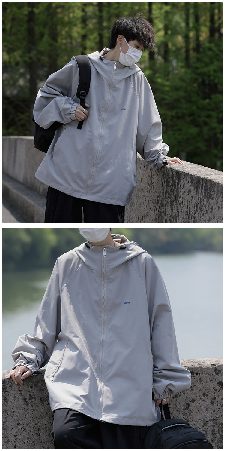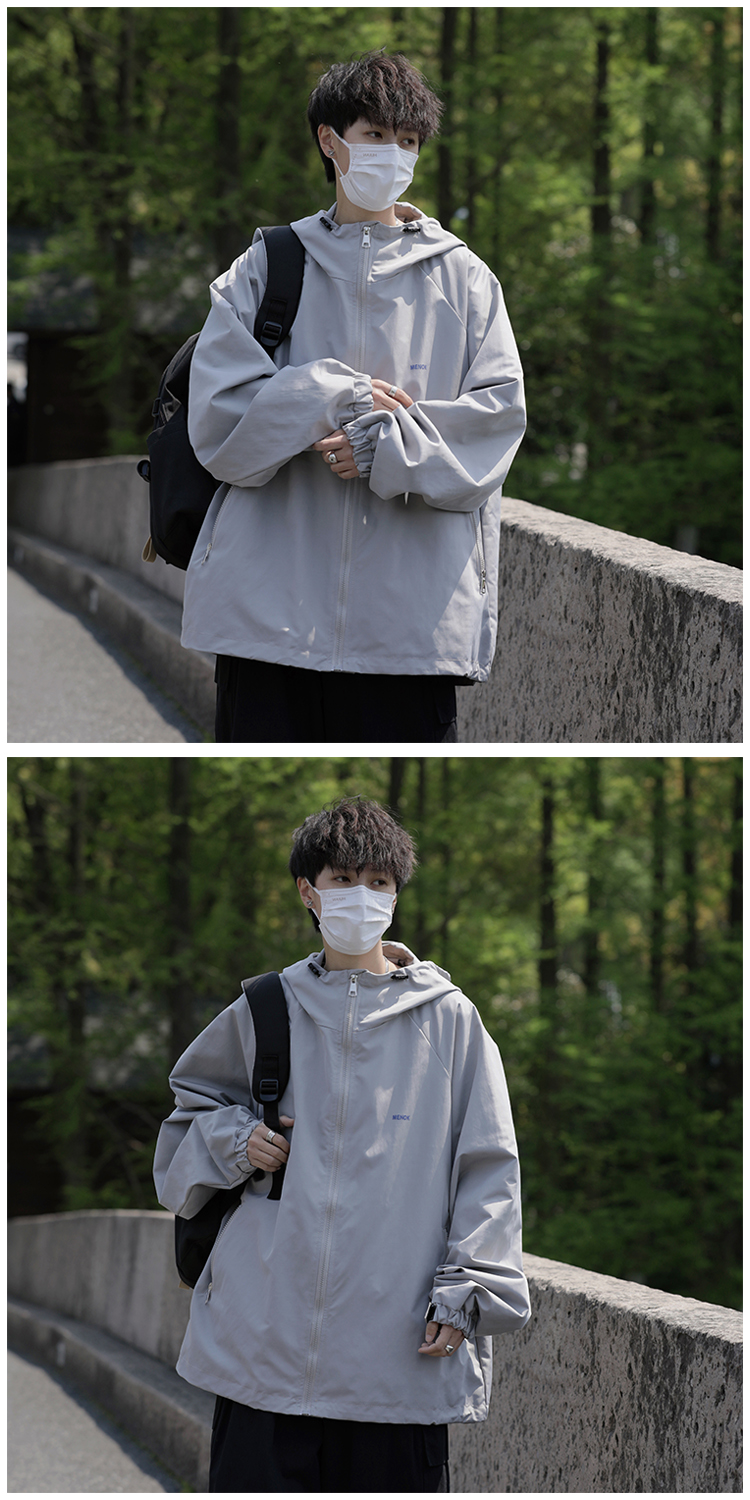 美式戶外衝鋒衣外套夏季寬鬆連帽防曬衣男潮牌ins百搭薄款皮膚衣