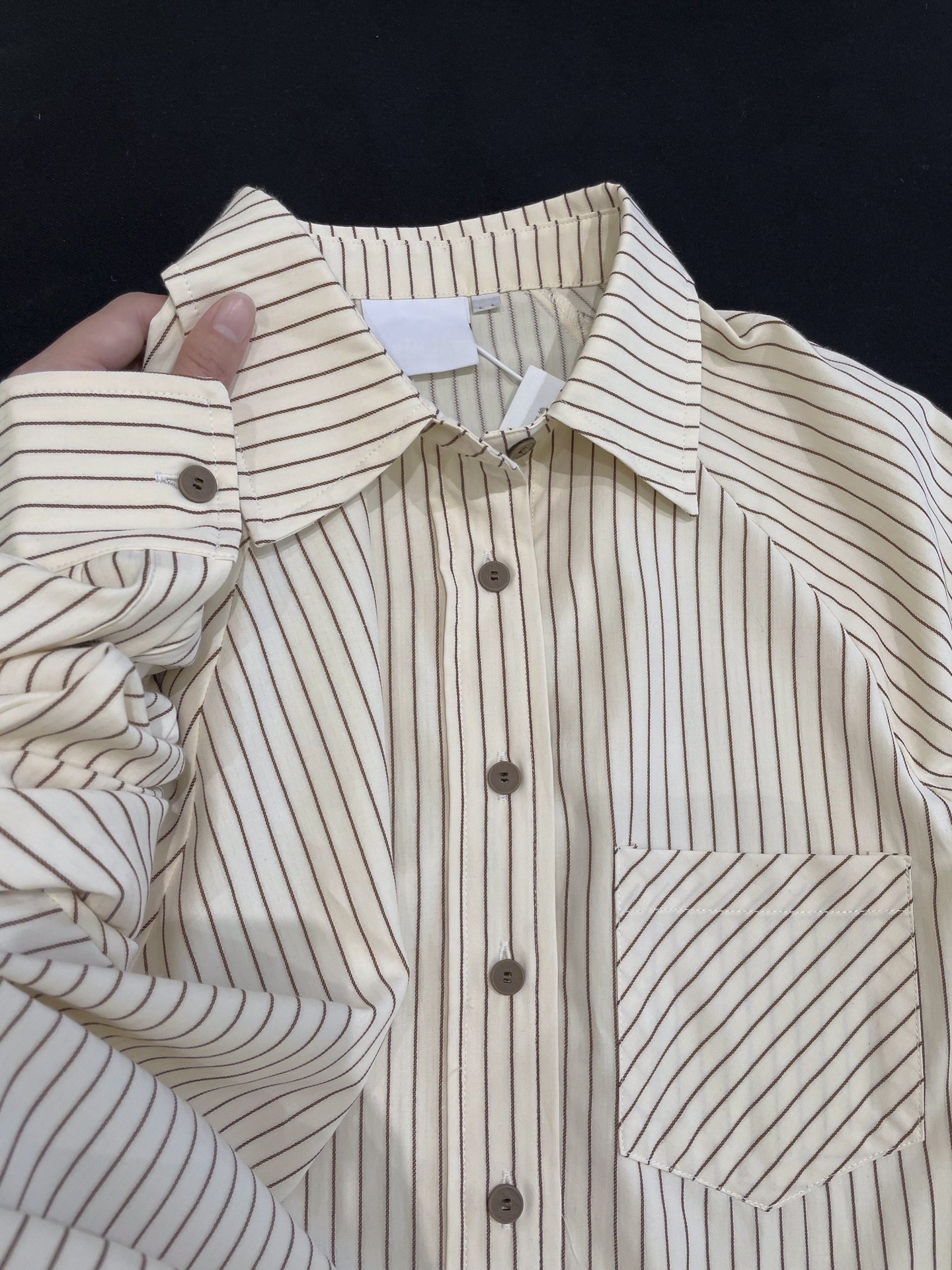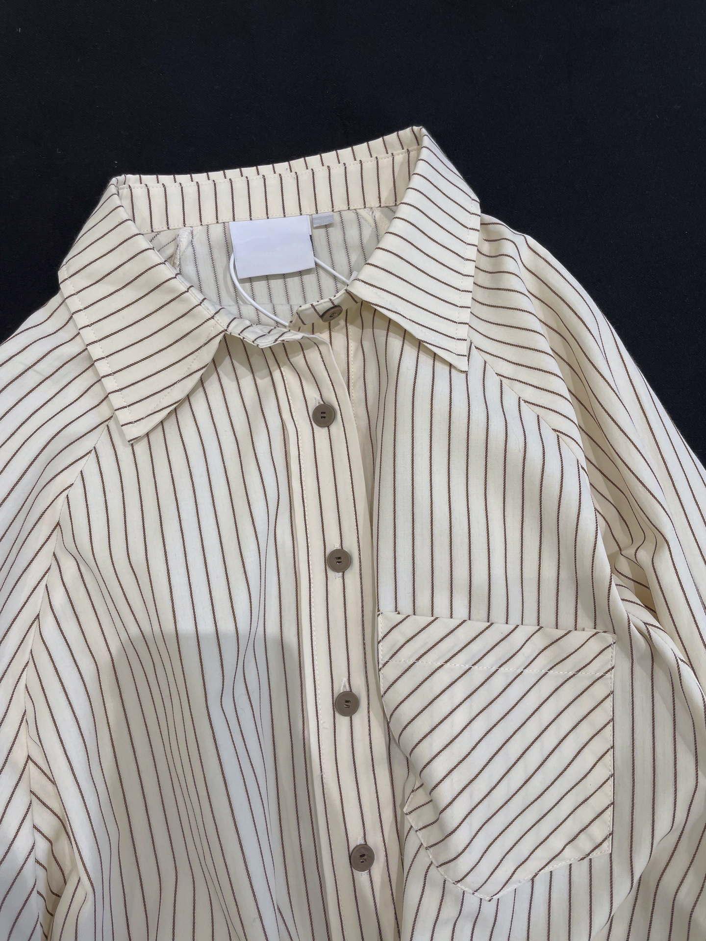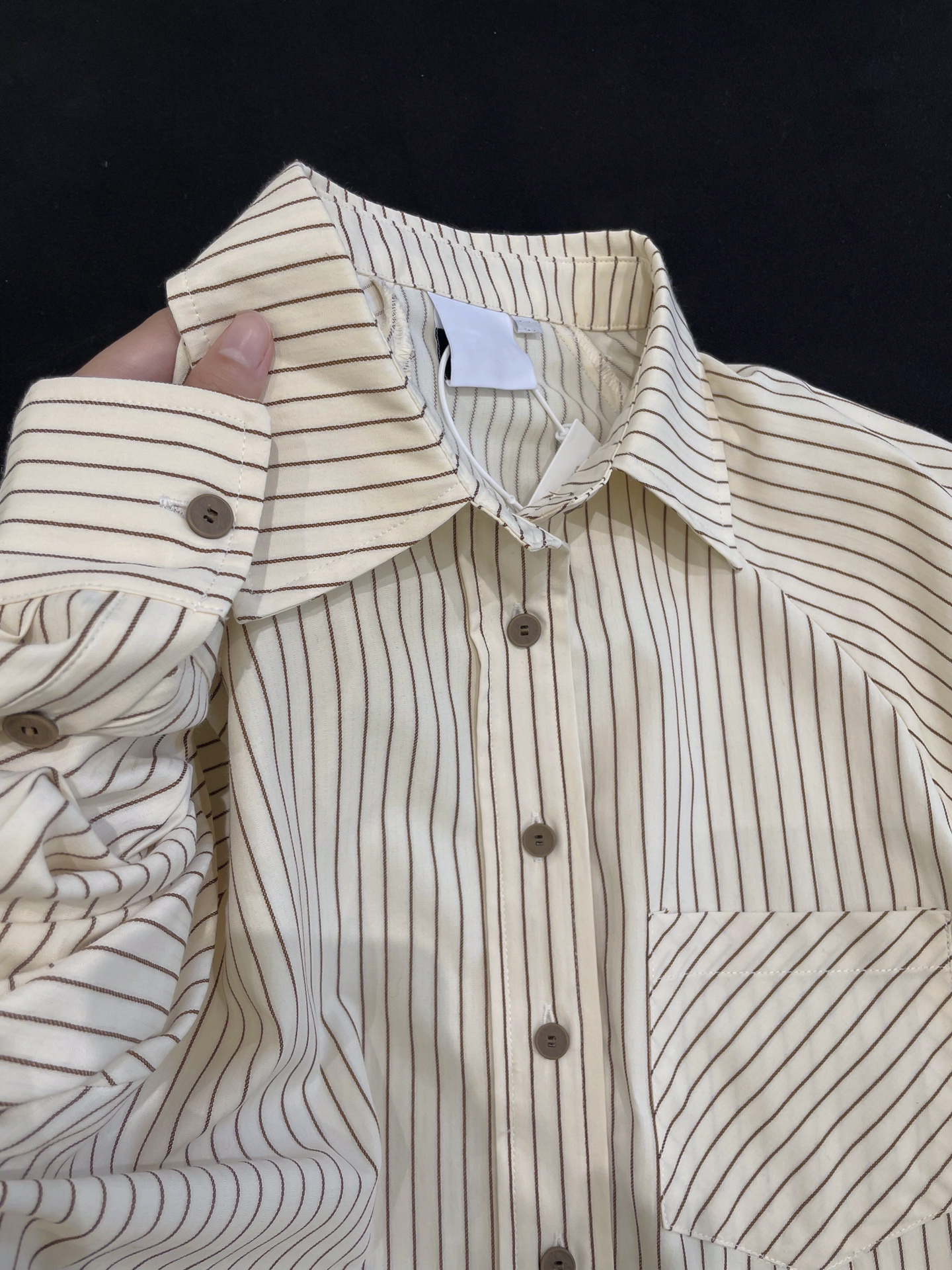 出乎意料的好穿!法式條紋長袖襯衫女高級感寬鬆小眾百搭襯衣外套