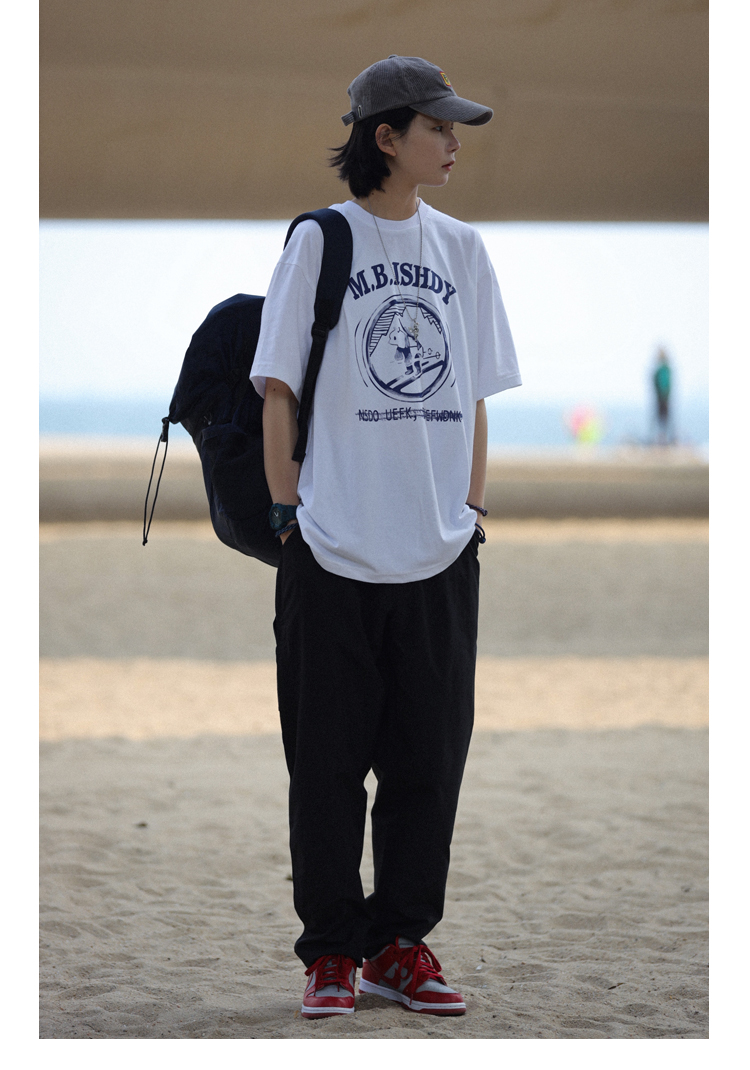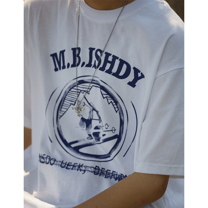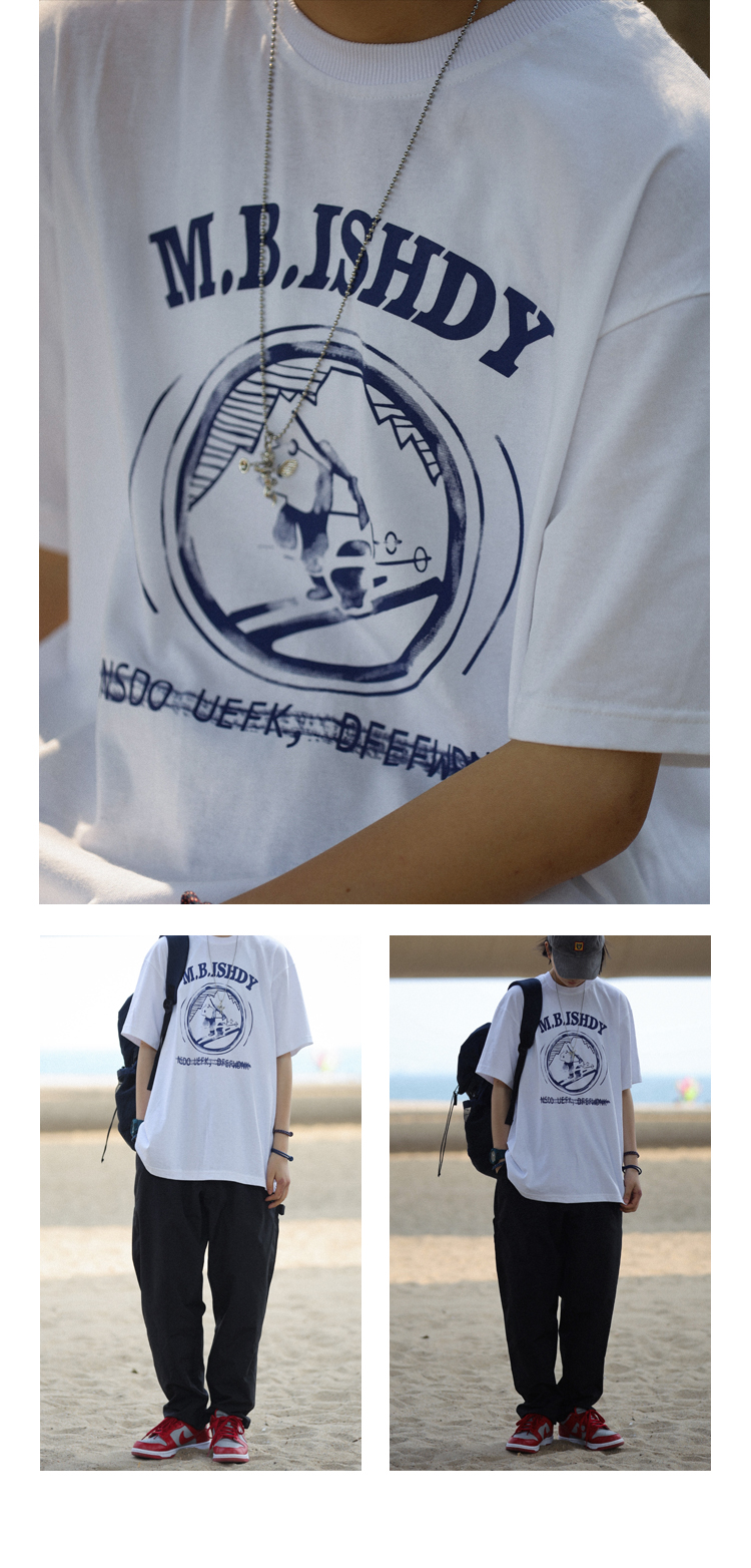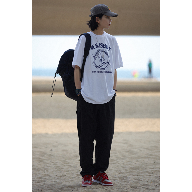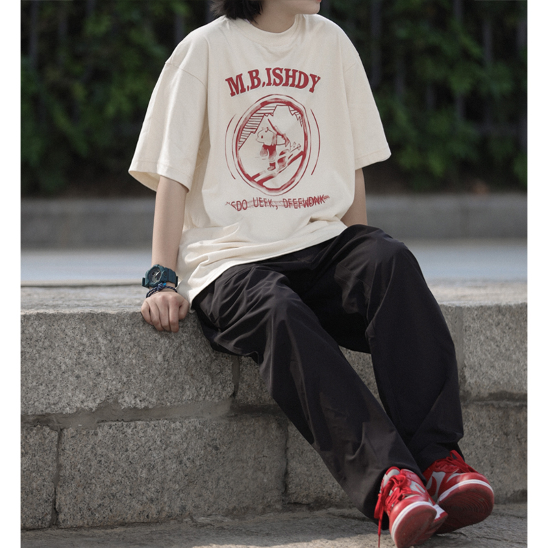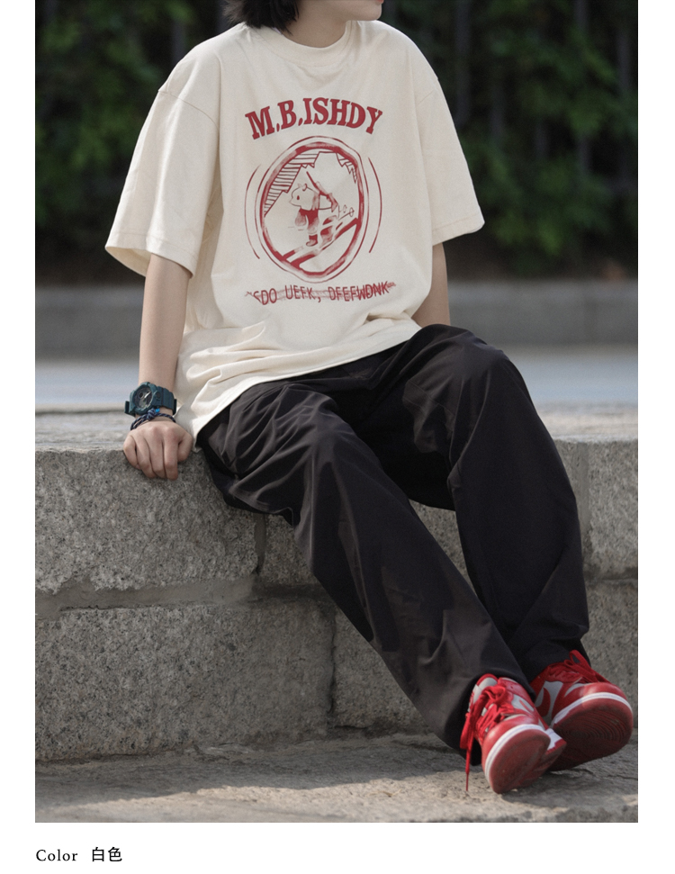 Nobodyknows日系純棉復古趣味卡通插畫舒適寬鬆百搭情侶潮短袖T恤
