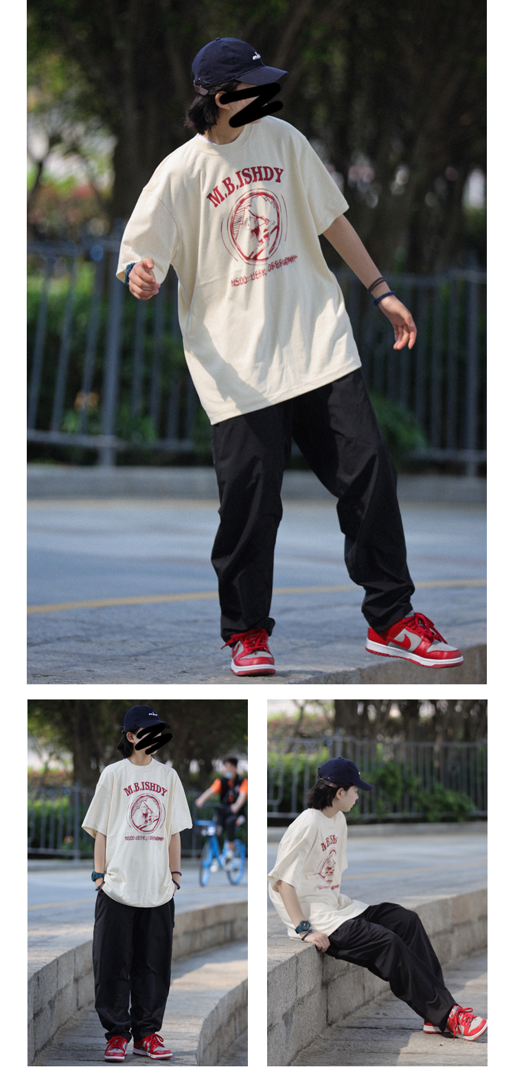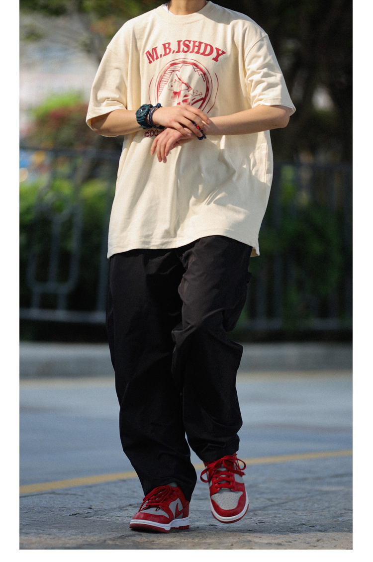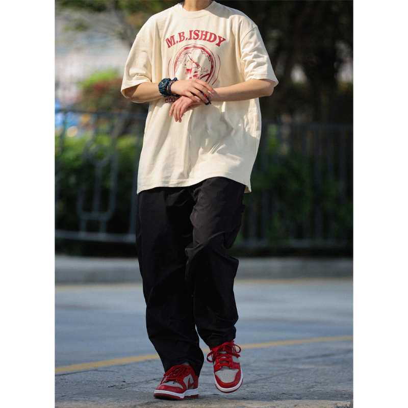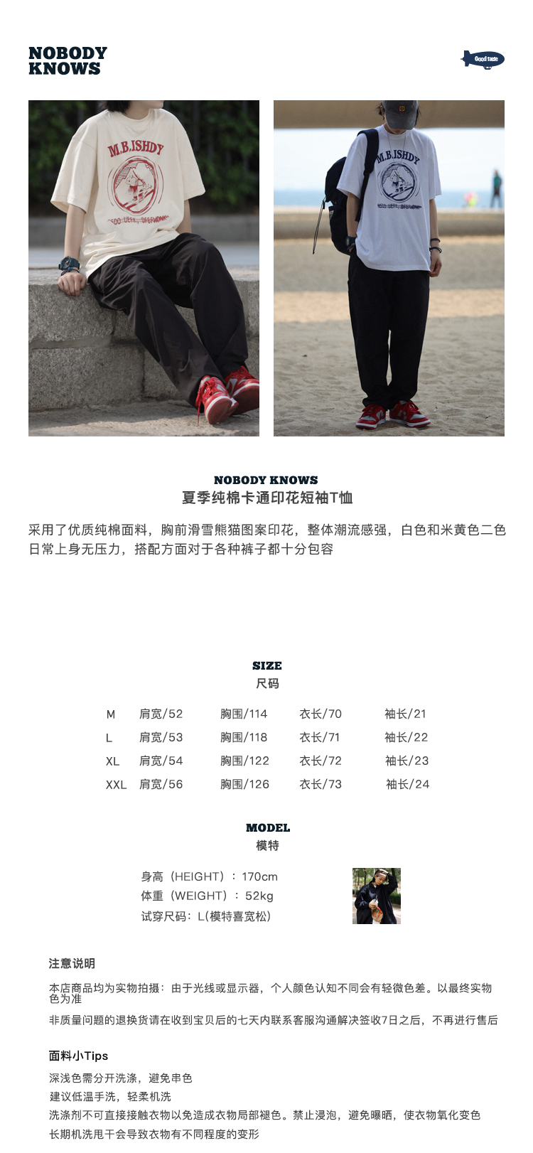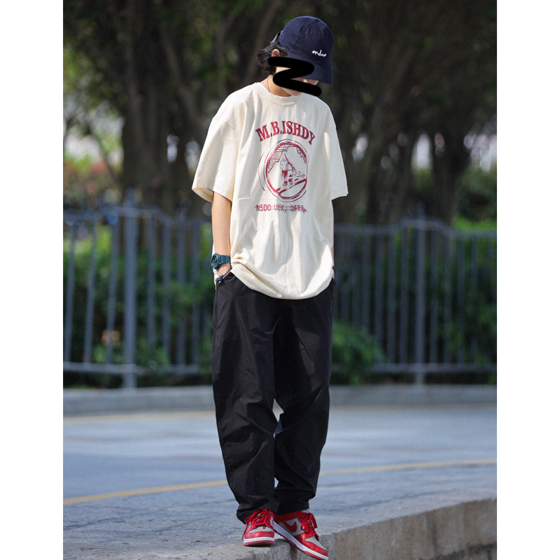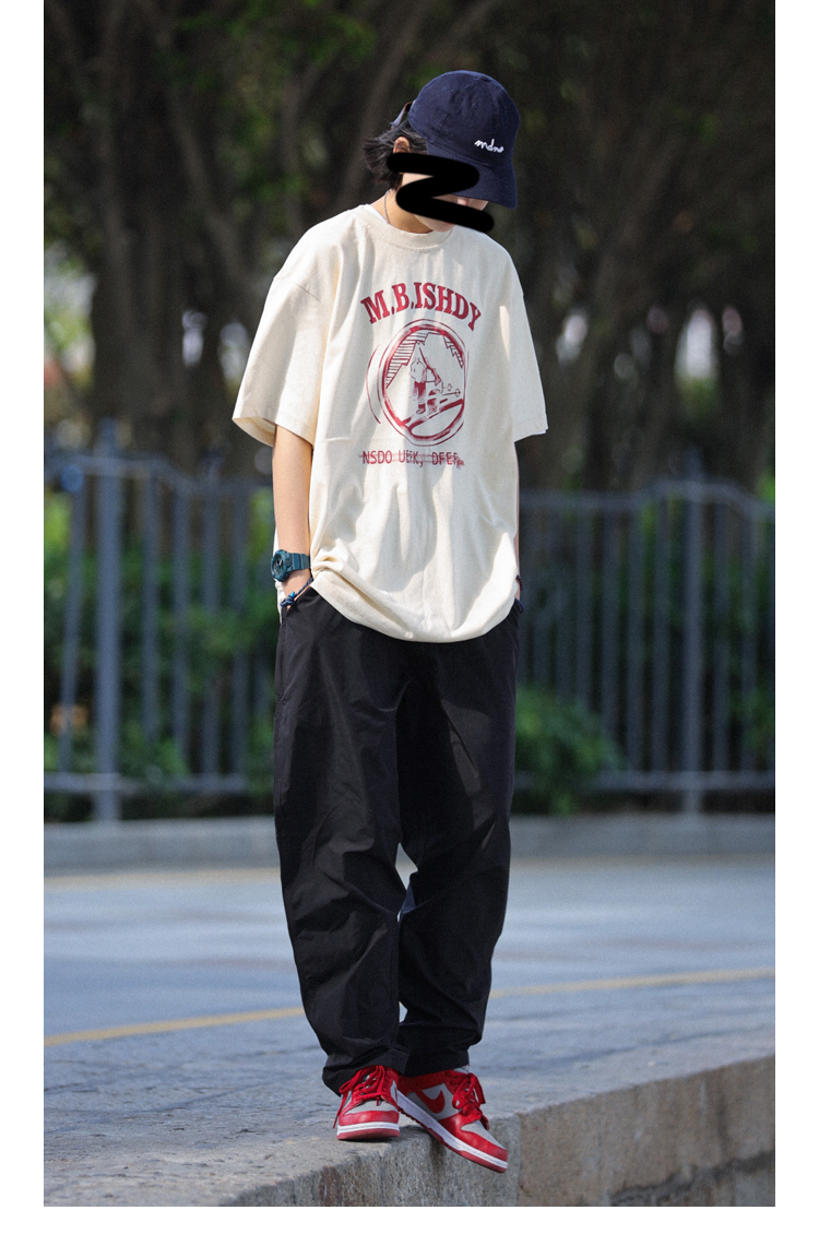 Nobodyknows日系純棉復古趣味卡通插畫舒適寬鬆百搭情侶潮短袖T恤