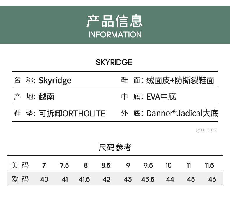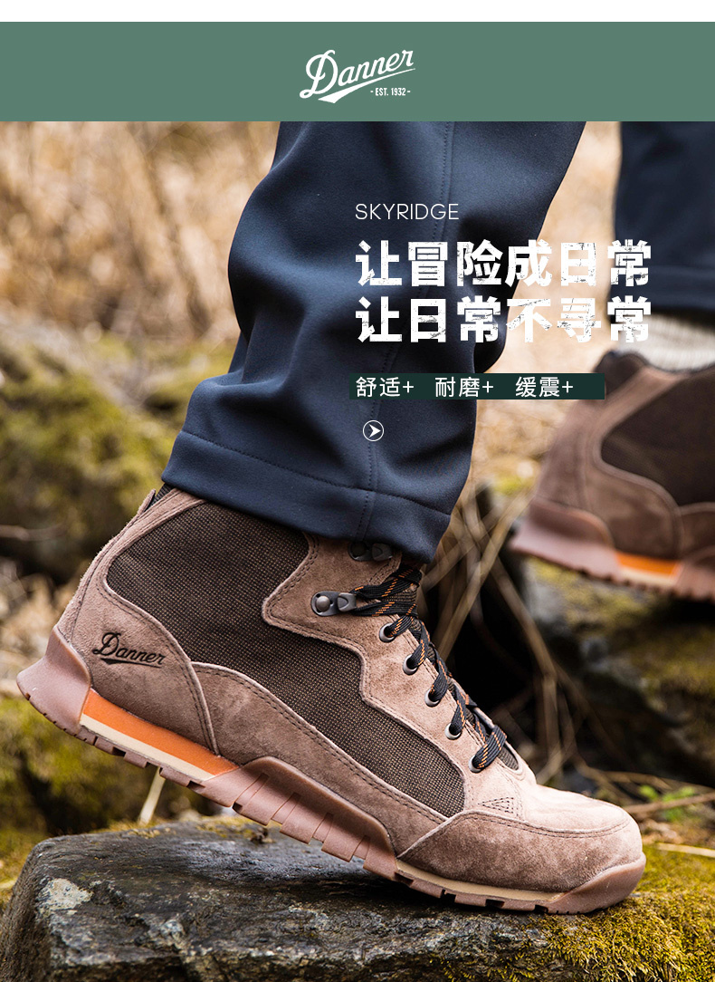 danner丹納男款中筒防水透氣登山戶外徒步鞋skyridge-4.5寸