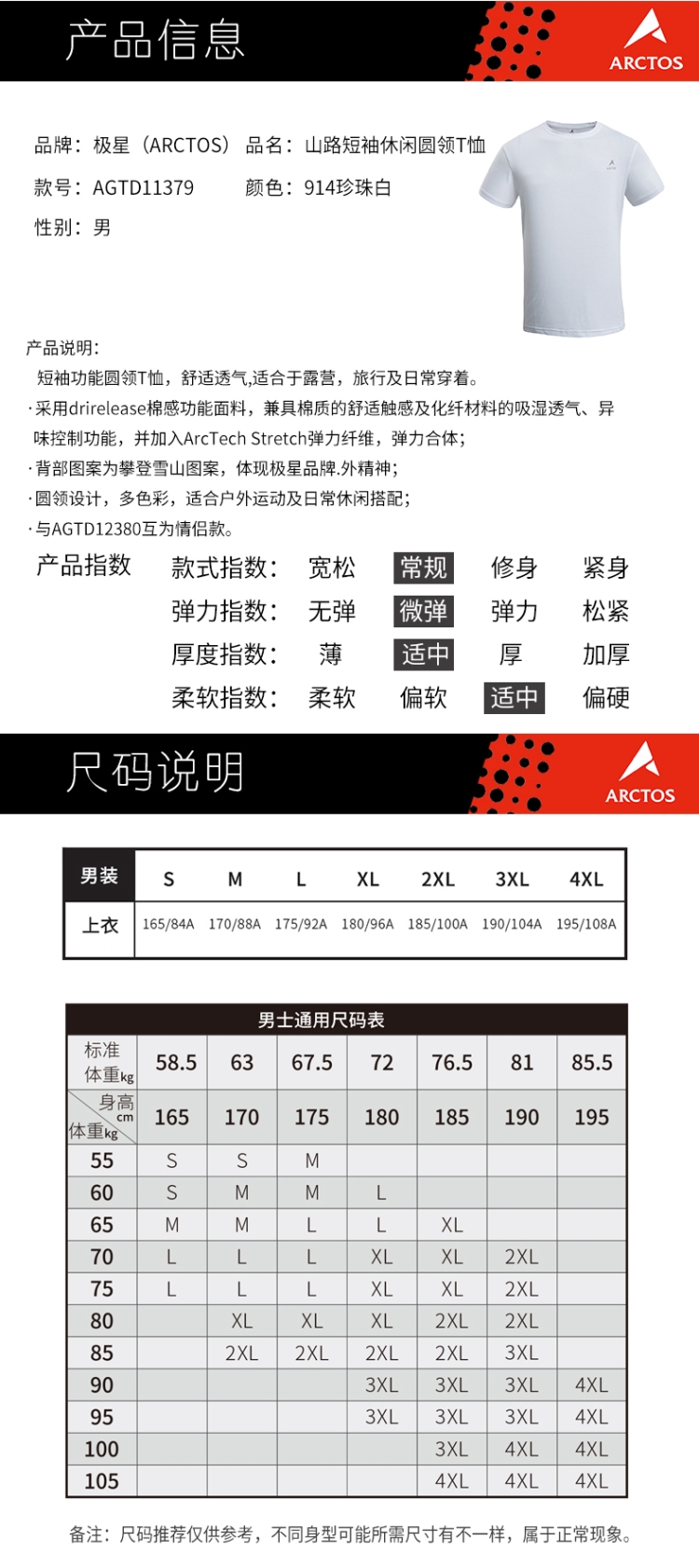 【清倉】極星 男戶外功能速乾T恤棉感舒適透氣圓領T恤 AGTD11379
