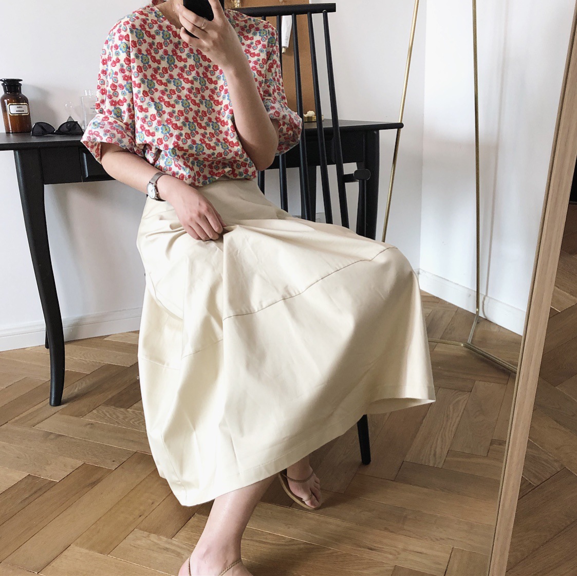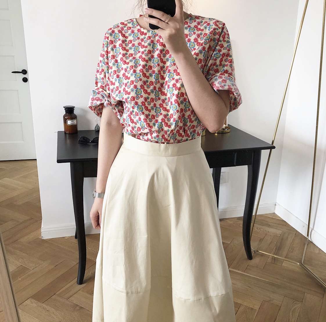 但是搭配我们的小花花上衣 简直了!