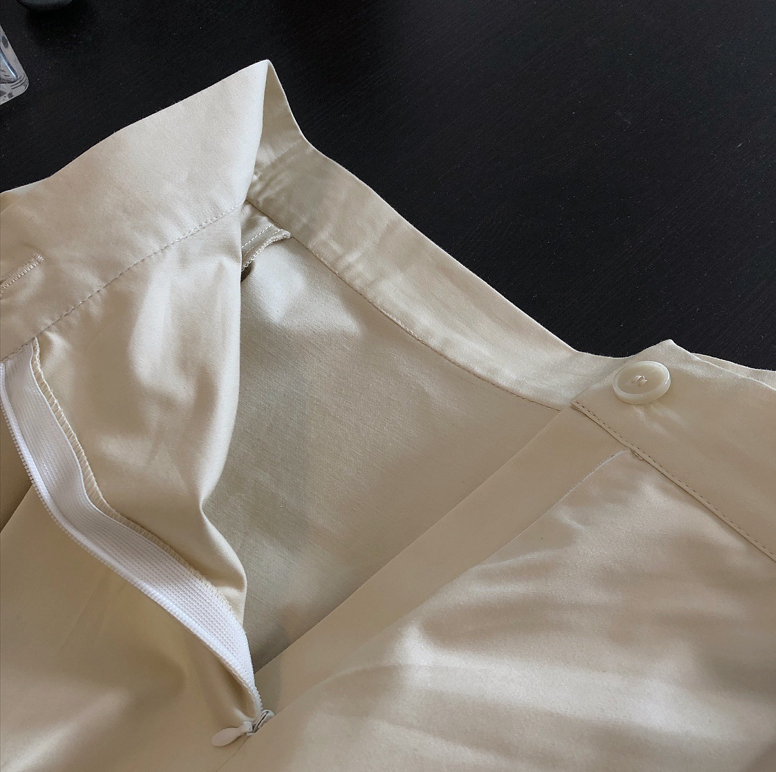 面料有不错的挺括感下摆有复合里衬