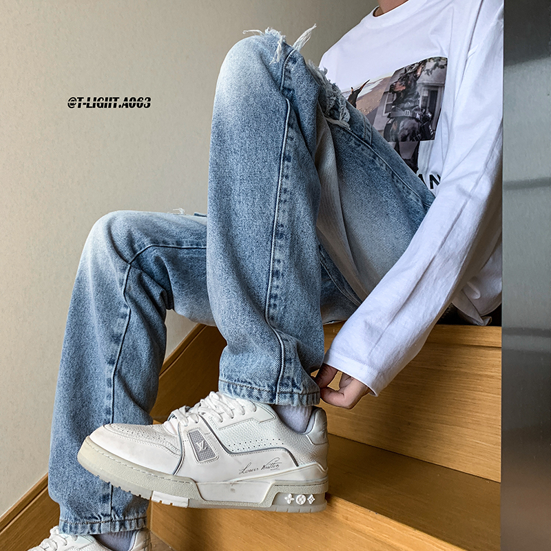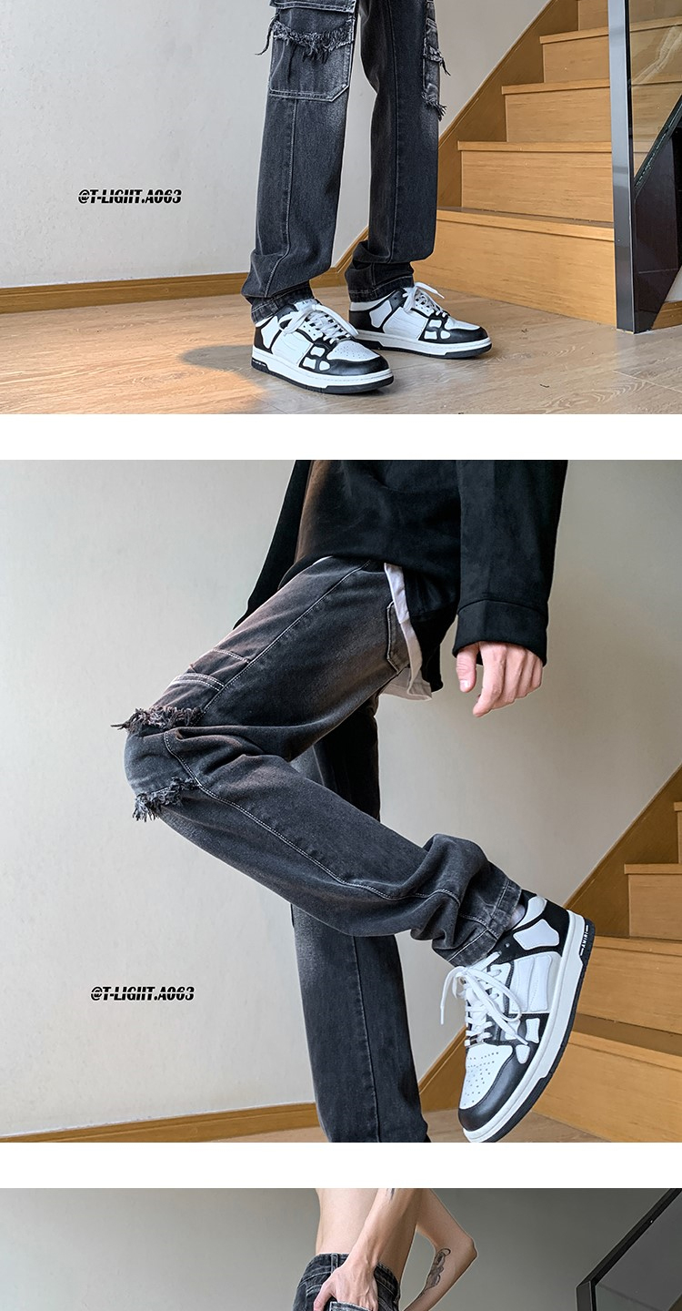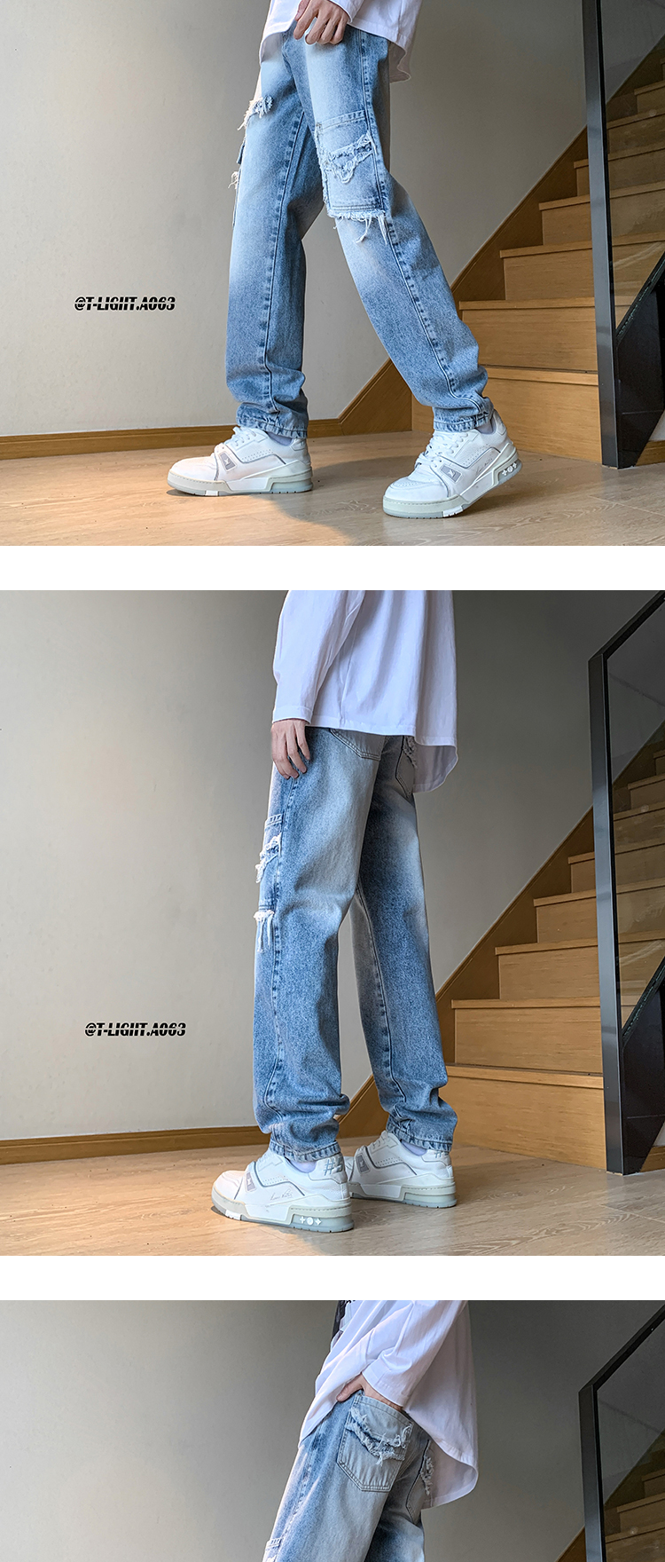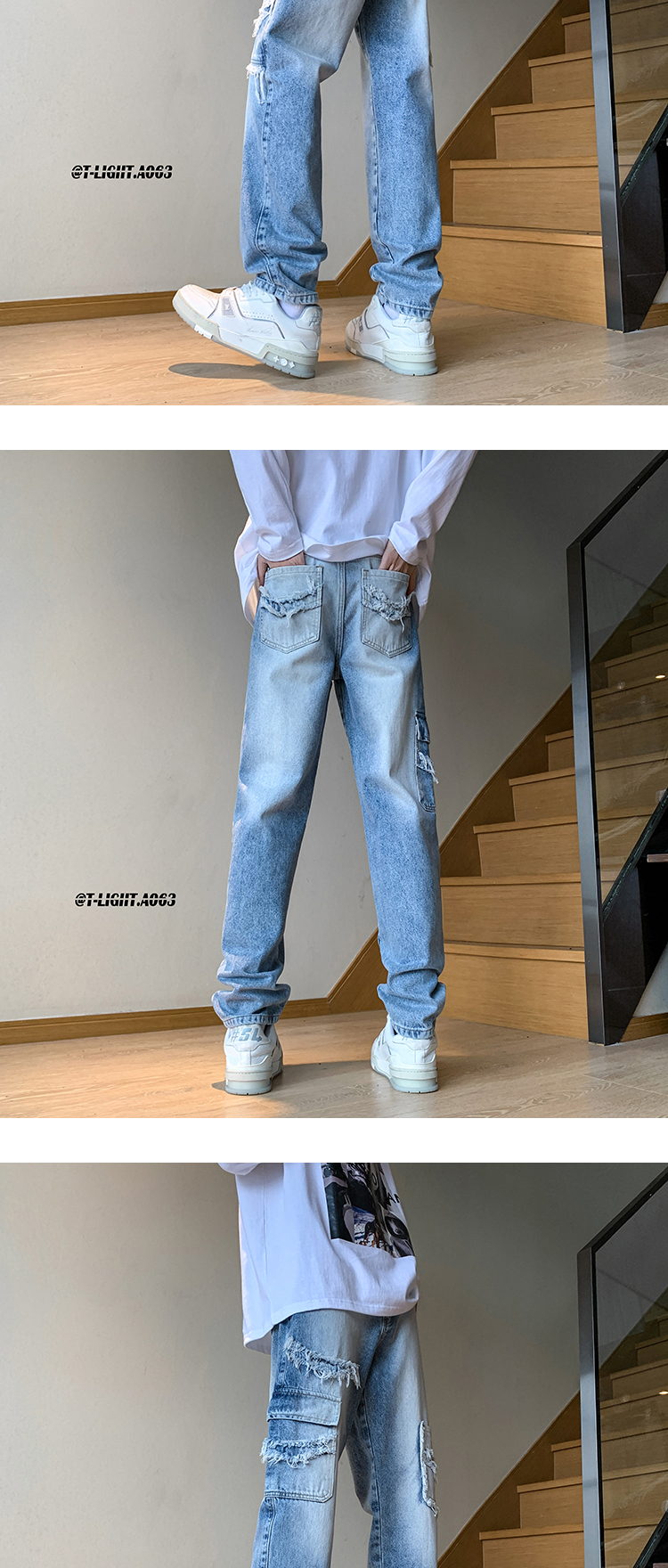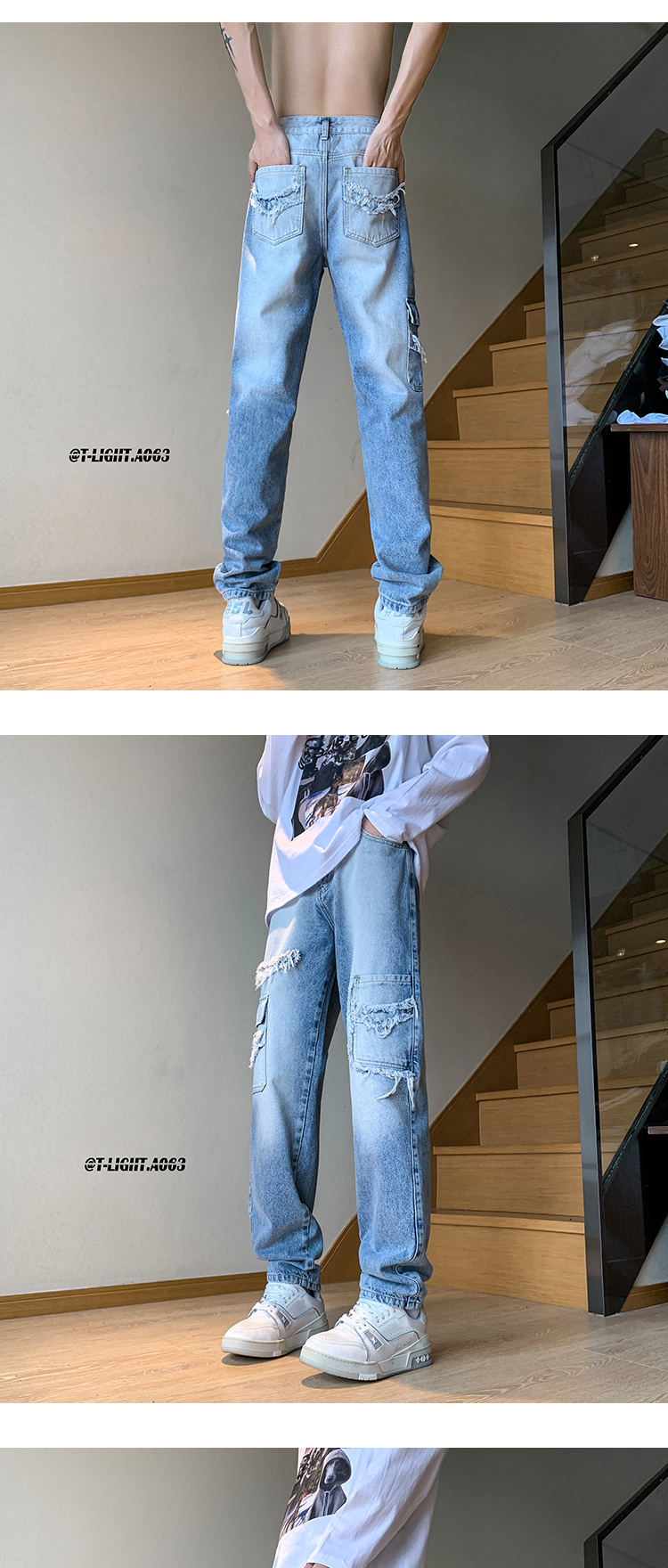 毛邊口袋工裝褲顯瘦小眾原創設計褲子高街美式vibe直筒褲潮男穿搭
