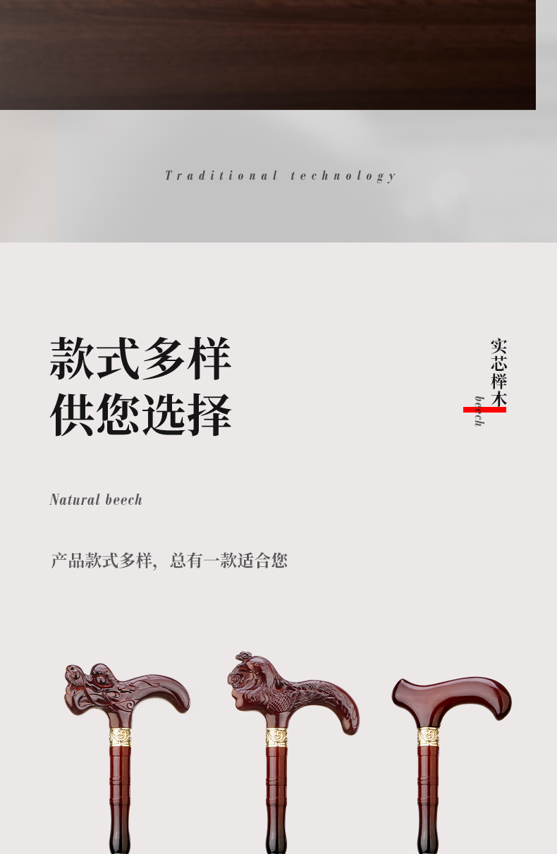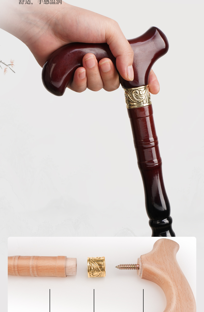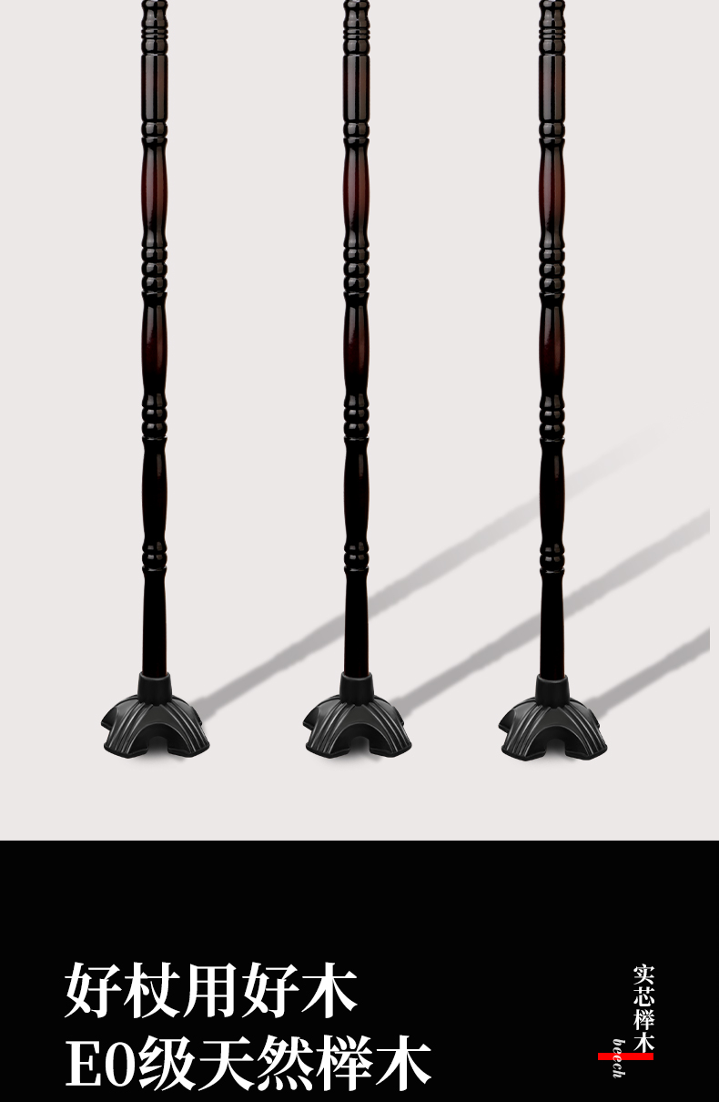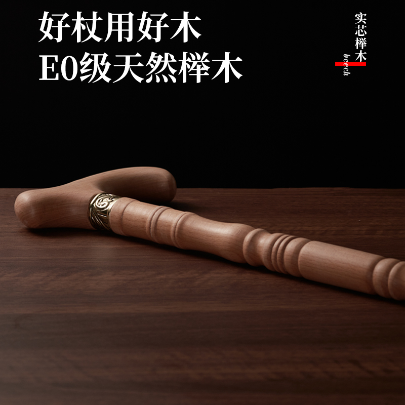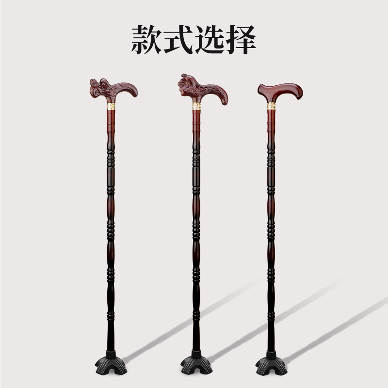 進口櫸木實木老人柺杖木質手杖四腳柺棍防滑爺爺龍頭拐扙輕便木頭