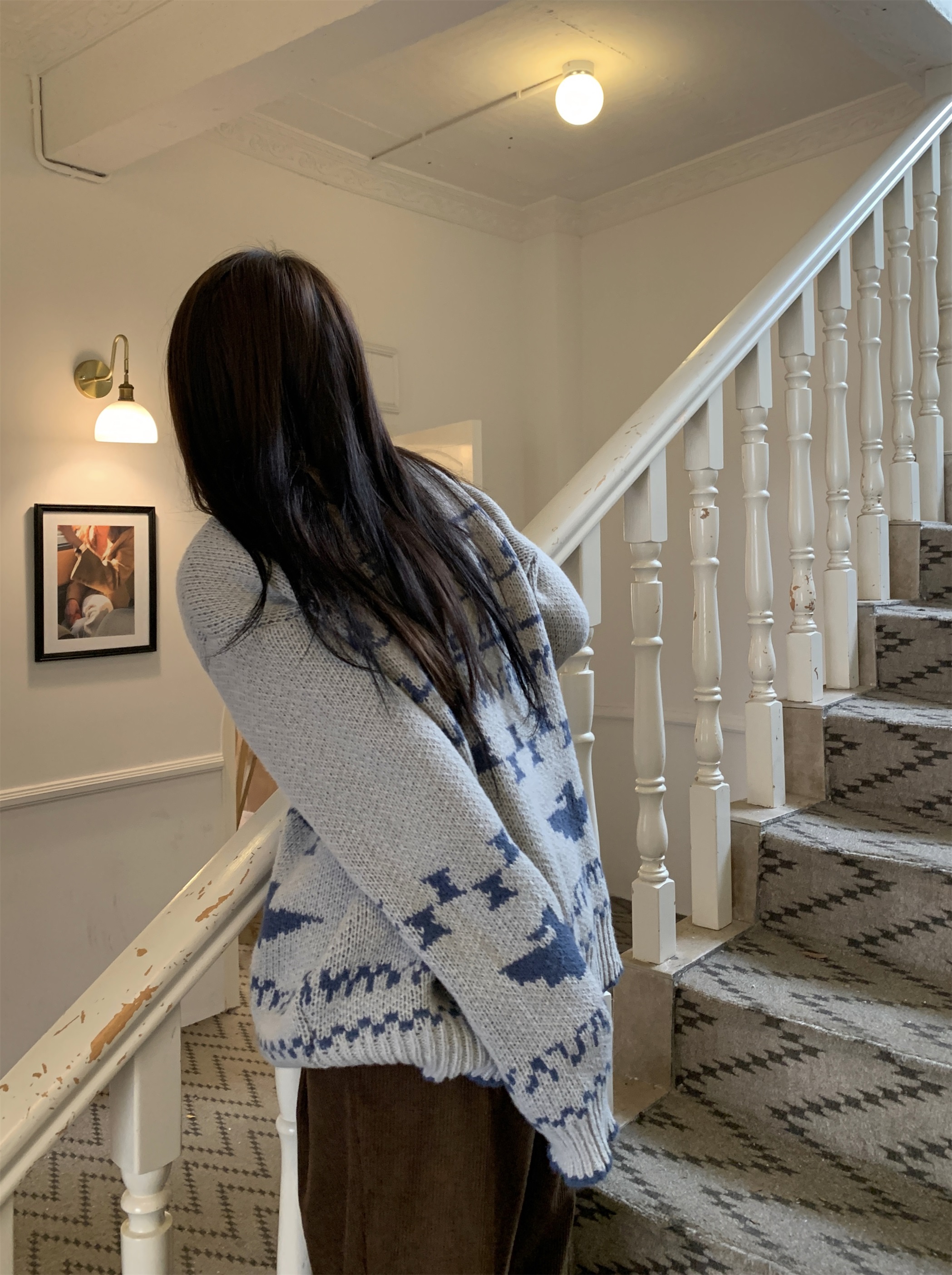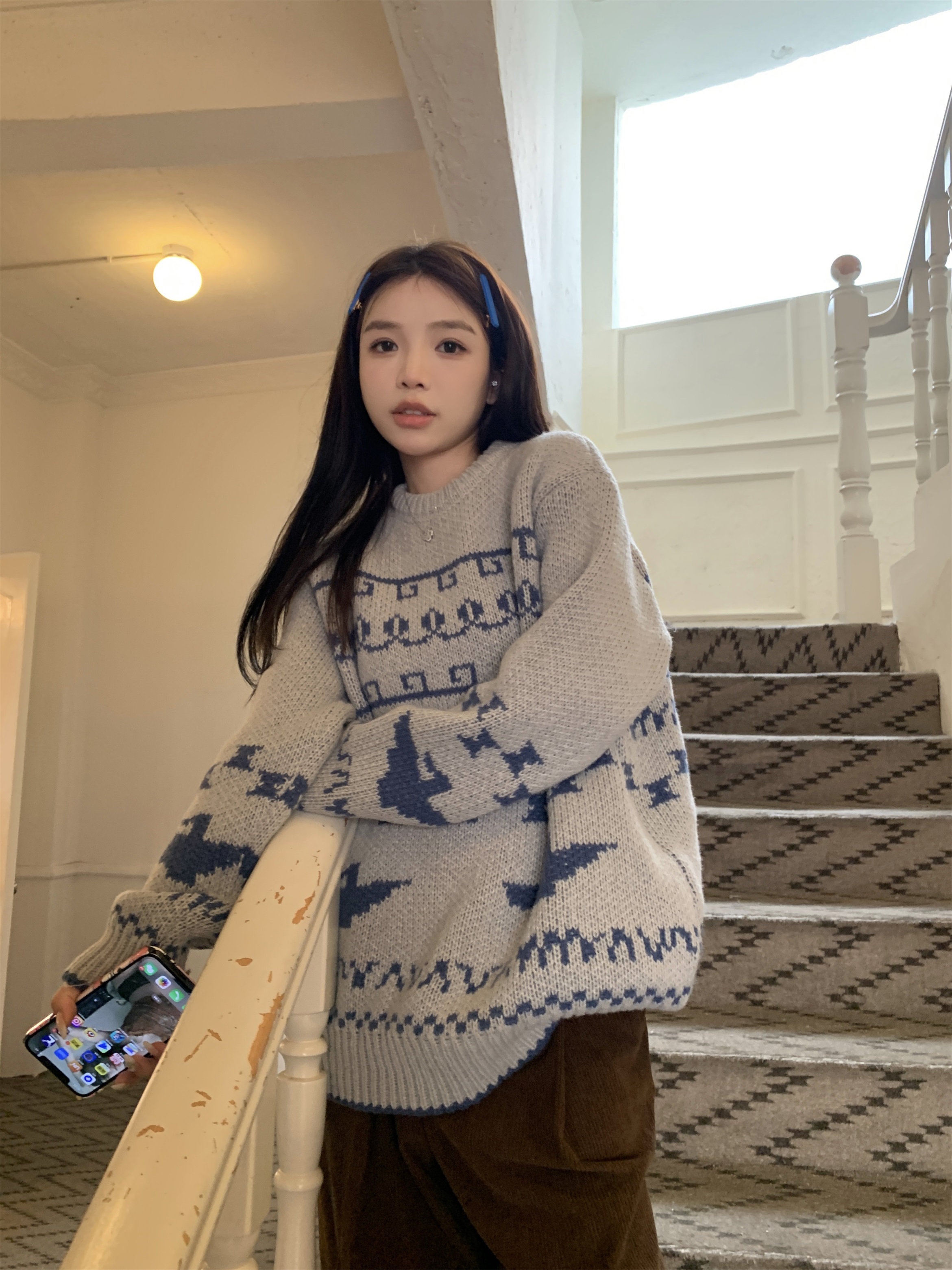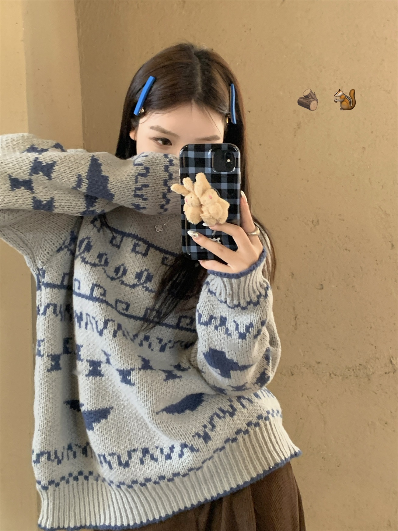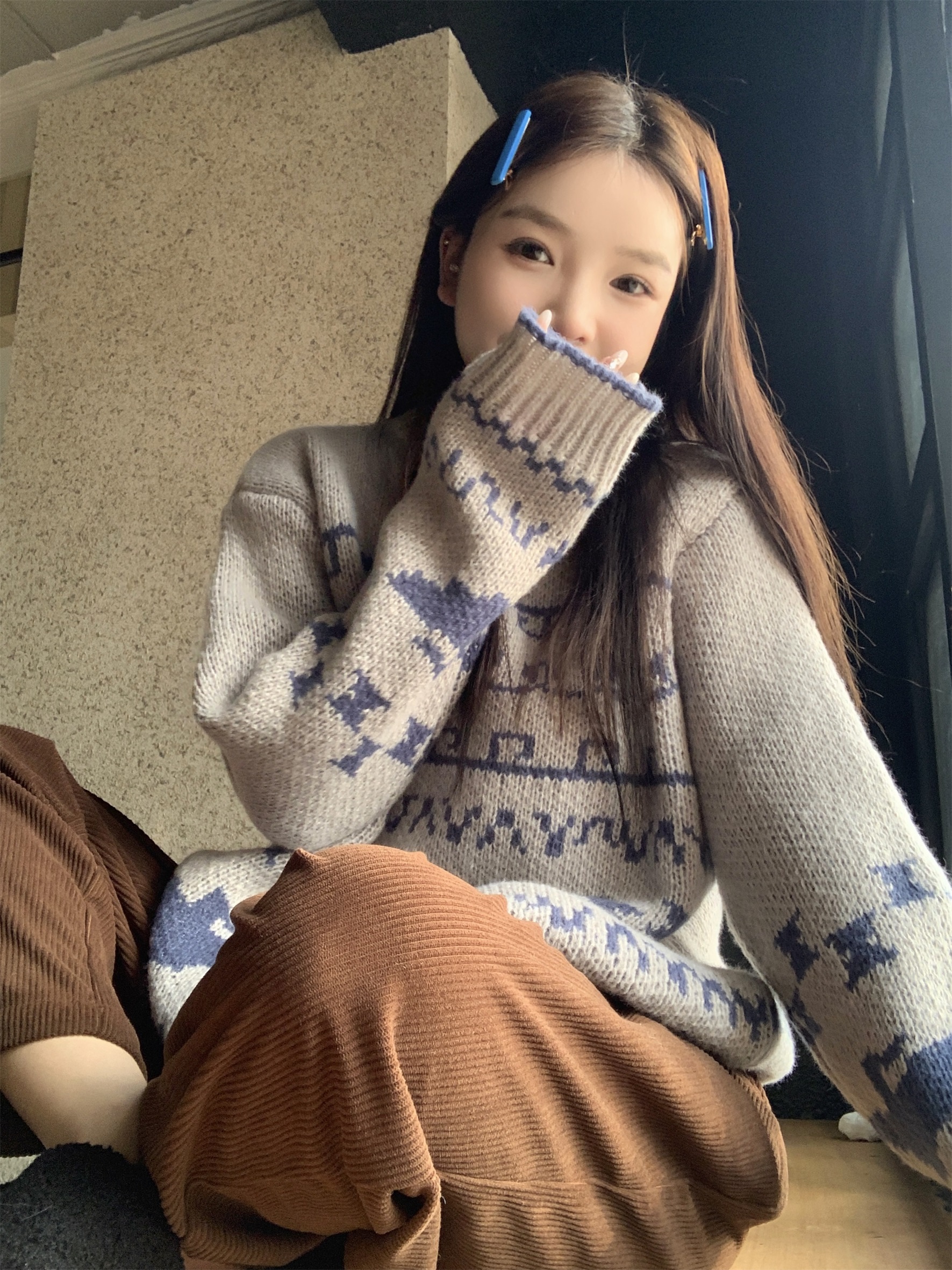 櫻田川島秋冬季韓系慵懶風設計感小眾復古提花針織衫耶誕毛衣女