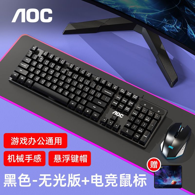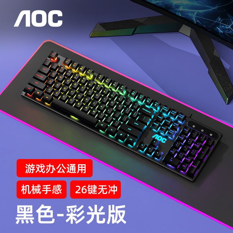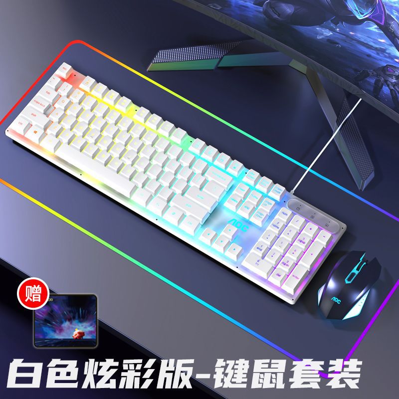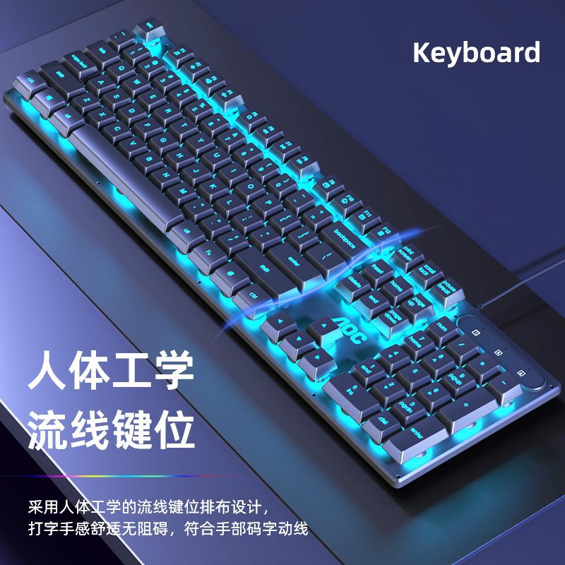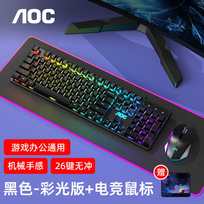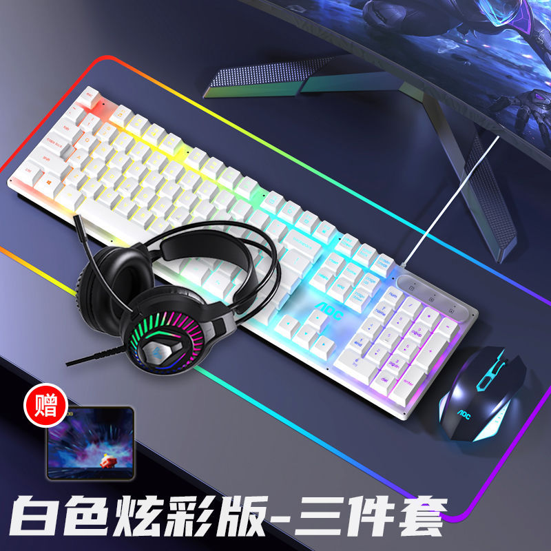 AOC键盘鼠标耳机套装有线机械手感usb电竞游戏发光笔记本台式电脑