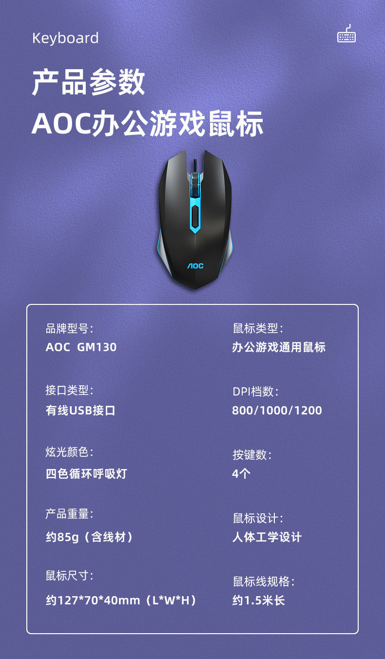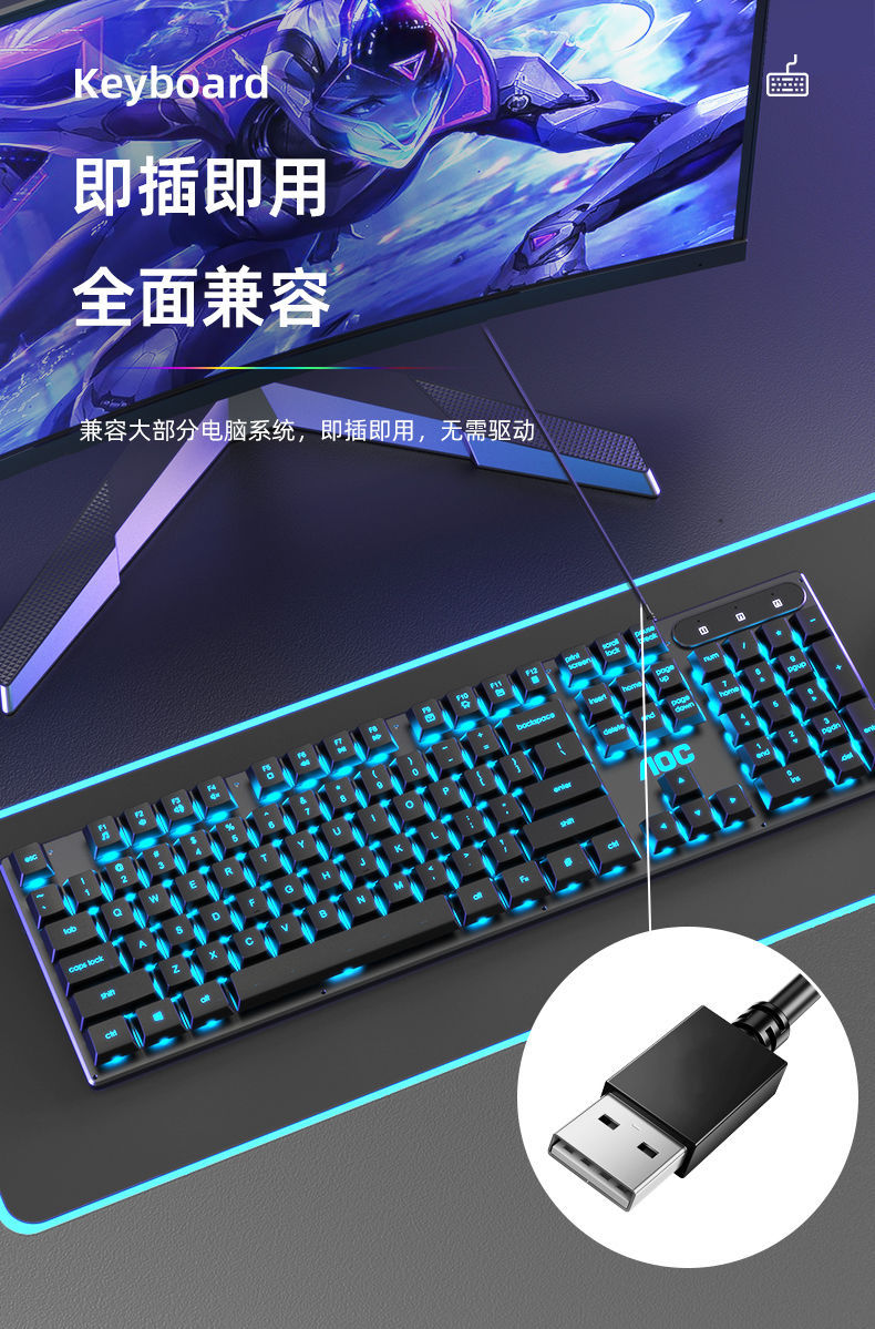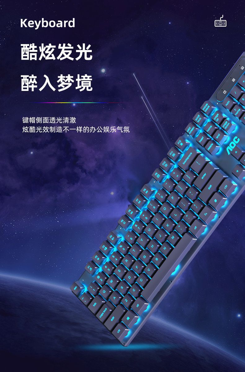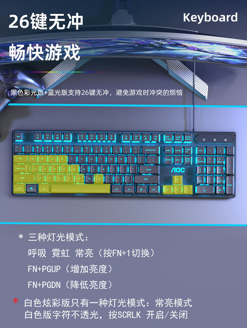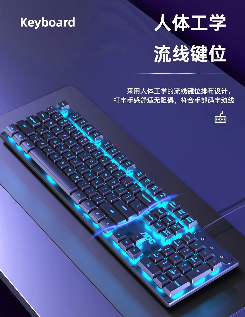 AOC键盘鼠标耳机套装有线机械手感usb电竞游戏发光笔记本台式电脑