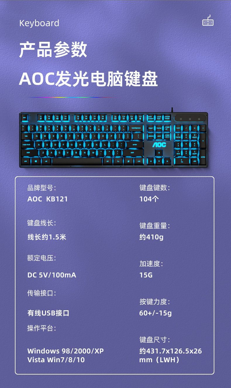 包装清单 键盘、说明书、保修卡