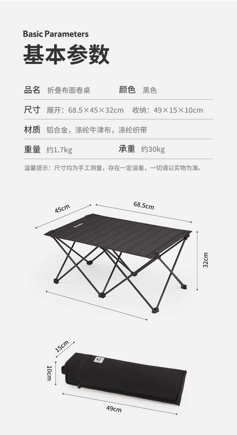 Naturehike挪客摺疊布面卷桌可攜式戶外露營野餐鋁合金置物小桌子