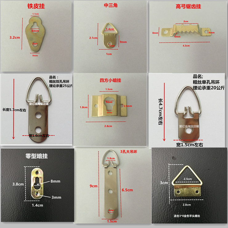 颜色 特厚5孔角码,镀彩大角码,5孔小角码,十字小角码,三角4眼大排挂,特厚四孔大暗挂,特厚大暗挂,蝴蝶双眼挂,超大6眼暗挂,银四眼高低扣,双孔墙挂,单孔墙挂,电表箱挂钩,大角码,小角码,大弧形铁皮挂,超大锯齿暗挂