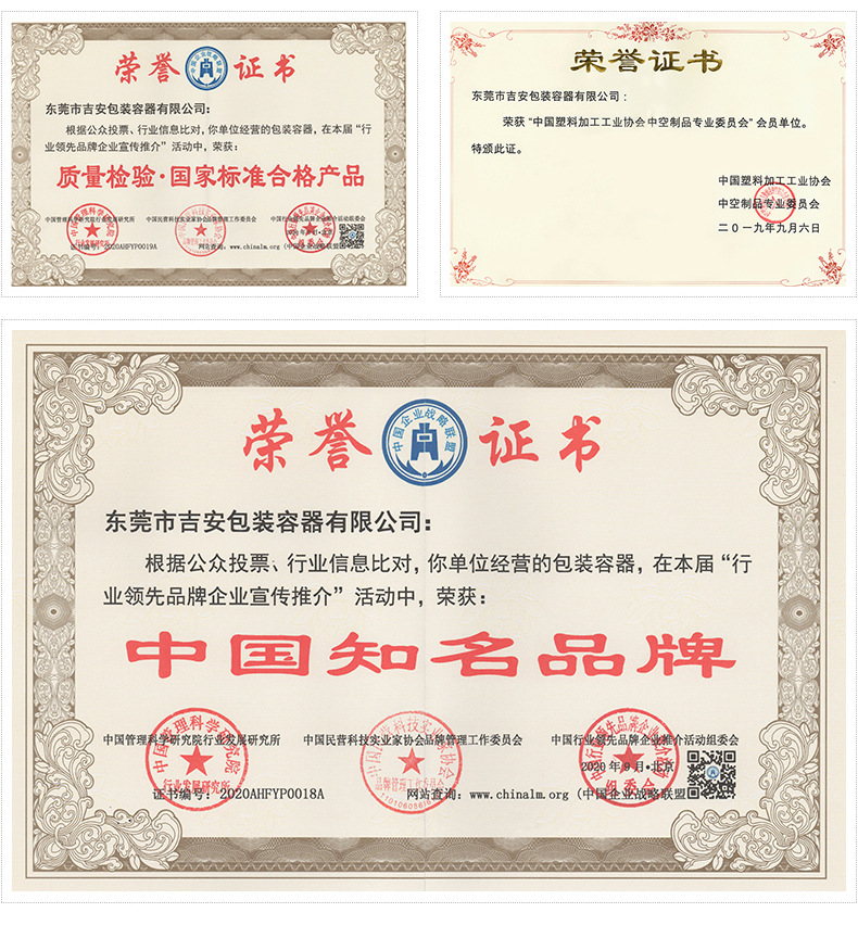 东莞市吉安包装容器有限公司创立于2000年8月1日,是中国知名品牌企业。已通过ISO 9001质量管理体系资质认证,加入了中国中空协会,并获得《中国知名品牌》,《质量检验·国家标准合格产品》等荣誉称号。根据材质的不同,我们的产品分为塑料容器、铁质容器、铝材容器、玻璃容器、纸质容器等五大类。按产品的名称分为塑料桶、塑料瓶、包装桶、涂料桶、机油桶、油脂桶、化工罐、胶水瓶、铁桶、铁罐、铝瓶、铝罐、阻隔瓶、 高阻隔瓶等,容量从3ML至1000L多种规格,多种款式。适合包装的产品包括:化学试剂、化工原料、化工助剂、饲料添加剂、油墨、油漆、树脂农药、日用化学品、聚氨脂、胶粘剂,广泛应用于化工、建筑、食品、医疗、生物等各领域。